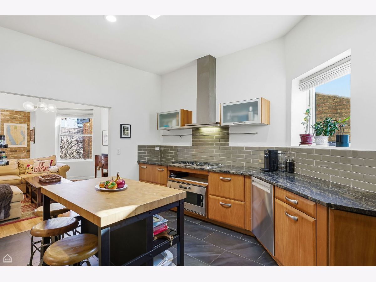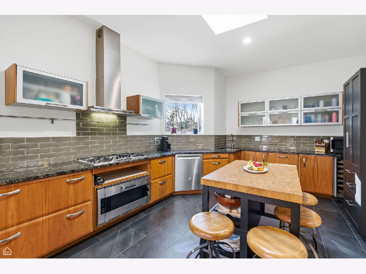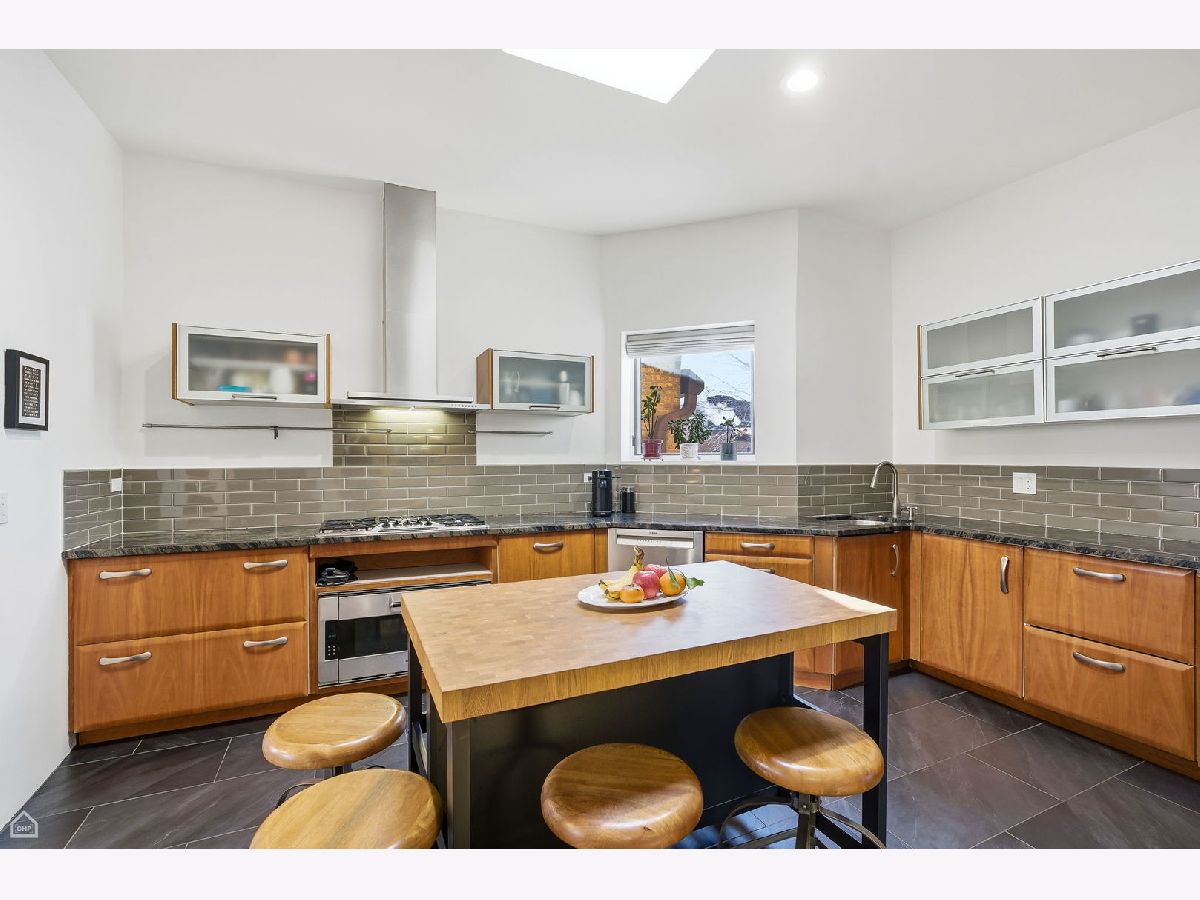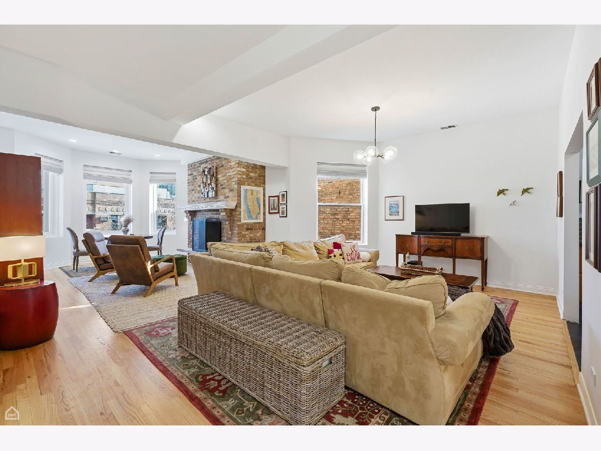 FULL WALK THRU ON VIRTUAL TOUR BUTTON. A rare opportunity in Lakeview's coveted Greystone enclave! This sun-drenched 3 bedroom/ 2 bath expansive penthouse residence boasts refined living space with timeless architectural character and modern updates that is situated just three short blocks from Wrigley Field for those Cubs fans! The heart of the home is a generous chef's kitchen featuring abundant countertop space, granite surfaces, sleek glass subway tile backsplash, and premium appliances including Thermador, Bosch, Gaggenau, and Viking. Ideal for entertaining or everyday culinary pursuits. Adjacent formal dining complements a thoughtful layout with a generous living areas and relaxed gathering around a large cozy wood-burning fireplace. Three well-proportioned bedrooms include a primary suite with a spacious walk-in closet and ensuite bath. Step outside to the private deck, intelligently configured with dedicated zones for grilling, dining, and lounging. Additional highlights include incredible sky-lights throughout, brand-new HVAC condenser, furnace and humidifier (2024), new windows, in-unit washer/dryer, one garage parking space, very large storage room and a well-maintained boutique building with recent deck, roofing and tuckpointing improvements. Walk or bike to Whole Foods, Jewel, Dollop Coffee, Starbucks, the lakefront, fitness studios, and Lakeview's vibrant retail and dining scene!