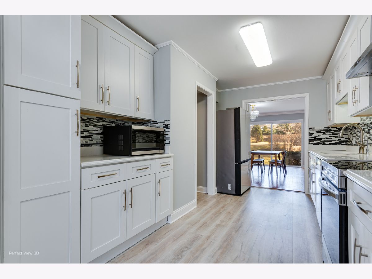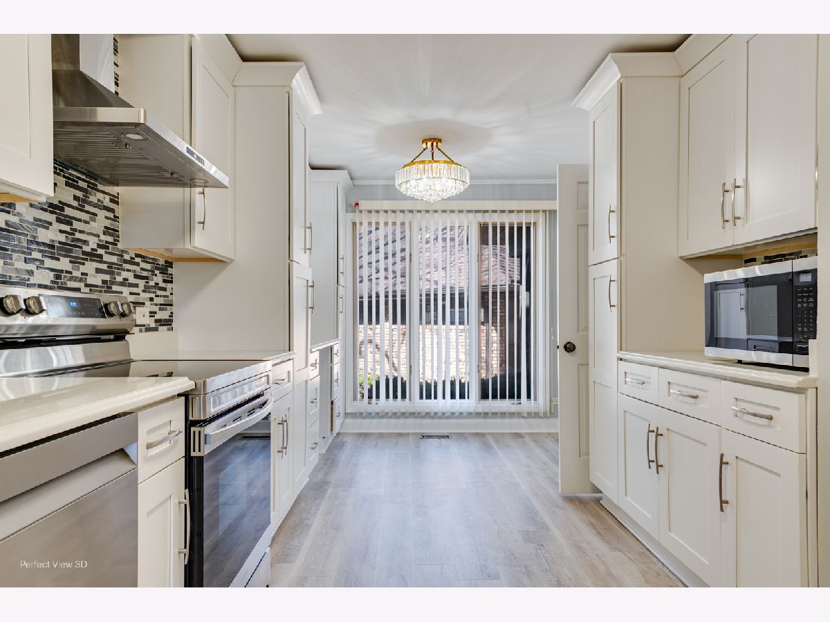 Absolutely stunning Luxurious fully remodeled 4-bedroom, 3.5-bath end-unit townhome with a 2-car garage in the prestigious Mission Hills community. This beautifully updated, largest (4050 sq) model offers a spacious floor plan, elegant finishes, and is completely move-in ready. Freshly painted with hardwood floors throughout, this home is truly a gem. The main level features a bright, open layout with a welcoming living room with fireplace, formal dining room, and a private den/office. The elegant eat-in kitchen showcases 42" white cabinetry, white quartz countertops, stylish backsplash, walk-in pantry, and all new stainless-steel appliances (2024) including oven/range, dishwasher, microwave, and French-door refrigerator. Crown molding, recessed lighting, and a crystal chandelier add refined touches. Sliding glass doors from the living and dining areas open to a large patio overlooking a peaceful green garden. Upstairs, you'll find three spacious bedrooms including a luxurious primary suite with walk-in closet, soaking tub, and separate glass shower. An extra-large balcony, accessible from both the primary suite and second bedroom, offers a relaxing forest-view retreat. The huge fully finished basement expands the living space with a 4th bedroom, full bathroom, and wet bar, ideal for guests, recreation, home gym. Mission Hills offers resort-style amenities, including:6 swimming pools, Tennis courts, 24-hour gated security, Beautifully landscaped grounds, walking path, Conveniently located near parks, shopping, and award-winning District 31 & 225 schools. A perfect blend of elegance, comfort, and location-this home will not last long! Showing starts on Sat (Mar 7th) 11am.