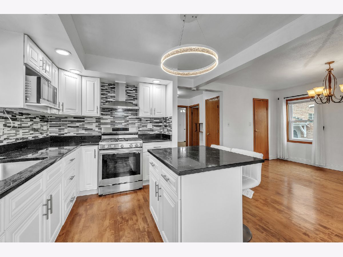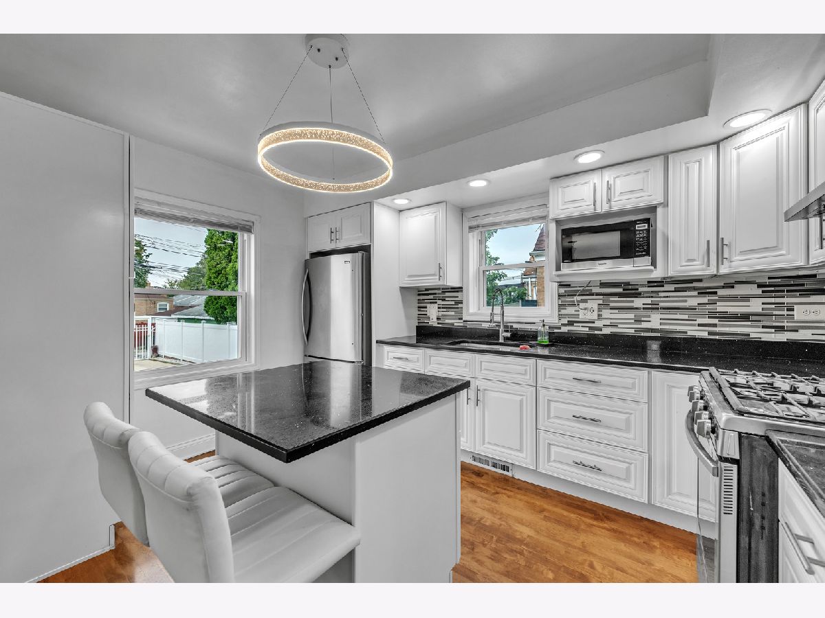 Welcome home to this charming, well-maintained brick Cape Cod that blends classic character with thoughtful updates! Step inside to find hardwood floors and abundance of natural light pouring through the bay window in the spacious living room. The remodeled kitchen features sleek white cabinetry, quartz countertops, modern backsplash, stainless steel appliances, and a stylish center island with seating. Upstairs, you'll find 2 bedrooms with hardwood floors. The finished basement expands your living space with related living potential, offering a family room, additional bedroom, a third full bath, and a large storage room. Enjoy summer evenings in the covered patio overlooking the oversized fenced lot complete with a shed and additional parking next to the garage, making it perfect for gatherings, gardening, or extra vehicle storage. Prime location across the street from Hurley elementary school, parks, shopping & dinning. This move-in ready home is a perfect combination of comfort, space, and convenience.