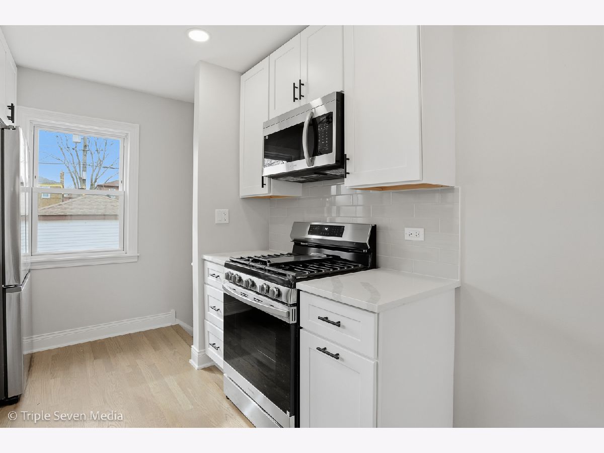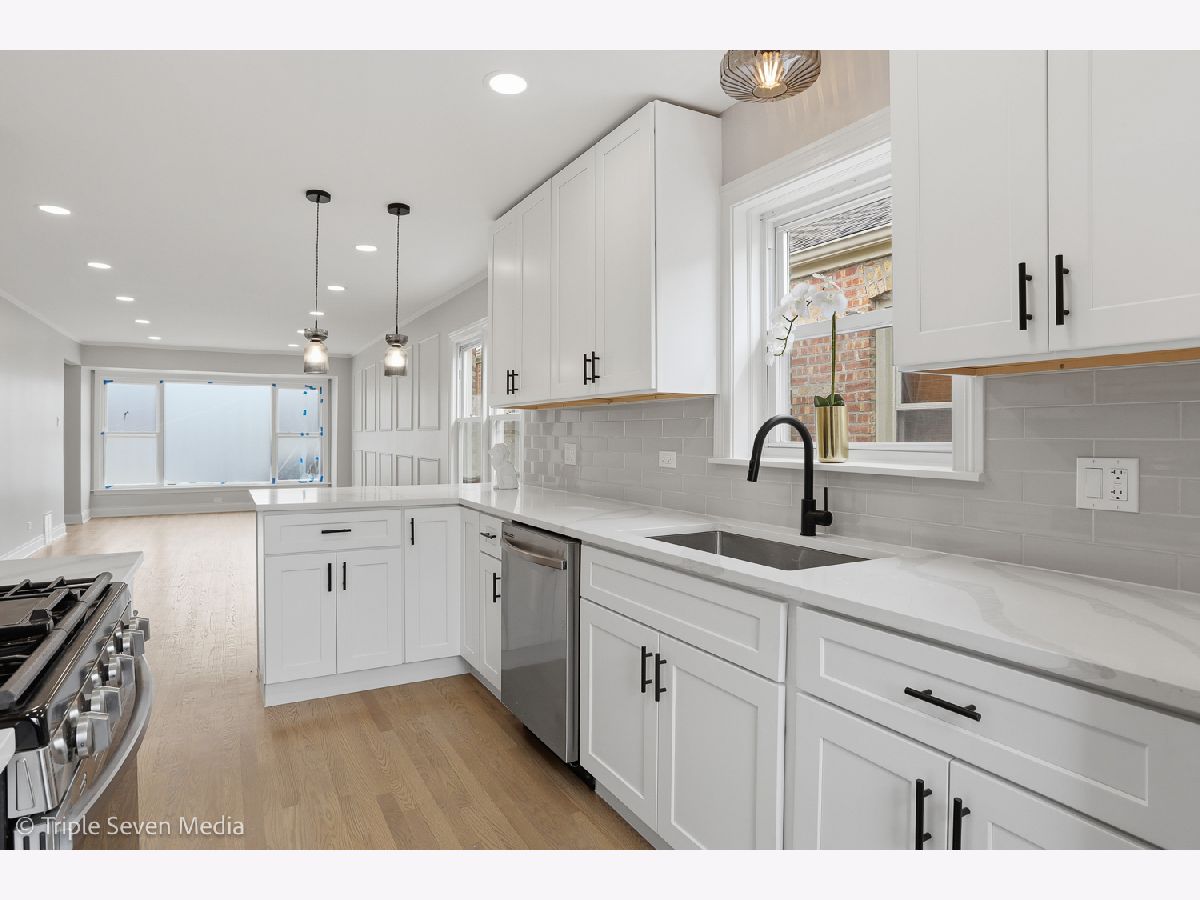 Gorgeous home that has everything you've been looking for! Meticulous attention to detail, design, and custom finishes are sure to impress! Inside you will find a spacious light-filled living room with custom trim work leading to a beautiful, bright modern eat-in kitchen with white cabinetry, quartz countertops, and brand new stainless steel appliances. Gleaming hardwood floors lead you to two bedrooms and a full bathroom with custom tile work and finishes. Retreat to the fully finished basement with luxury vinyl flooring, a family room perfect for entertaining, two additional bedrooms, and a spacious bathroom with a large walk in shower. The separate laundry room includes side by side washer and dryer with ample storage space. The backyard is clean and open, ready your entertaining ideas. Home is newly renovated and move in ready. Close to great schools, dining and shopping. *NEW MILLWORK, Newer HVAC, NEW WATER HEATER, Sump Pump and Backup Battery, all NEW stainless steel appliances and fixtures throughout the home.