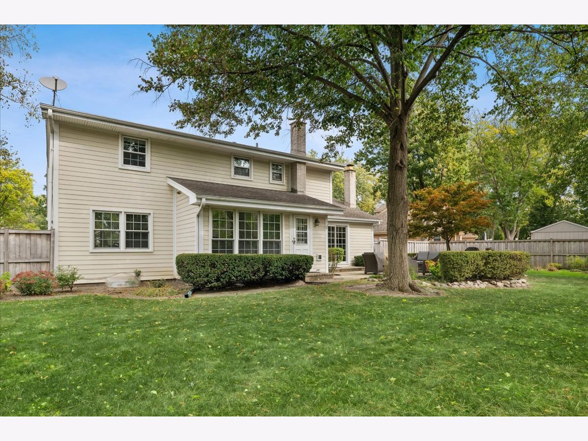 Fabulous home tucked away on a peaceful cul-de-sac with lovely yard and patio. This beautifully maintained home offers both tranquility and convenience in terrific location. Spacious foyer opens to large living room with gleaming hardwood floors, built in bookshelves and fireplace on main level, including separate dining room along with den off kitchen with fireplace and 1/2 bath too. Lovely updated eat in kitchen with loads of counters and cabinet overlooking lovely patio. There is plenty of space for family and guests alike. Designed with entertaining in mind, the flowing layout connects spacious living areas ideal for hosting gatherings or enjoying quiet evenings outdoors. Four generous bedrooms all with hardwood floors on second level with two baths. Set in a sought-after Huntington neighborhood, this inviting residence is the perfect blend of comfort, privacy, and accessibility. Fully fenced yard with paved patio with mature trees. Award Winning school Dist 27 with easy walk to Wood Oaks park walking trails, playground, sledding hill and tennis courts and convenient access to tollway too. Meticulously maintained...Don't miss this one!