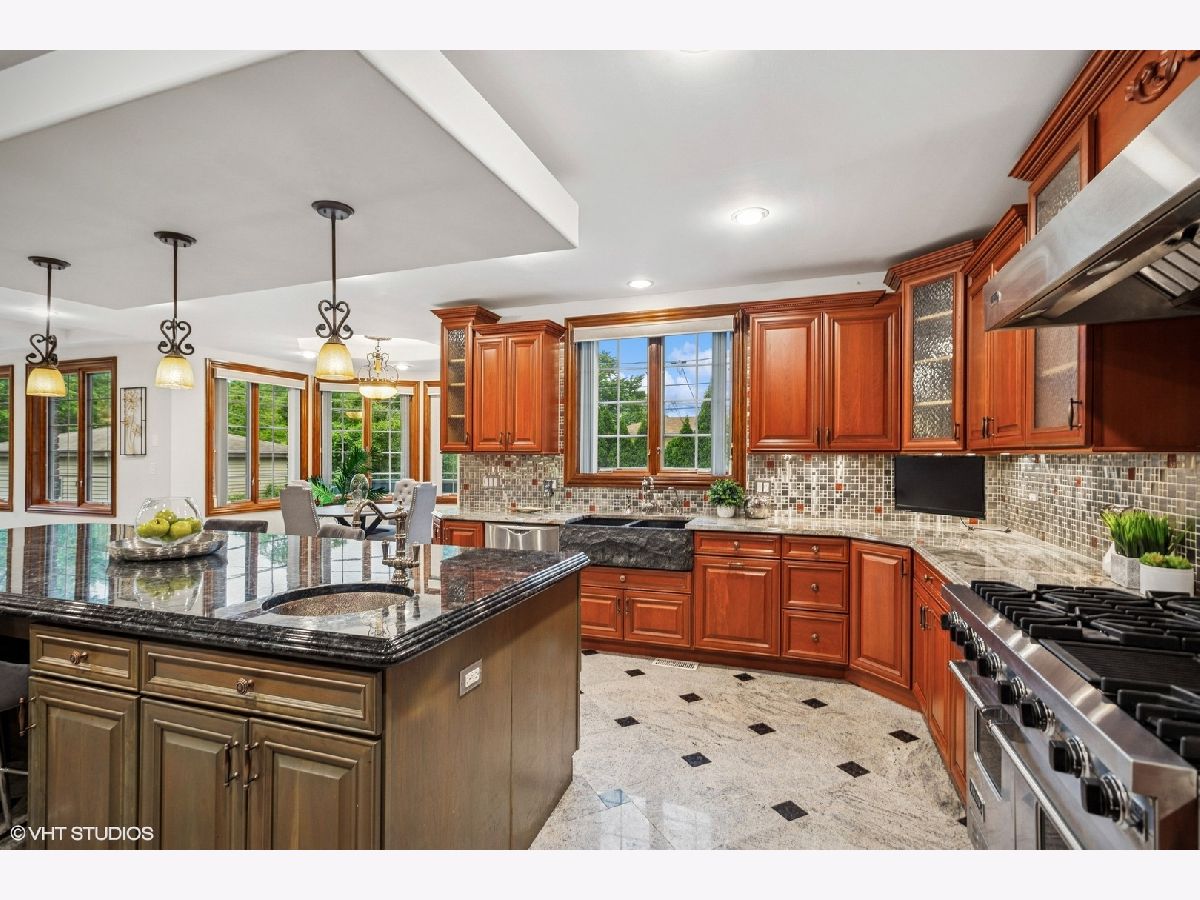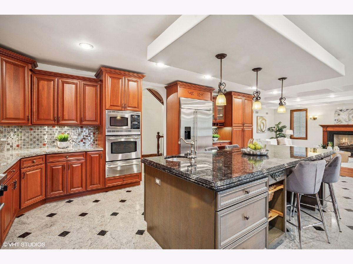 Welcome to 3832 W Chase Ave, a one-of-a-kind, custom-built brick and stone masterpiece situated on a rare double lot in the heart of Lincolnwood. This luxury residence offers 6 bedrooms, 5.1 bathrooms, more than 7,500 Sq. Ft. of living space with over-the-top craftsmanship throughout-perfect for those who appreciate quality, space, thoughtful design, and timeless elegance. From the moment you enter, you'll notice the Swarovski Crystal light fixtures, solid 2x6 construction, imported solid-core doors, bullnose corners, rich wood trim, Pelle windows, and the list goes on. Step into a grandeur 2-story foyer with tray ceiling dining room on the right side and a 2-story formal living providing unmatched sunlight on the left. Gleaming Mahogany hardwood floors flow throughout the home, adding warmth and sophistication, complemented with tiles providing convenience in cleaning. The family room boasts coffered ceilings with a gas fireplace, an open concept leading to a breakfast area and a chef's dream kitchen. Explore your culinary talents in the primary kitchen which includes all stainless steel appliances; 6-burner and grill Viking stove with double oven, 2 Fisher and Paykel dishwashers, double door fridge, additional wall oven, warming drawer and commercial grade exhaust. 42' custom wood cabinets with pullouts, organizers, molding, and trim finishes. Thick multi-beveled, 2-tone, granite countertops complemented with a backsplash. TWO ADDITIONAL kitchens provide flexibility for entertaining, extended family, or cultural cooking needs. The main level also offers a generously sized bedroom, ensuite bathroom, and built-out walk-in closet-ideal for guests or multigenerational living. The 2nd floor includes 4 bedrooms, 2 of them having access to a jack and jill bathroom and the other 2 having ensuites. All bathrooms include full-body tile showers, and each bedroom comes a fully built-out closet with drawers, storage compartments, and hanging space. The primary bedroom is a private sanctuary including a gas fireplace, additional room with a balcony looking over the living room, his and her closets with full build-outs and a safe, ensuite bathroom showcasing dual vanity with granite countertops, jacuzzi tub and full body standing steam shower. Convenient 2nd-floor laundry with wash basin and additional storage cabinets, and organizing counter space. Step into a fully finished lookout basement that offers a private retreat, a guest suite, or a vibrant entertainment zone, this basement delivers both luxury and functionality. The basement includes radiant heated floors with a bedroom, full bathroom, stone fireplace, large flex space, and full kitchen that has never been touched! The basement offers 2 exits - one to the backyard and one to the garage - ideal for private living or ease of accessibility. Do not worry about starting your car on those cold winter mornings with an extra deep 2-car garage, radiant heated floors, and tall ceilings ideal for hanging storage. Stunning fenced backyard including tall evergreen trees providing yearlong privacy, elevated garden beds, hardscape, and stamped concrete patio. Prime location steps away from a park, and minutes away from Lincolnwood Town Center, I-94, Bryn Mawr Country Club, and so much more. Top-rated schools including Todd Hall, Rutledge Hall, Lincoln Hall Middle School, and Niles West High School This home is a rare opportunity to own a truly custom, high-end residence in one of Lincolnwood's most sought-after neighborhoods. Schedule your private tour today to experience the craftsmanship and luxury firsthand.