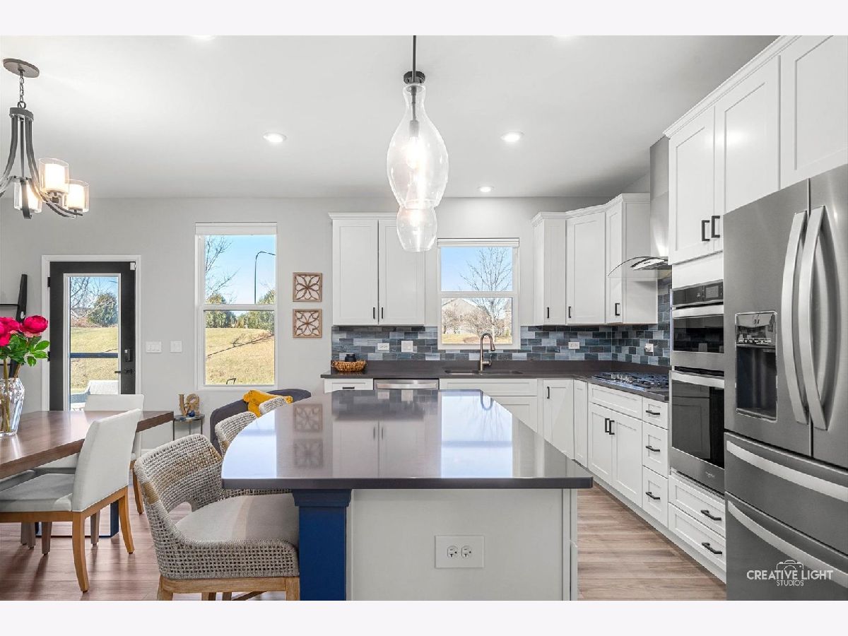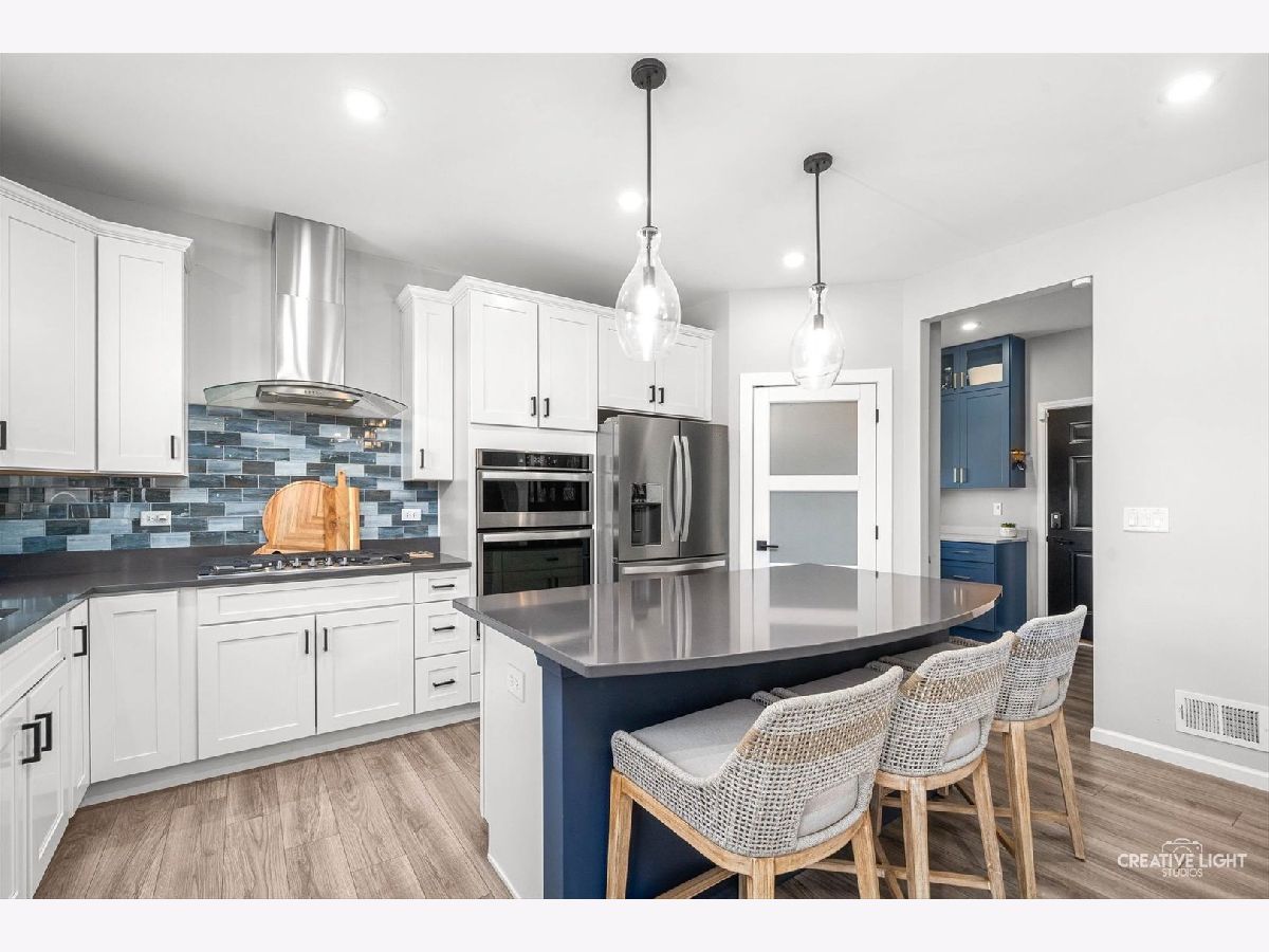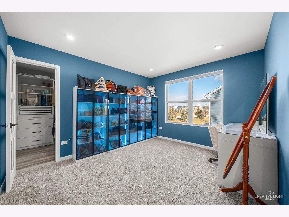 Why wait to build? This beautifully upgraded Wagner Farm home offers all the benefits of new construction-plus many builder upgrades & a refrigerator, washer, dryer & remote control blinds. So many custom design touches already have already been added. Enjoy Wagner Farm's walking trails, ponds, and award-winning District 204 schools, including Neuqua Valley High School. This Newberry model was originally designed as a three-bedroom, the loft has been converted into a rare fourth bedroom-an incredibly versatile space. The show-stopping kitchen features crisp white cabinetry, stainless steel appliances, a statement range hood, glass subway tile backsplash, black hardware, and lighting from a local design studio that adds personality and warmth. The oversized walk-in pantry has with custom shelving and designer wallpaper. The planning center has been completely reimagined with custom blue cabinetry, quartz countertops, beverage center and built-in cubbies for additional storage. The spacious family room easily accommodates even the largest sectional and features a trending blue accent wall. The 85" big screen TV is included. A private home office offers a quiet work-from-home space. The powder room has been beautifully updated with wainscoting, patterned tile flooring, and a new vanity, mirror, and lighting. Durable luxury vinyl plank runs throughout the entire first floor, while the stairway hallway features a dramatic acoustic tile accent wall that adds architectural interest. Upstairs, the primary suite is a relaxing retreat with laminate flooring and a spa-inspired bath featuring a dual-sink quartz vanity, soaking tub, and separate shower. The custom walk-in closet includes an impressive built-in organization system with drawers. All three additional bedrooms feature walk-in closets. The fourth bedroom includes a thoughtfully added adjoining door to the primary suite-perfect for a nursery, dressing room, or second office. The hall bath showcases geometric tile flooring and updated black hardware. The unfinished basement is already roughed in for a bathroom and offers endless potential for future living space. A tankless water heater provides energy efficiency and endless hot water. Outside, enjoy summer evenings on the brick paver patio with a gas line already run to the fire pit and grill. The two-car garage includes two electric vehicle charging stations. Nearby is Route 59 shopping, restaurants & entertainment. Ideally located just minutes from vibrant Downtown Naperville, shopping, dining, and entertainment.