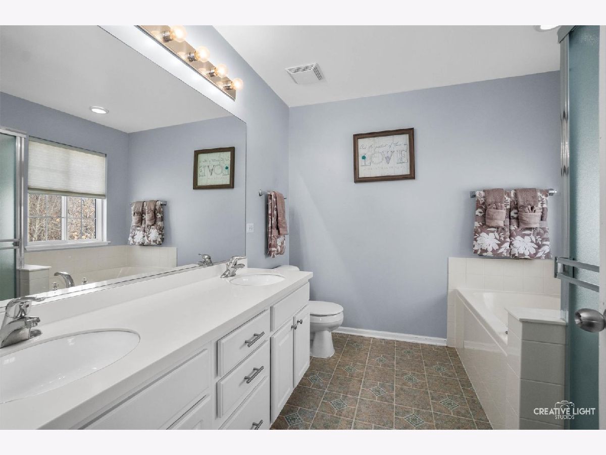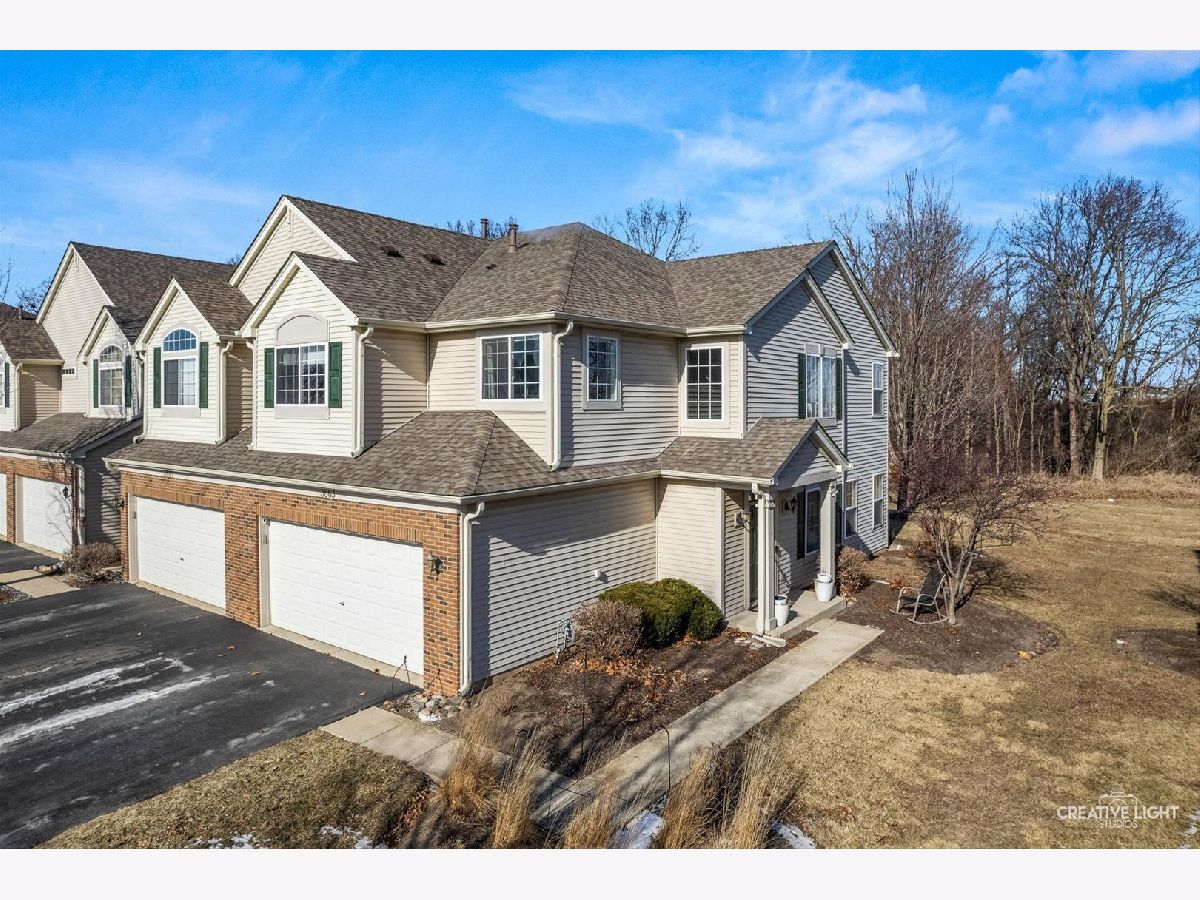 Rarely available spacious end-unit townhome in Lakewood Springs offering more space, privacy, and features than most homes in the community. This well-maintained 3-bedroom, 2.1-bath home features a bright, functional layout with laminate flooring, soaring ceilings, and an open living and dining area. The kitchen includes quartz countertops and stainless steel appliances and opens to a large family room, ideal for everyday living and entertaining. Step outside to a private patio backing to a quiet wooded area and surrounding green space, a rare benefit of this end-unit location. The second floor offers three well-sized bedrooms, a convenient second-floor laundry room, and a practical primary suite. Unlike many similar homes in the area, the primary bathroom features both a soaking tub and a separate shower, not just a shower-only layout. As an end unit, the home benefits from added privacy, extra natural light, and mature trees. HOA covers exterior maintenance, lawn care and snow removal, providing low-maintenance living. Lakewood Springs residents enjoy multiple pools, parks, walking paths, lakes, and volleyball and tennis courts, with easy access to shopping, dining, and major commuter routes. A rare opportunity to own a larger end-unit townhome with outdoor privacy and upgraded features in a sought-after community.