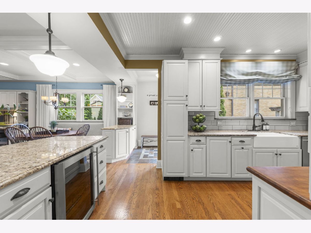 Beautiful in-town Glen Ellyn, 4 bedroom, 5.1 bath brick Colonial! The home has been expanded, utilities upgraded and includes nearly 4000 sf of finished living space plus a floored attic for additional storage. Classic charm meets thoughtful updates in this beautifully maintained brick Colonial. Nestled on a landscaped lot with mature trees and manicured plantings, this home offers timeless curb appeal and a welcoming presence. Inside, you'll find gracious, light-filled living spaces with hardwood floors throughout and elegant architectural details. The spacious living room features a cozy fireplace and flows seamlessly into a sun-drenched bay window area-perfect for relaxing or entertaining. Dining room with french doors opens to large family room w/coffered ceiling and drenched in natural light. The updated kitchen blends classic style with modern functionality, showcasing white cabinetry, granite countertops, a subway tile backsplash, and ample storage. It opens easily to the adjoining dining and gathering spaces, making everyday living and hosting effortless. Upstairs, generously sized bedrooms offer comfort and flexibility, while the home's thoughtful layout provides both openness and defined spaces. 2 ensuite bedrooms and 2 full hall baths. Additional highlights include 2nd floor laundry, large walk-in closets and outdoor roof deck off of the primary suite. Finished basement offers recreation space, full bath, workshop/mechanicals, mudroom and attached garage entrance. Outdoors, the landscaped yard and mature greenery provide privacy and a serene setting, ideal for enjoying quiet mornings or hosting friends. This is a rare opportunity to own a home that balances character, quality, and livability in a sought-after in-town neighborhood. Newer Pella windows throughout, hardwood flooring, updated electric and plumbing, Hardie cement siding and more. Only a few blocks to town, Metra train station, Sunset , Lincoln Elementary, Glenbard West and private K-8.
