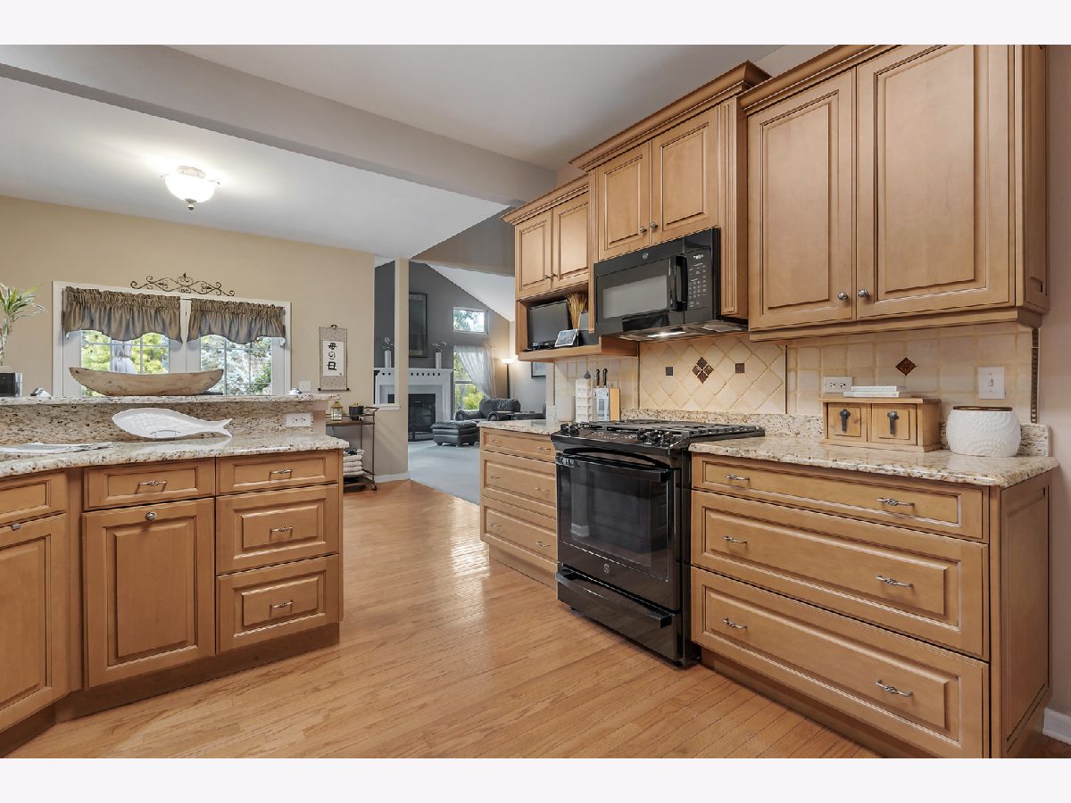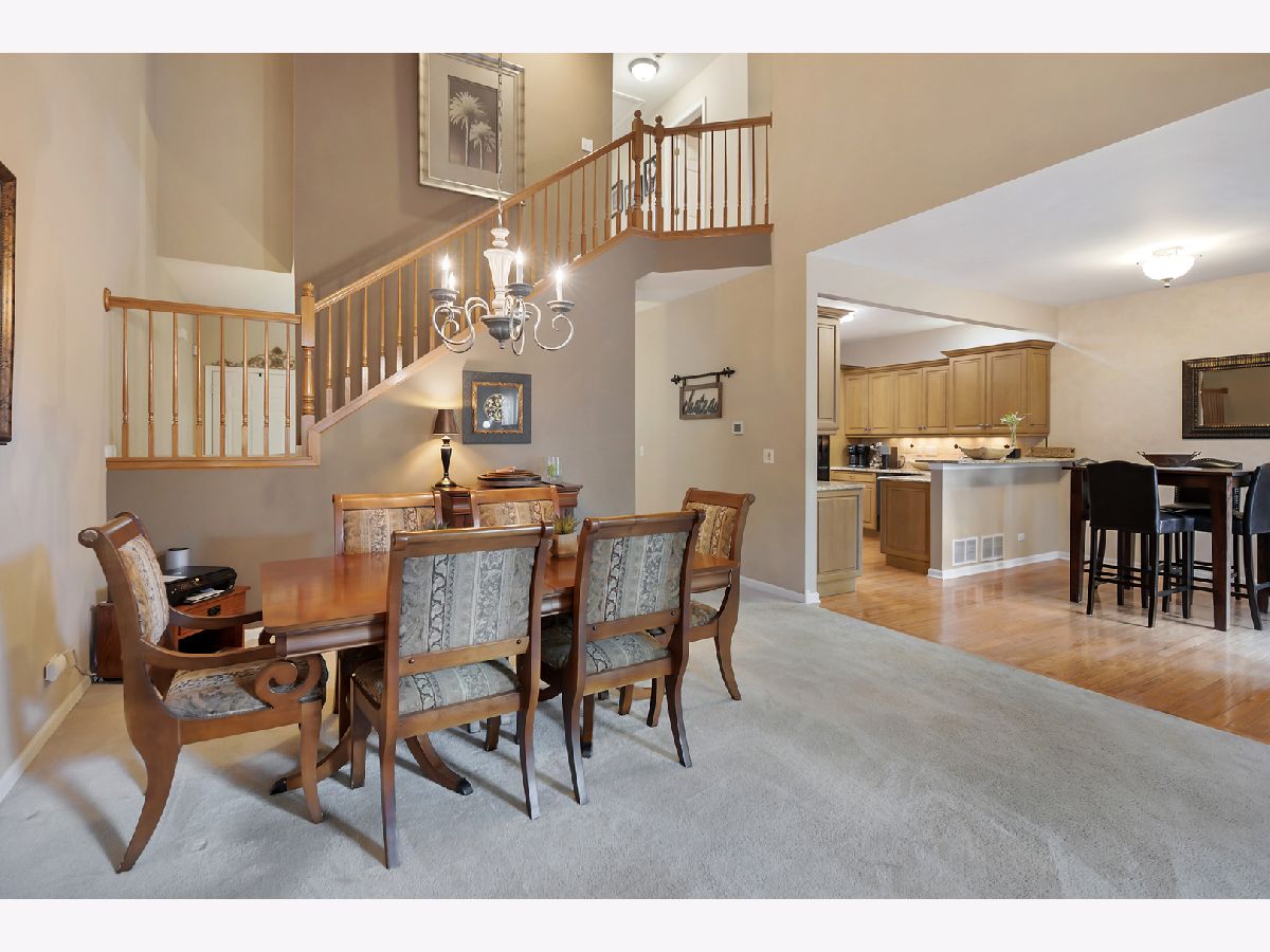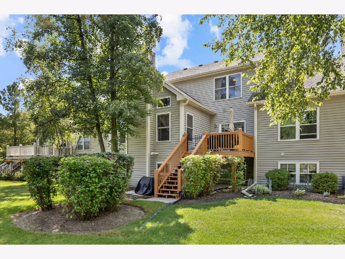 Rarely Available Townhome in Boulder Ridge West Villa! Perfectly situated within the sought-after Boulder Ridge community, this 2-story townhome backs to serene wetlands, offering peaceful privacy, stunning views, and even occasional glimpses of wildlife such as deer and foxes. Inside, the home has been meticulously maintained and showcases a dramatic 2-story dining room that opens to a vaulted living room with a cozy fireplace and an abundance of natural light. The updated kitchen features an abundance of maple cabinetry, granite countertops, hardwood floors, newer appliances (1-2 years old), and a pantry closet. The kitchen is open to a bright eating area with glass doors to a large private deck-ideal for entertaining or simply relaxing outdoors. A convenient first-floor laundry room with sink adds everyday practicality. Upstairs, the primary suite includes a large walk-in closet and spa-like bath with dual sinks, a soaking tub, and separate shower with new shower door. Two additional bedrooms are generously sized and share a full bath with a tub/shower combo and extended vanity. The finished English basement offers flexible living space complete with a full bath. A room previously used as a bedroom has been partially opened to create a bar/game room, but can easily be converted back to a 4th bedroom if desired. Peace of mind comes with newer mechanicals, including A/C (2023) and furnace (less than 2 years old), plus new garage door and opener too! The attached 2-car garage also includes an extra freezer. Enjoy all the beauty and tranquility of this location while still being just minutes from the Randall Rd. corridor with endless shopping, dining, and entertainment. As a resident of Boulder Ridge, you'll also have the option to join the private country club for golf and additional amenities (membership not included in monthly assessments).