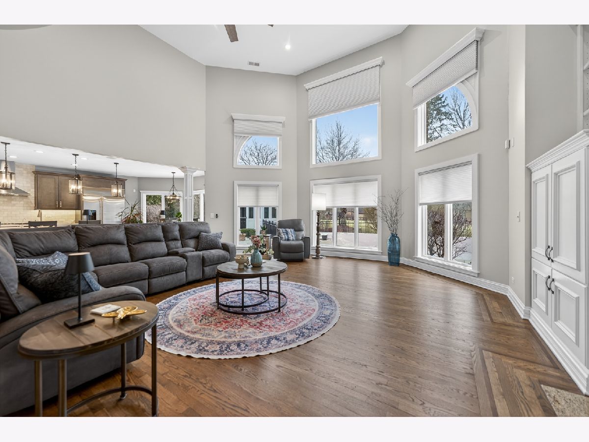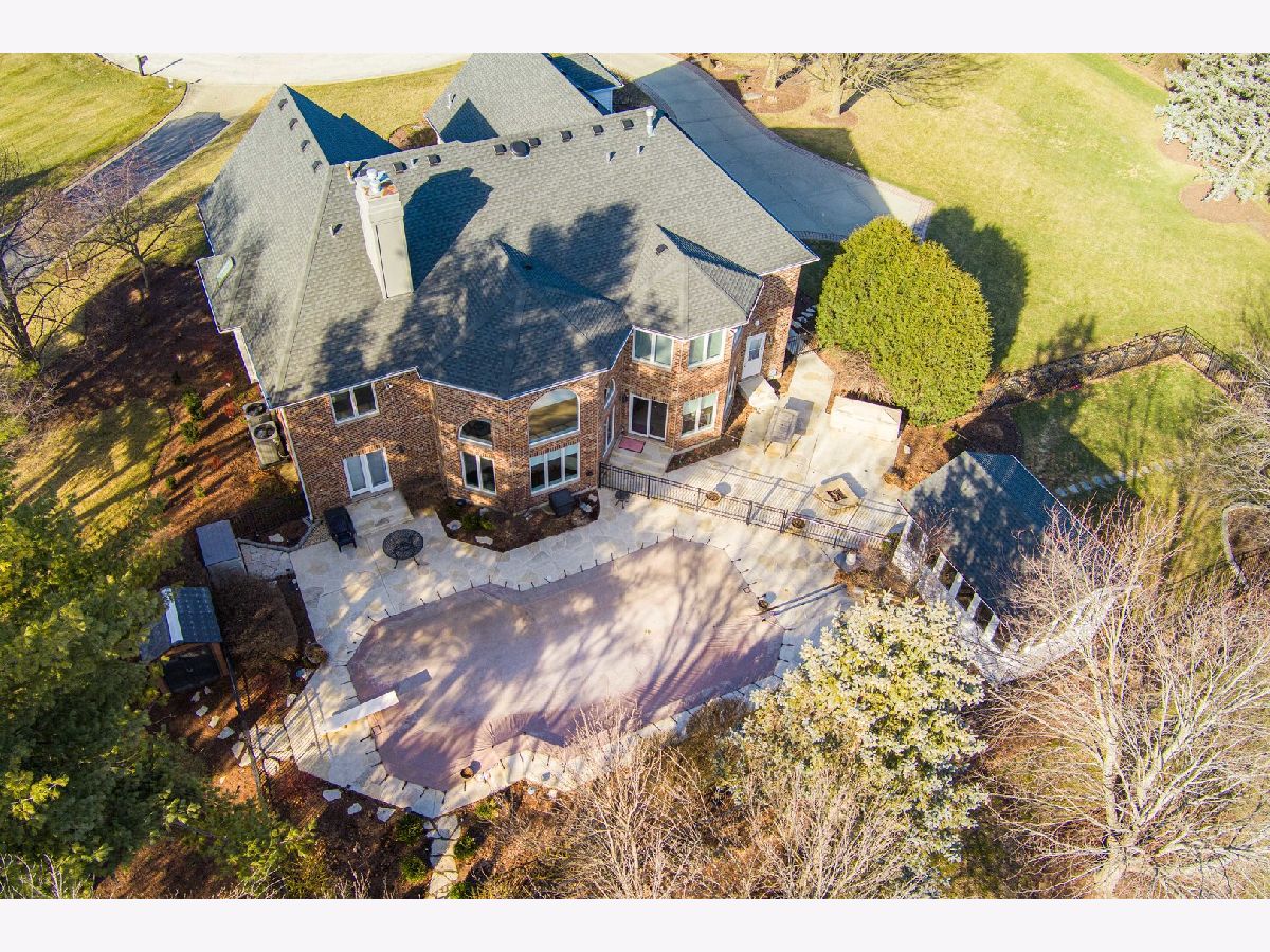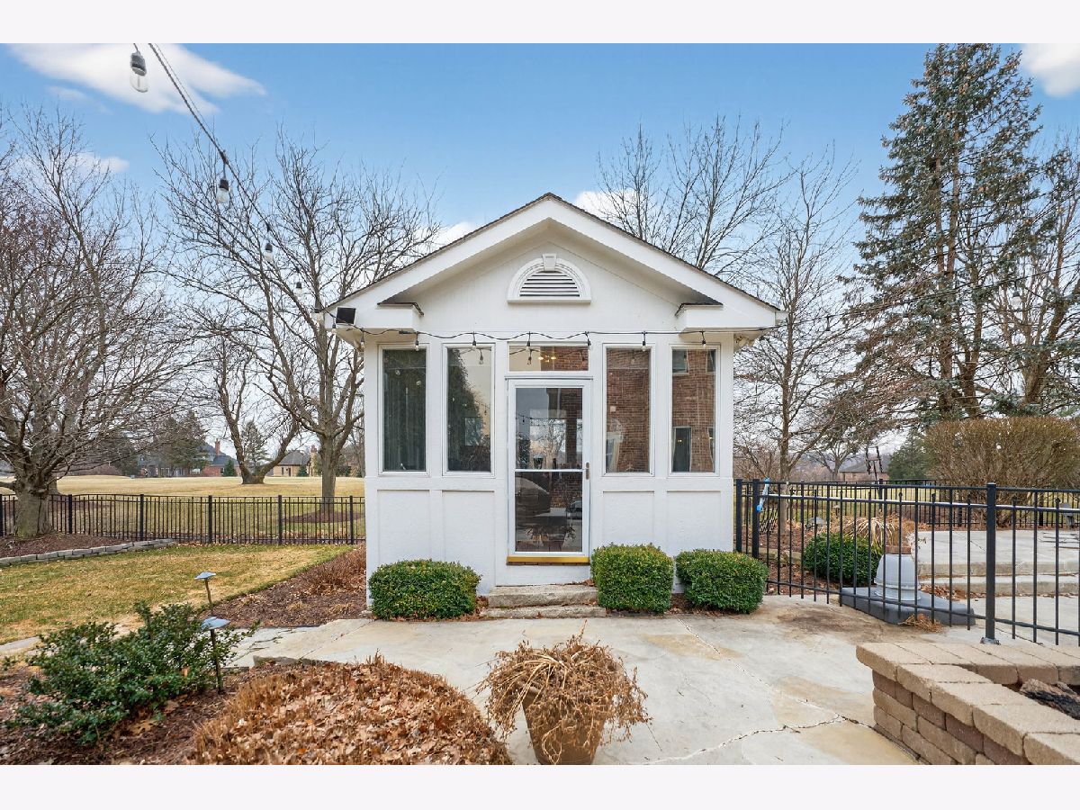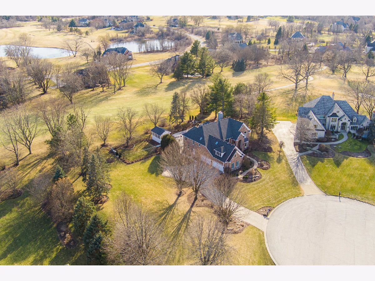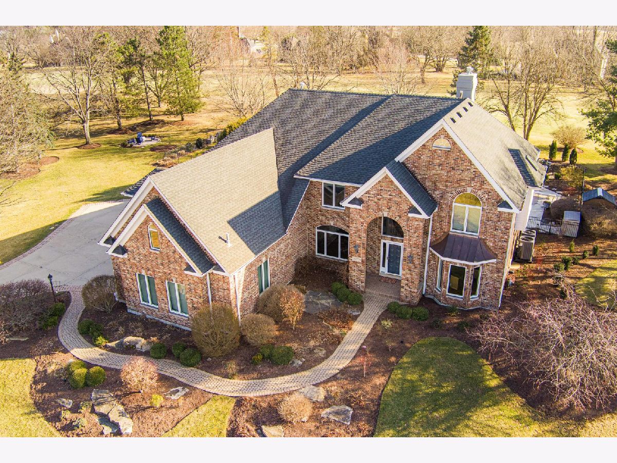 Nestled on a quiet cul-de-sac at The Hawk Country Club in St. Charles, this nearly all-brick golf course estate on 1.3 acres offers luxury living with breathtaking fairway views and timeless architecture in one of St. Charles most sought-after communities. Perfectly positioned along the manicured greens, this home blends elegance, durability, and modern updates. The open-concept floor plan is filled with natural light, soaring ceilings, hardwood flooring throughout, and expansive windows showcasing panoramic golf course views. The main living area exits to the resort-style backyard patio and pool deck, featuring a separate pool house and a built-in gas grill and firepit, allowing for exceptional indoor-outdoor living and effortless entertaining. The fully remodeled modern kitchen (2021) features custom cabinetry, premium appliances, and an oversized island ideal for entertaining, flowing seamlessly into the spacious family room with newer custom built-ins and Graber remote-controlled window shades. A private first-floor office features custom woodwork and refined architectural detailing, creating a warm and sophisticated workspace, with French doors leading to the backyard pool deck. The primary suite offers serene views, a double-sided fireplace and contemporary finishes, along with a fully remodeled spa-inspired bath (2025) with your own private sauna. The custom walk-in closet includes an adjoining private exercise room, creating a true retreat experience within the home. Three generously sized secondary bedrooms provide comfort and ample storage, one with its own private bath, and the others sharing a Jack and Jill bath. The finished lower level is designed for upscale entertaining with a large recreation area centered around a stunning stone fireplace, plush carpeting, and a new ceiling (2025), plus a beautifully appointed custom bar. An additional bedroom and full bath with new vanity create ideal guest, office, or flex space. Step outside to your private resort-style backyard featuring a luxury in-ground Barrington pool, expansive patio space, and exceptional privacy. A full bath with direct access to the backyard provides convenience for swimmers and seamless indoor-outdoor living. The pool has been meticulously maintained with upgrades including a state-of-the-art pool pump, pool heater, and new wireless Aqualink communication system. The pool house was re-sided and painted, and includes a refrigerator and portable air conditioner, offering a bright lounge retreat surrounded by windows. A circular paver patio added in 2024 enhances outdoor entertaining. The large laundry room includes a newer washer and dryer, and built-in lockers and cabinetry, providing functionality and space ideal for busy households. The oversized 4-car garage includes a 240-Volt outlet for charging your electric vehicle. Major updates include new high-efficiency HVAC system (2023), water softener and reverse osmosis (2022), refinished main level hardwood floors (2026), primary bath remodel (2025) and pool and landscaping improvements, delivering move-in ready luxury with long-term value. Just minutes to downtown St. Charles, award-winning schools, dining, shopping, and commuter access, this Hawk Country Club home offers premier golf course living in the heart of St. Charles.