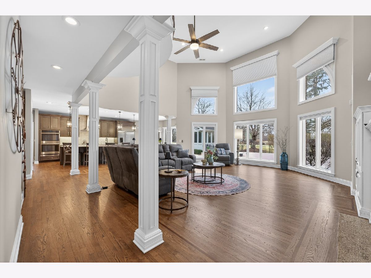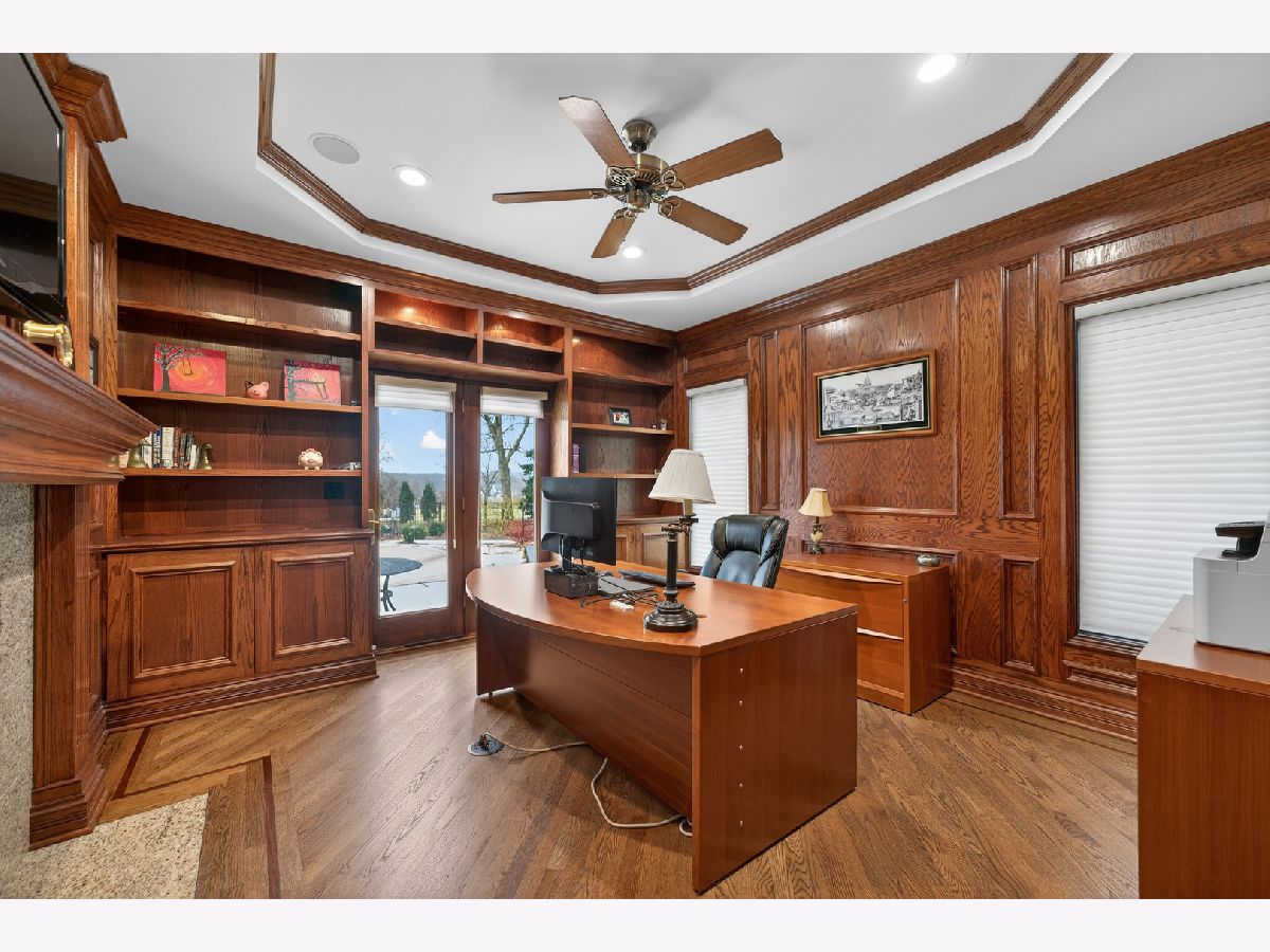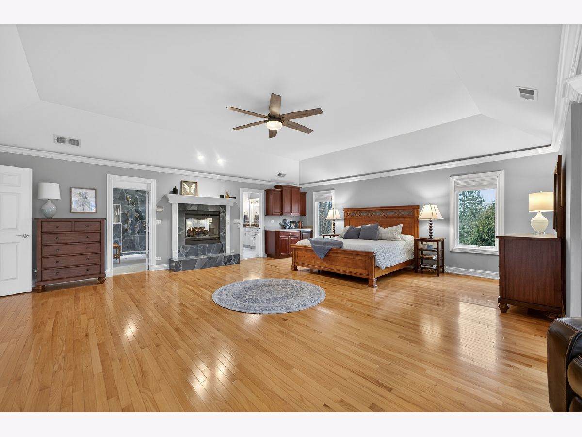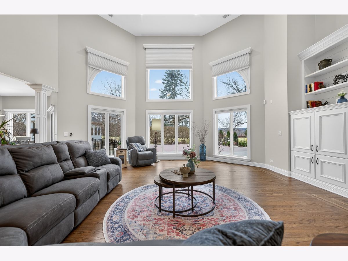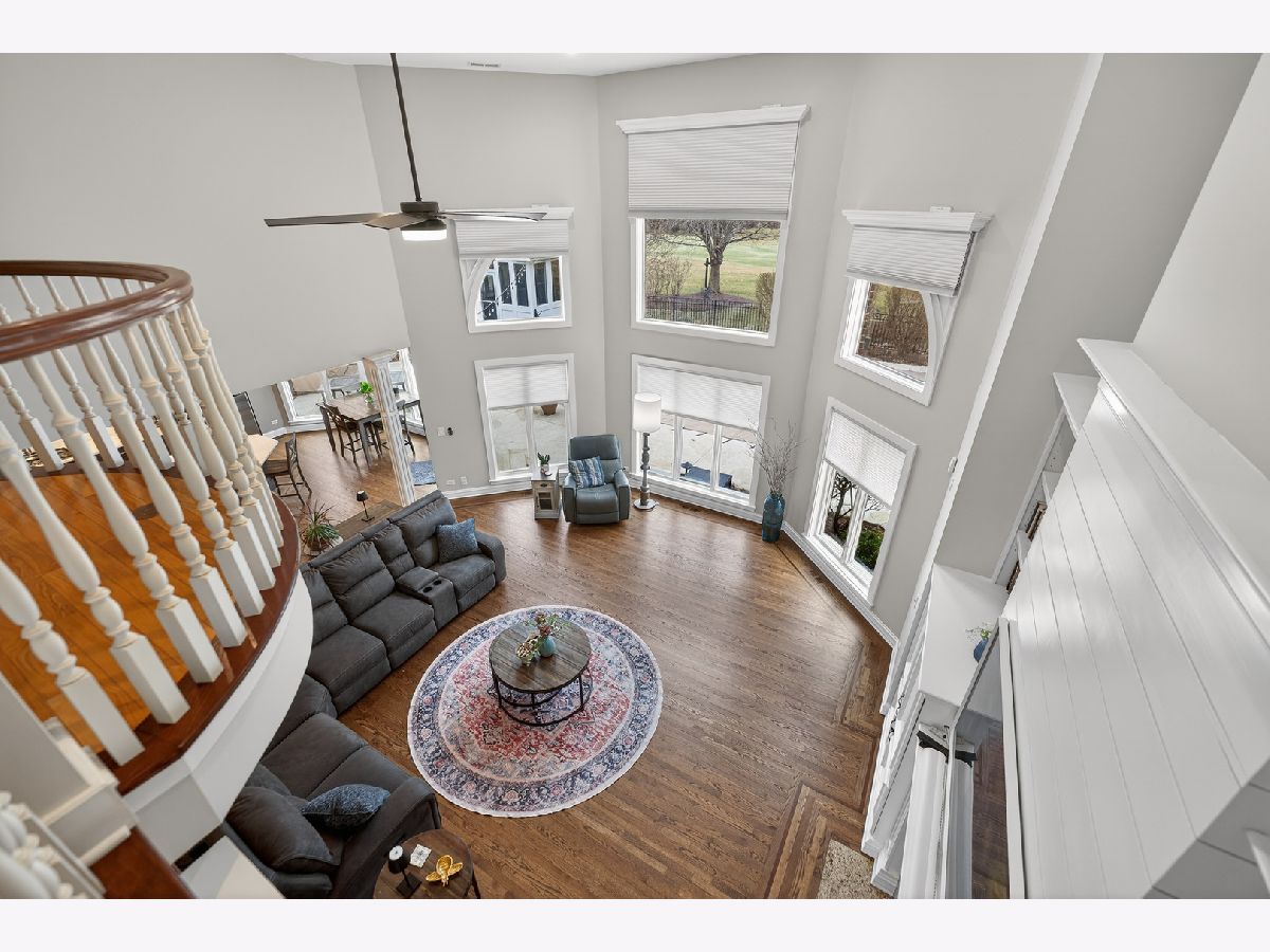 Nestled on a quiet cul-de-sac at The Hawk Country Club in St. Charles, this nearly all-brick golf course estate on 1.3 acres offers luxury living with breathtaking fairway views and timeless architecture in one of St. Charles most sought-after communities. Perfectly positioned along the manicured greens, this home blends elegance, durability, and modern updates. The open-concept floor plan is filled with natural light, soaring ceilings, hardwood flooring throughout, and expansive windows showcasing panoramic golf course views. The main living area exits to the resort-style backyard patio and pool deck, featuring a separate pool house and a built-in gas grill and firepit, allowing for exceptional indoor-outdoor living and effortless entertaining. The fully remodeled modern kitchen (2021) features custom cabinetry, premium appliances, and an oversized island ideal for entertaining, flowing seamlessly into the spacious family room with newer custom built-ins and Graber remote-controlled window shades. A private first-floor office features custom woodwork and refined architectural detailing, creating a warm and sophisticated workspace, with French doors leading to the backyard pool deck. The primary suite offers serene views, a double-sided fireplace and contemporary finishes, along with a fully remodeled spa-inspired bath (2025) with your own private sauna. The custom walk-in closet includes an adjoining private exercise room, creating a true retreat experience within the home. Three generously sized secondary bedrooms provide comfort and ample storage, one with its own private bath, and the others sharing a Jack and Jill bath. The finished lower level is designed for upscale entertaining with a large recreation area centered around a stunning stone fireplace, plush carpeting, and a new ceiling (2025), plus a beautifully appointed custom bar. An additional bedroom and full bath with new vanity create ideal guest, office, or flex space. Step outside to your private resort-style backyard featuring a luxury in-ground Barrington pool, expansive patio space, and exceptional privacy. A full bath with direct access to the backyard provides convenience for swimmers and seamless indoor-outdoor living. The pool has been meticulously maintained with upgrades including a state-of-the-art pool pump, pool heater, and new wireless Aqualink communication system. The pool house was re-sided and painted, and includes a refrigerator and portable air conditioner, offering a bright lounge retreat surrounded by windows. A circular paver patio added in 2024 enhances outdoor entertaining. The large laundry room includes a newer washer and dryer, and built-in lockers and cabinetry, providing functionality and space ideal for busy households. The oversized 4-car garage includes a 240-Volt outlet for charging your electric vehicle. Major updates include new high-efficiency HVAC system (2023), water softener and reverse osmosis (2022), refinished main level hardwood floors (2026), primary bath remodel (2025) and pool and landscaping improvements, delivering move-in ready luxury with long-term value. Just minutes to downtown St. Charles, award-winning schools, dining, shopping, and commuter access, this Hawk Country Club home offers premier golf course living in the heart of St. Charles.