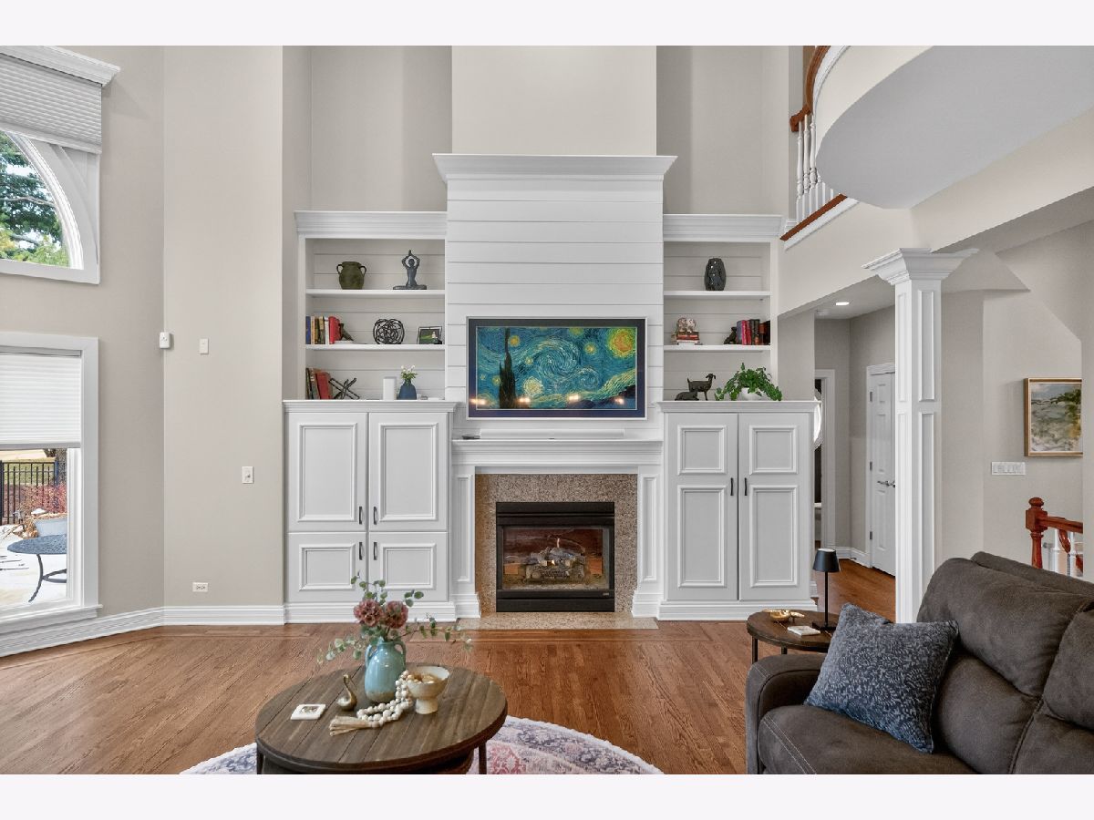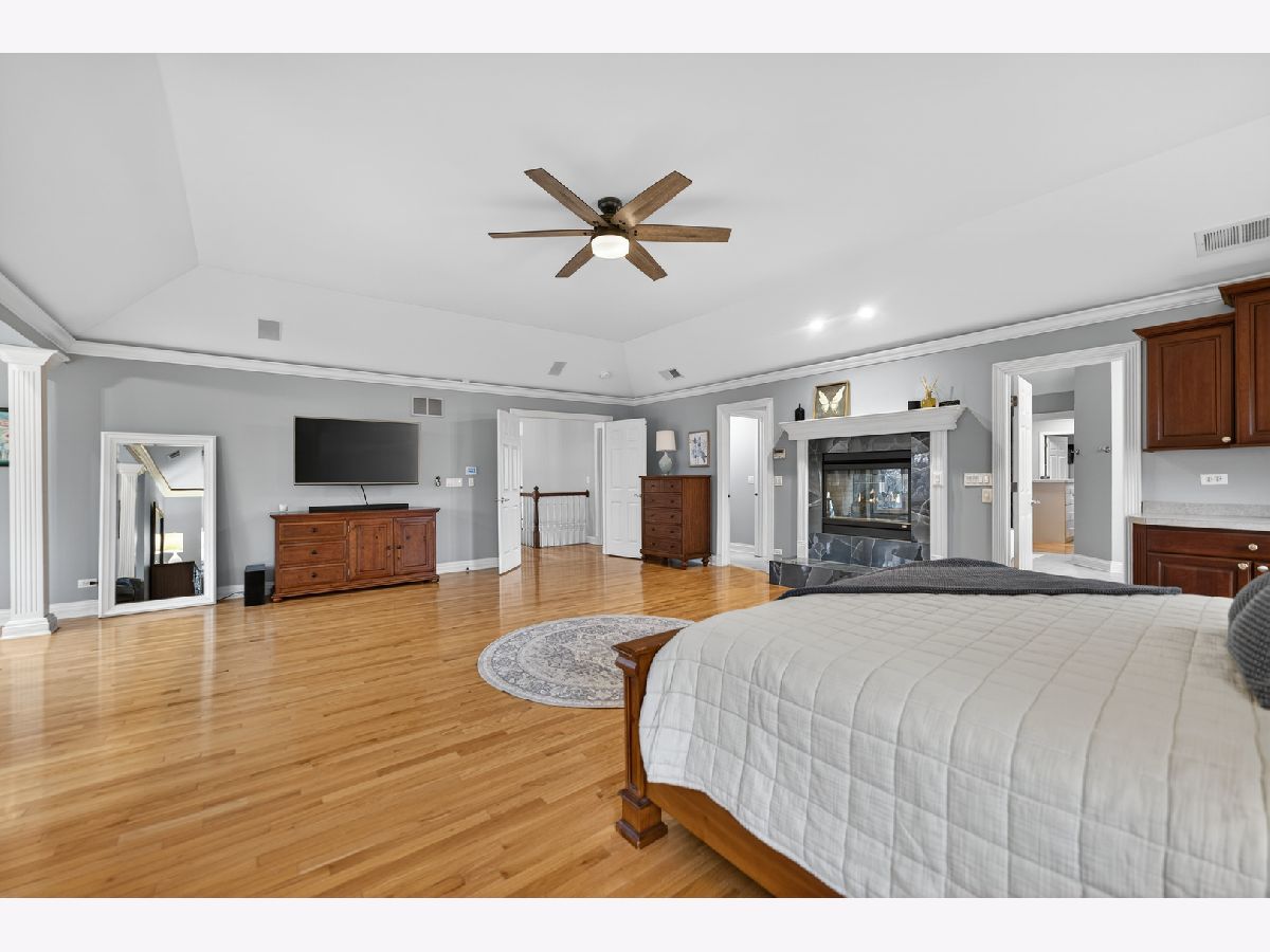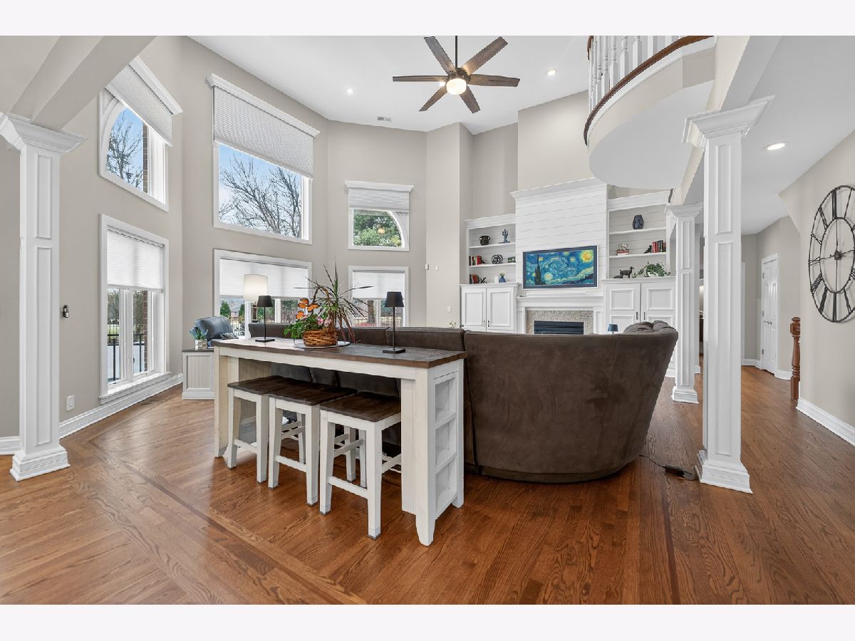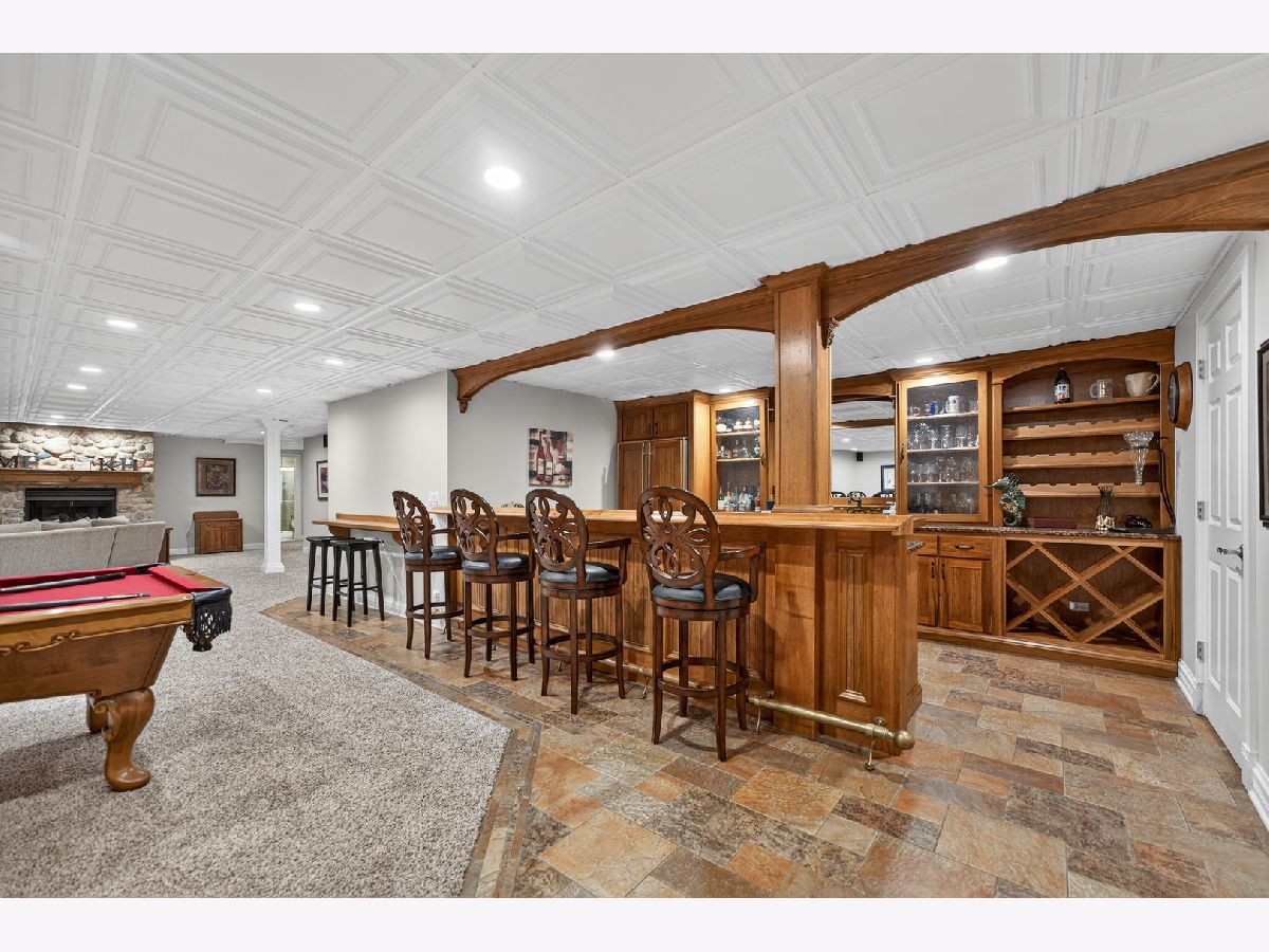 Nestled on a quiet cul-de-sac at The Hawk Country Club in St. Charles, this nearly all-brick golf course estate on 1.3 acres offers luxury living with breathtaking fairway views and timeless architecture in one of St. Charles most sought-after communities. Perfectly positioned along the manicured greens, this home blends elegance, durability, and modern updates. The open-concept floor plan is filled with natural light, soaring ceilings, hardwood flooring throughout, and expansive windows showcasing panoramic golf course views. The main living area exits to the resort-style backyard patio and pool deck, featuring a separate pool house and a built-in gas grill and firepit, allowing for exceptional indoor-outdoor living and effortless entertaining. The fully remodeled modern kitchen (2021) features custom cabinetry, premium appliances, and an oversized island ideal for entertaining, flowing seamlessly into the spacious family room with newer custom built-ins and Graber remote-controlled window shades. A private first-floor office features custom woodwork and refined architectural detailing, creating a warm and sophisticated workspace, with French doors leading to the backyard pool deck. The primary suite offers serene views, a double-sided fireplace and contemporary finishes, along with a fully remodeled spa-inspired bath (2025) with your own private sauna. The custom walk-in closet includes an adjoining private exercise room, creating a true retreat experience within the home. Three generously sized secondary bedrooms provide comfort and ample storage, one with its own private bath, and the others sharing a Jack and Jill bath. The finished lower level is designed for upscale entertaining with a large recreation area centered around a stunning stone fireplace, plush carpeting, and a new ceiling (2025), plus a beautifully appointed custom bar. An additional bedroom and full bath with new vanity create ideal guest, office, or flex space. Step outside to your private resort-style backyard featuring a luxury in-ground Barrington pool, expansive patio space, and exceptional privacy. A full bath with direct access to the backyard provides convenience for swimmers and seamless indoor-outdoor living. The pool has been meticulously maintained with upgrades including a state-of-the-art pool pump, pool heater, and new wireless Aqualink communication system. The pool house was re-sided and painted, and includes a refrigerator and portable air conditioner, offering a bright lounge retreat surrounded by windows. A circular paver patio added in 2024 enhances outdoor entertaining. The large laundry room includes a newer washer and dryer, and built-in lockers and cabinetry, providing functionality and space ideal for busy households. The oversized 4-car garage includes a 240-Volt outlet for charging your electric vehicle. Major updates include new high-efficiency HVAC system (2023), water softener and reverse osmosis (2022), refinished main level hardwood floors (2026), primary bath remodel (2025) and pool and landscaping improvements, delivering move-in ready luxury with long-term value. Just minutes to downtown St. Charles, award-winning schools, dining, shopping, and commuter access, this Hawk Country Club home offers premier golf course living in the heart of St. Charles.