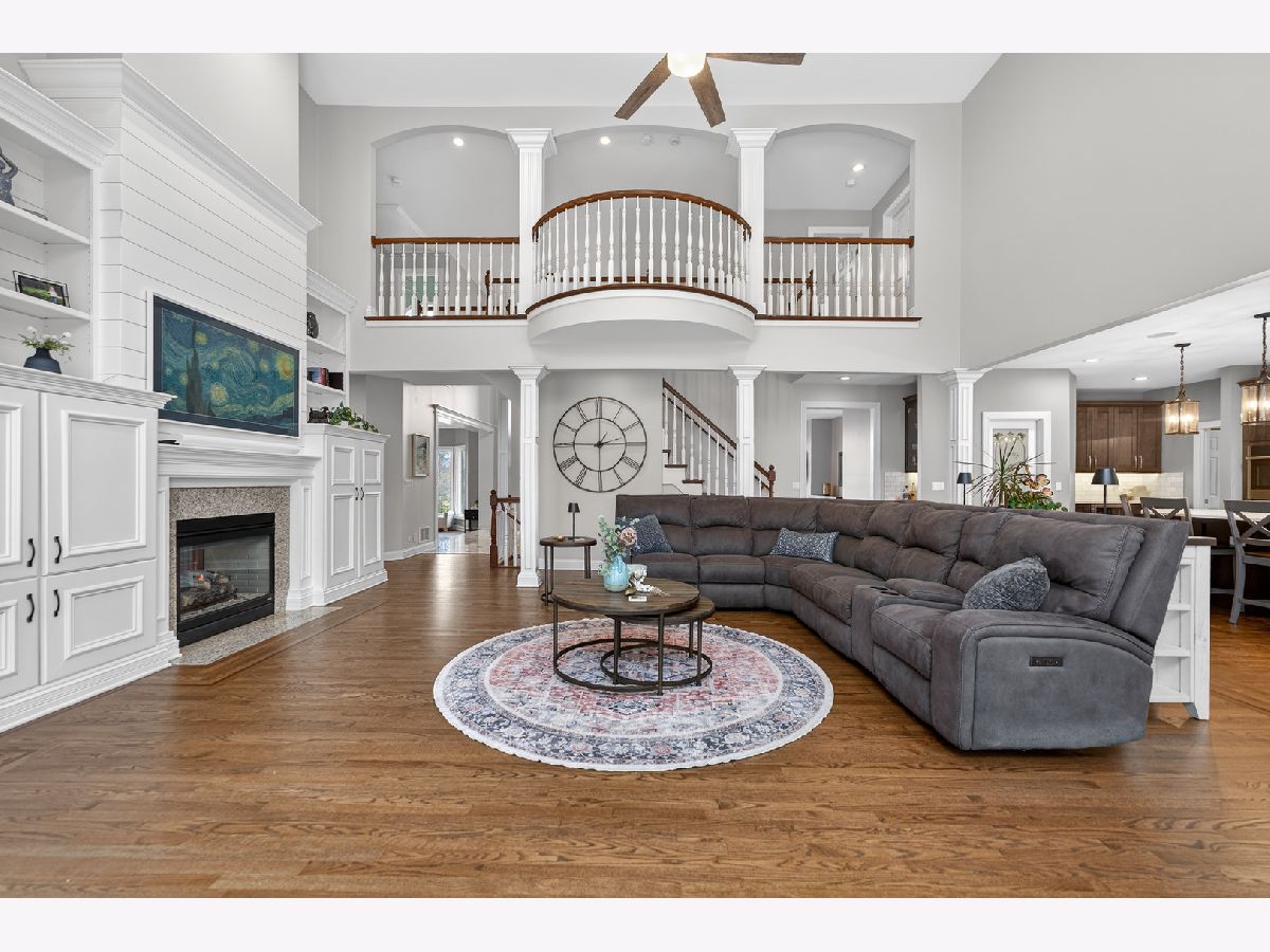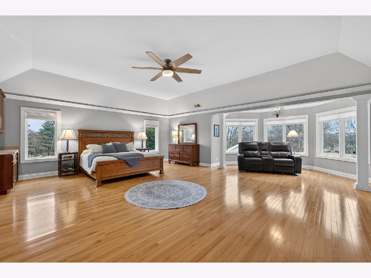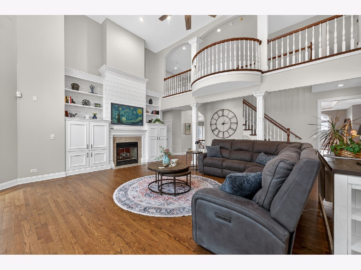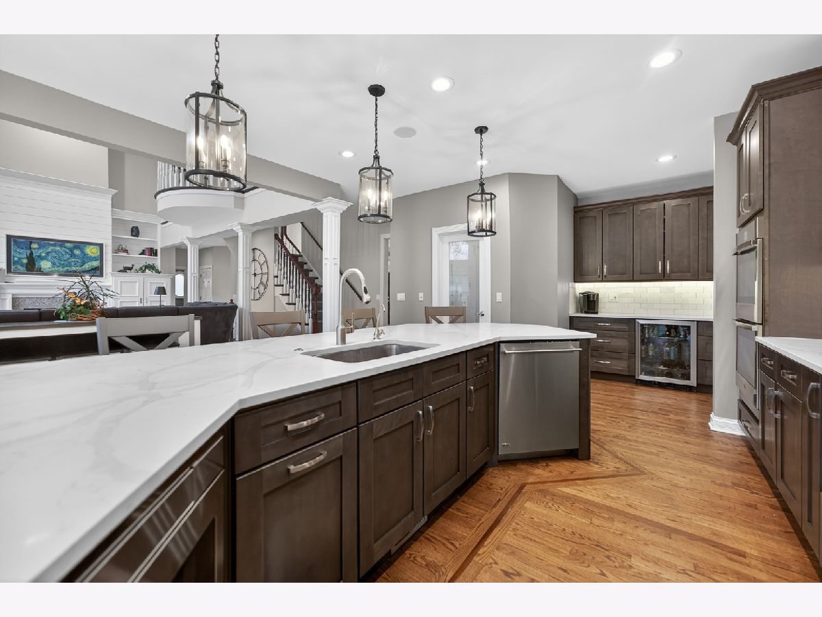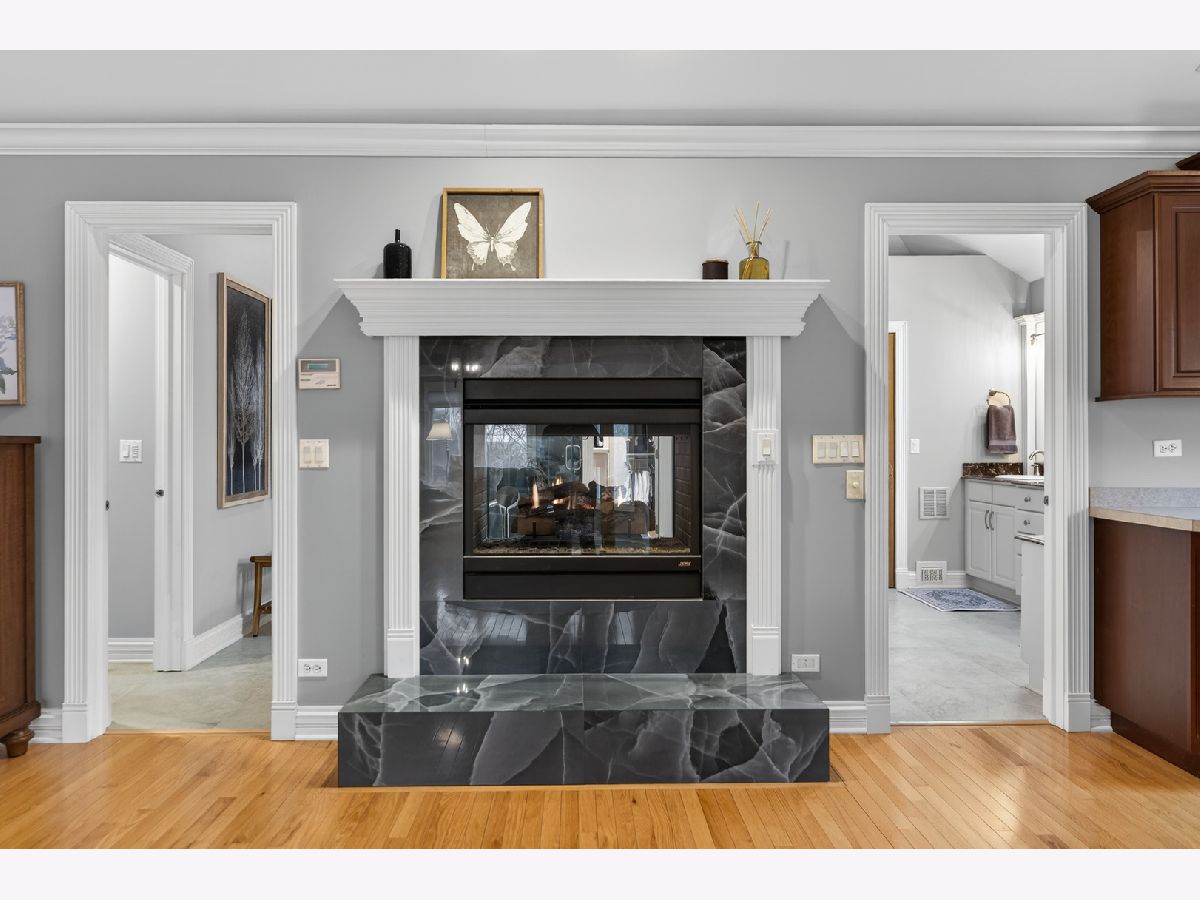 Nestled on a quiet cul-de-sac at The Hawk Country Club in St. Charles, this nearly all-brick golf course estate on 1.3 acres offers luxury living with breathtaking fairway views and timeless architecture in one of St. Charles most sought-after communities. Perfectly positioned along the manicured greens, this home blends elegance, durability, and modern updates. The open-concept floor plan is filled with natural light, soaring ceilings, hardwood flooring throughout, and expansive windows showcasing panoramic golf course views. The main living area exits to the resort-style backyard patio and pool deck, featuring a separate pool house and a built-in gas grill and firepit, allowing for exceptional indoor-outdoor living and effortless entertaining. The fully remodeled modern kitchen (2021) features custom cabinetry, premium appliances, and an oversized island ideal for entertaining, flowing seamlessly into the spacious family room with newer custom built-ins and Graber remote-controlled window shades. A private first-floor office features custom woodwork and refined architectural detailing, creating a warm and sophisticated workspace, with French doors leading to the backyard pool deck. The primary suite offers serene views, a double-sided fireplace and contemporary finishes, along with a fully remodeled spa-inspired bath (2025) with your own private sauna. The custom walk-in closet includes an adjoining private exercise room, creating a true retreat experience within the home. Three generously sized secondary bedrooms provide comfort and ample storage, one with its own private bath, and the others sharing a Jack and Jill bath. The finished lower level is designed for upscale entertaining with a large recreation area centered around a stunning stone fireplace, plush carpeting, and a new ceiling (2025), plus a beautifully appointed custom bar. An additional bedroom and full bath with new vanity create ideal guest, office, or flex space. Step outside to your private resort-style backyard featuring a luxury in-ground Barrington pool, expansive patio space, and exceptional privacy. A full bath with direct access to the backyard provides convenience for swimmers and seamless indoor-outdoor living. The pool has been meticulously maintained with upgrades including a state-of-the-art pool pump, pool heater, and new wireless Aqualink communication system. The pool house was re-sided and painted, and includes a refrigerator and portable air conditioner, offering a bright lounge retreat surrounded by windows. A circular paver patio added in 2024 enhances outdoor entertaining. The large laundry room includes a newer washer and dryer, and built-in lockers and cabinetry, providing functionality and space ideal for busy households. The oversized 4-car garage includes a 240-Volt outlet for charging your electric vehicle. Major updates include new high-efficiency HVAC system (2023), water softener and reverse osmosis (2022), refinished main level hardwood floors (2026), primary bath remodel (2025) and pool and landscaping improvements, delivering move-in ready luxury with long-term value. Just minutes to downtown St. Charles, award-winning schools, dining, shopping, and commuter access, this Hawk Country Club home offers premier golf course living in the heart of St. Charles.