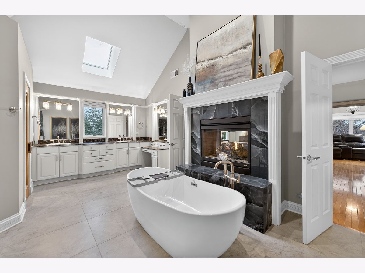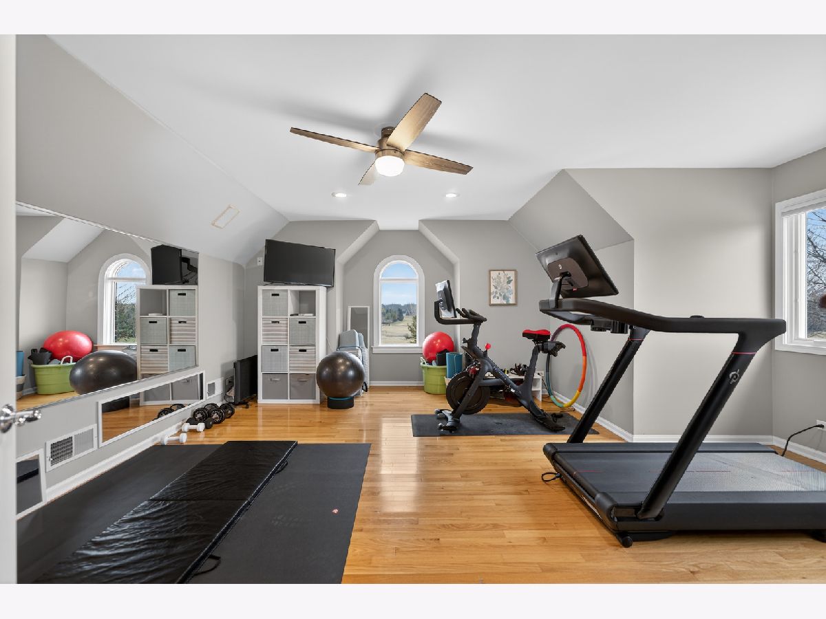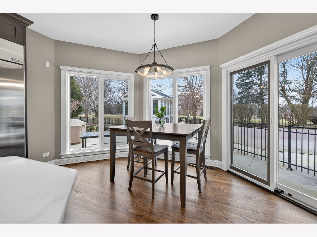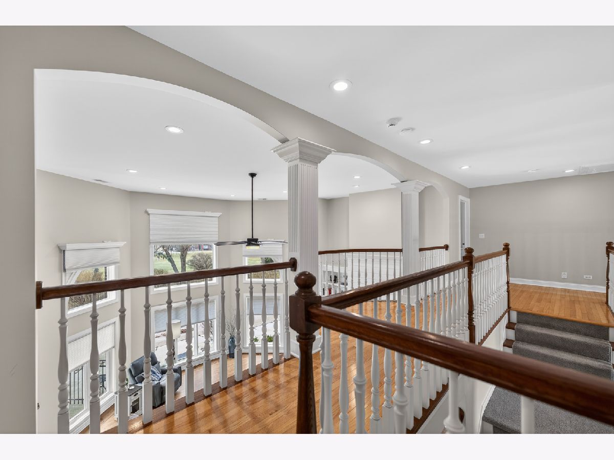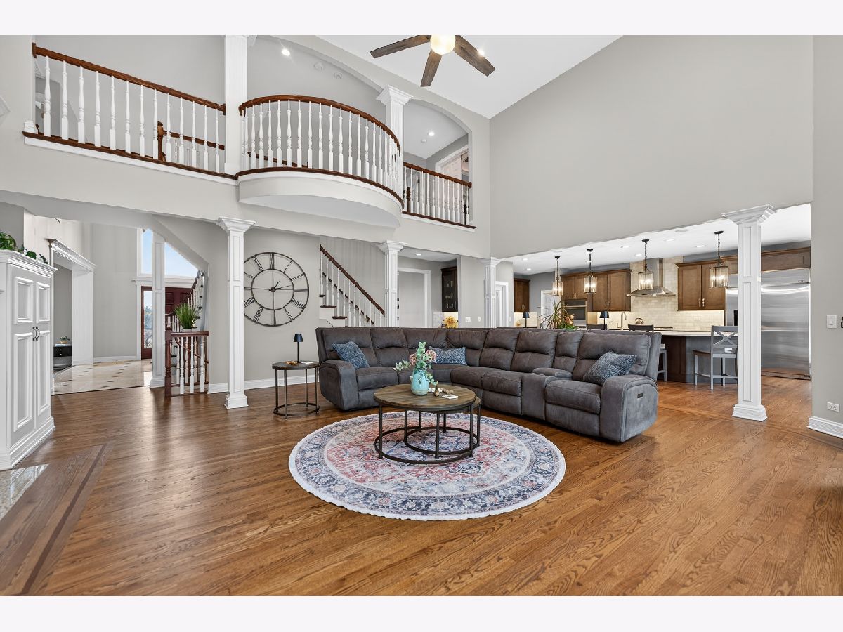 Nestled on a quiet cul-de-sac at The Hawk Country Club in St. Charles, this nearly all-brick golf course estate on 1.3 acres offers luxury living with breathtaking fairway views and timeless architecture in one of St. Charles most sought-after communities. Perfectly positioned along the manicured greens, this home blends elegance, durability, and modern updates. The open-concept floor plan is filled with natural light, soaring ceilings, hardwood flooring throughout, and expansive windows showcasing panoramic golf course views. The main living area exits to the resort-style backyard patio and pool deck, featuring a separate pool house and a built-in gas grill and firepit, allowing for exceptional indoor-outdoor living and effortless entertaining. The fully remodeled modern kitchen (2021) features custom cabinetry, premium appliances, and an oversized island ideal for entertaining, flowing seamlessly into the spacious family room with newer custom built-ins and Graber remote-controlled window shades. A private first-floor office features custom woodwork and refined architectural detailing, creating a warm and sophisticated workspace, with French doors leading to the backyard pool deck. The primary suite offers serene views, a double-sided fireplace and contemporary finishes, along with a fully remodeled spa-inspired bath (2025) with your own private sauna. The custom walk-in closet includes an adjoining private exercise room, creating a true retreat experience within the home. Three generously sized secondary bedrooms provide comfort and ample storage, one with its own private bath, and the others sharing a Jack and Jill bath. The finished lower level is designed for upscale entertaining with a large recreation area centered around a stunning stone fireplace, plush carpeting, and a new ceiling (2025), plus a beautifully appointed custom bar. An additional bedroom and full bath with new vanity create ideal guest, office, or flex space. Step outside to your private resort-style backyard featuring a luxury in-ground Barrington pool, expansive patio space, and exceptional privacy. A full bath with direct access to the backyard provides convenience for swimmers and seamless indoor-outdoor living. The pool has been meticulously maintained with upgrades including a state-of-the-art pool pump, pool heater, and new wireless Aqualink communication system. The pool house was re-sided and painted, and includes a refrigerator and portable air conditioner, offering a bright lounge retreat surrounded by windows. A circular paver patio added in 2024 enhances outdoor entertaining. The large laundry room includes a newer washer and dryer, and built-in lockers and cabinetry, providing functionality and space ideal for busy households. The oversized 4-car garage includes a 240-Volt outlet for charging your electric vehicle. Major updates include new high-efficiency HVAC system (2023), water softener and reverse osmosis (2022), refinished main level hardwood floors (2026), primary bath remodel (2025) and pool and landscaping improvements, delivering move-in ready luxury with long-term value. Just minutes to downtown St. Charles, award-winning schools, dining, shopping, and commuter access, this Hawk Country Club home offers premier golf course living in the heart of St. Charles.