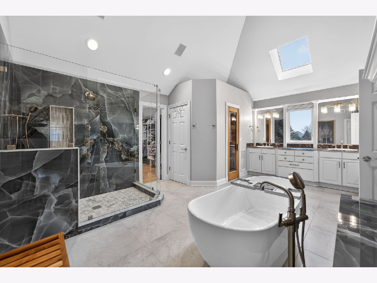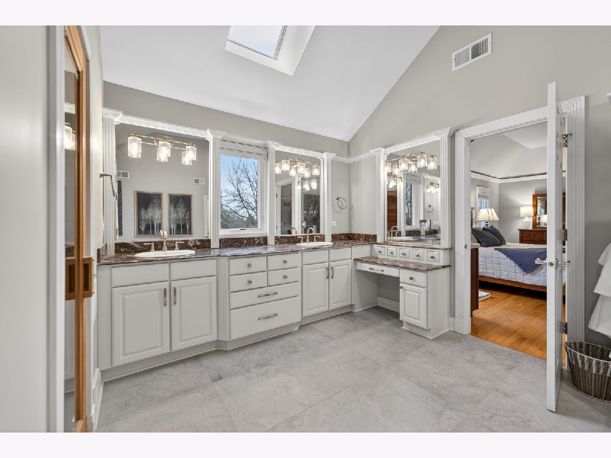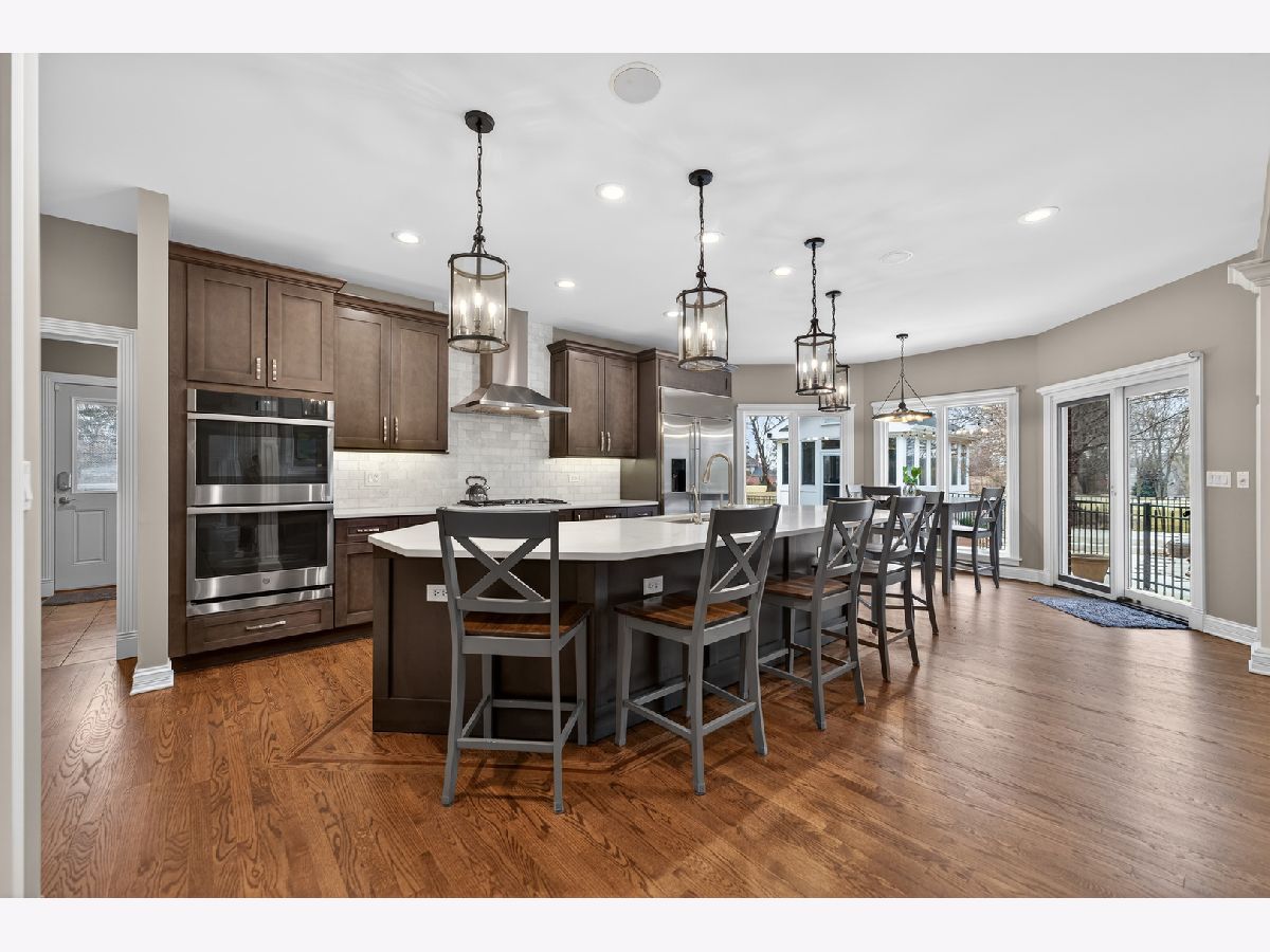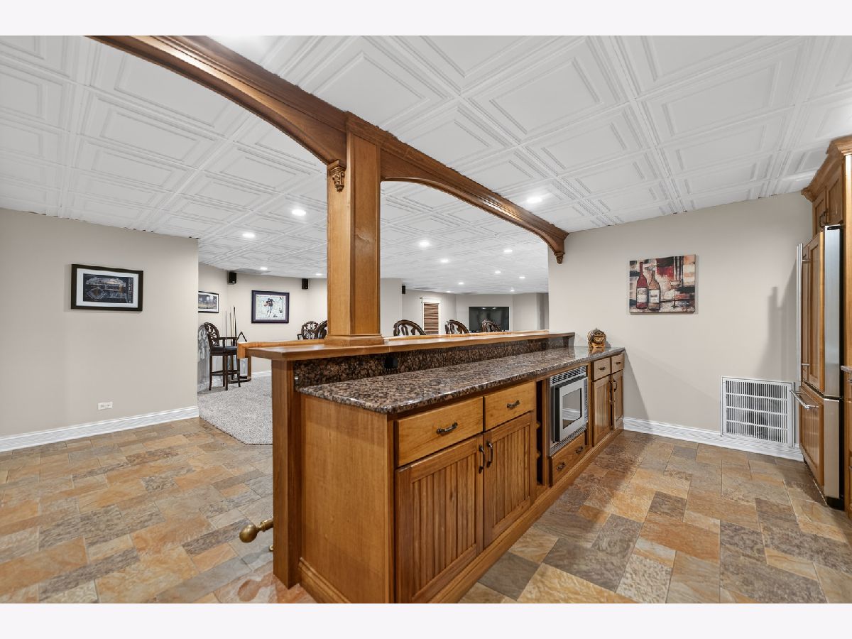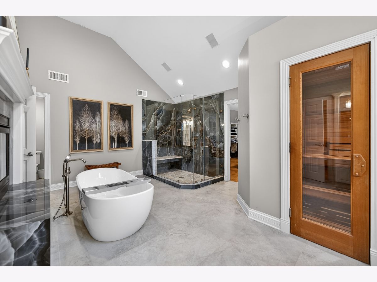 Nestled on a quiet cul-de-sac at The Hawk Country Club in St. Charles, this nearly all-brick golf course estate on 1.3 acres offers luxury living with breathtaking fairway views and timeless architecture in one of St. Charles most sought-after communities. Perfectly positioned along the manicured greens, this home blends elegance, durability, and modern updates. The open-concept floor plan is filled with natural light, soaring ceilings, hardwood flooring throughout, and expansive windows showcasing panoramic golf course views. The main living area exits to the resort-style backyard patio and pool deck, featuring a separate pool house and a built-in gas grill and firepit, allowing for exceptional indoor-outdoor living and effortless entertaining. The fully remodeled modern kitchen (2021) features custom cabinetry, premium appliances, and an oversized island ideal for entertaining, flowing seamlessly into the spacious family room with newer custom built-ins and Graber remote-controlled window shades. A private first-floor office features custom woodwork and refined architectural detailing, creating a warm and sophisticated workspace, with French doors leading to the backyard pool deck. The primary suite offers serene views, a double-sided fireplace and contemporary finishes, along with a fully remodeled spa-inspired bath (2025) with your own private sauna. The custom walk-in closet includes an adjoining private exercise room, creating a true retreat experience within the home. Three generously sized secondary bedrooms provide comfort and ample storage, one with its own private bath, and the others sharing a Jack and Jill bath. The finished lower level is designed for upscale entertaining with a large recreation area centered around a stunning stone fireplace, plush carpeting, and a new ceiling (2025), plus a beautifully appointed custom bar. An additional bedroom and full bath with new vanity create ideal guest, office, or flex space. Step outside to your private resort-style backyard featuring a luxury in-ground Barrington pool, expansive patio space, and exceptional privacy. A full bath with direct access to the backyard provides convenience for swimmers and seamless indoor-outdoor living. The pool has been meticulously maintained with upgrades including a state-of-the-art pool pump, pool heater, and new wireless Aqualink communication system. The pool house was re-sided and painted, and includes a refrigerator and portable air conditioner, offering a bright lounge retreat surrounded by windows. A circular paver patio added in 2024 enhances outdoor entertaining. The large laundry room includes a newer washer and dryer, and built-in lockers and cabinetry, providing functionality and space ideal for busy households. The oversized 4-car garage includes a 240-Volt outlet for charging your electric vehicle. Major updates include new high-efficiency HVAC system (2023), water softener and reverse osmosis (2022), refinished main level hardwood floors (2026), primary bath remodel (2025) and pool and landscaping improvements, delivering move-in ready luxury with long-term value. Just minutes to downtown St. Charles, award-winning schools, dining, shopping, and commuter access, this Hawk Country Club home offers premier golf course living in the heart of St. Charles.