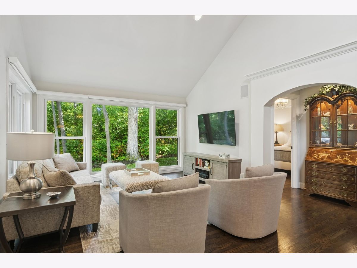 Stunning Armour Woods townhome with a luxurious, like-new feel. Set among the trees, this beautifully reimagined residence offers a perfect blend of modern sophistication and timeless elegance. The space has been completely reworked and meticulously executed, showcasing high-end finishes throughout. The expansive first floor primary suite features a spa-inspired bath designed for ultimate relaxation. A chef's kitchen awaits with top-of-the-line appliances, custom cabinetry, and premium surfaces-ideal for entertaining or everyday indulgence. Unwind in the cozy wine room, complete with a fireplace and an impressive 264-bottle wine cooler. The charming glass-enclosed den/sun room opens to a private deck surrounded by serene woodland views, offering the perfect indoor-outdoor connection. With three finished levels, this home delivers comfort, space, and sophistication at every turn. Move in ready and enjoy maintenance free lifestyle in one of Lake Bluff's most sought after communities.