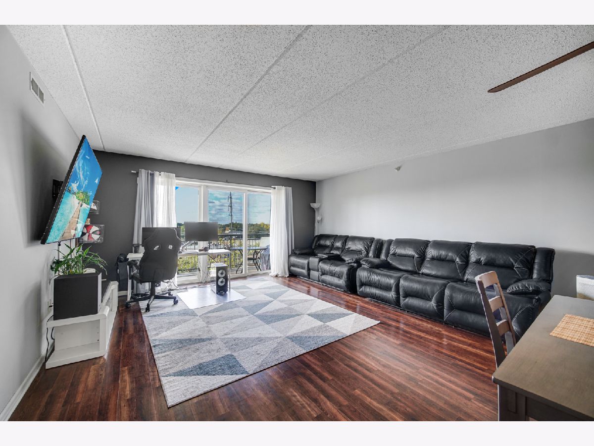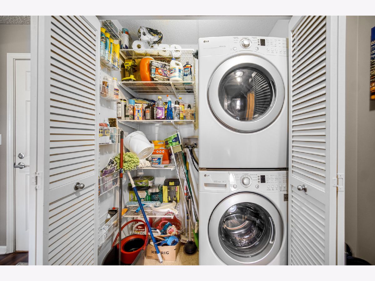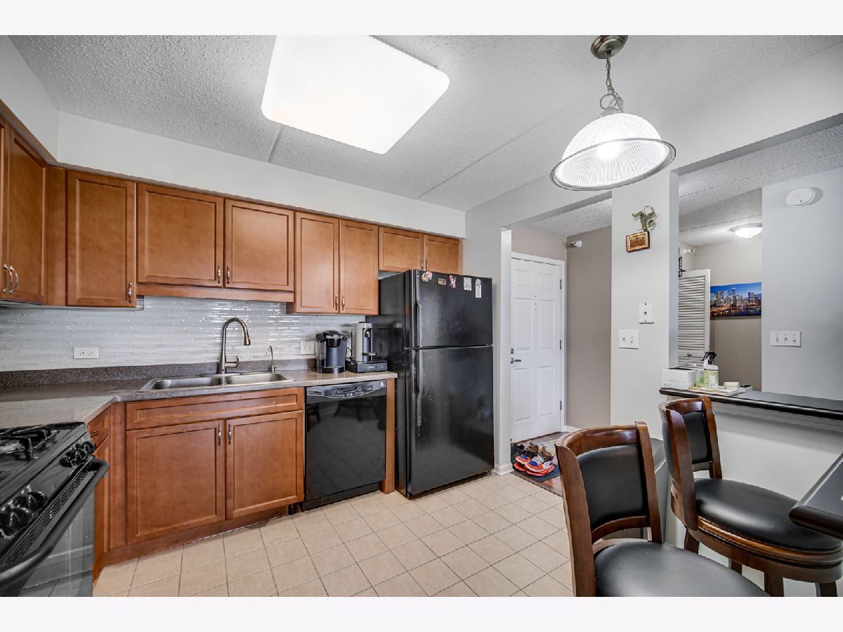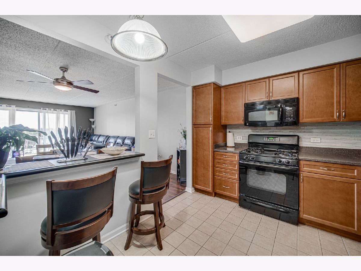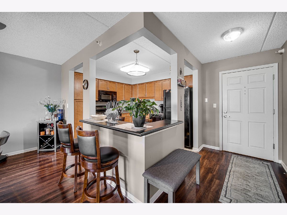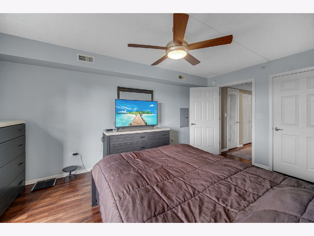Rarely available spacious one bedroom 6th floor condo at the popular Stonegate subdivision; move in ready. Bedroom has walk in closet as well as additional closet space. In unit full size washer and dryer, plus storage space, central air conditioning and long sunny balcony with southwest views. Open floor plan with eat in kitchen. The heated end unit garage space (#54) is close to the garage entrance and next to a private, secured large and tall storage room. Additional outdoor parking space is also available. Lovely complex with gazebo park. Located in downtown Des Plaines, near library, theatre, city hall, grocery, and restaurants. Close To O'Hare airport, Rosemont Fashion Outlets, Metra, Close to city and surrounding suburbs. Pet friendly building, up to two pets. Owner occupied building. Assessments include cable and internet, and all utilities, except electric. Professionally managed building.