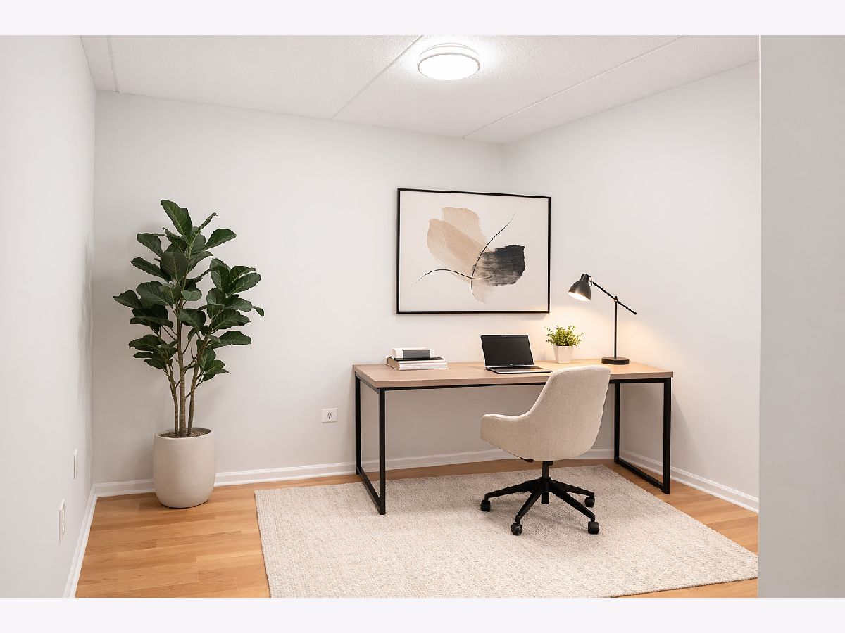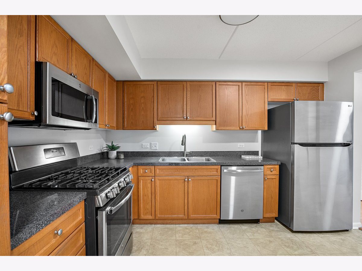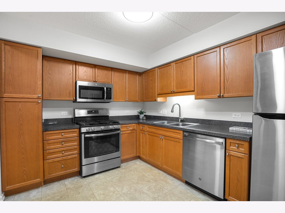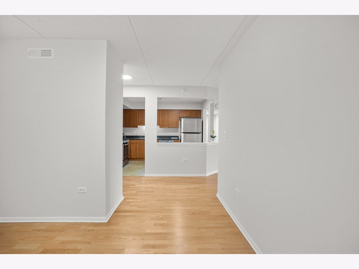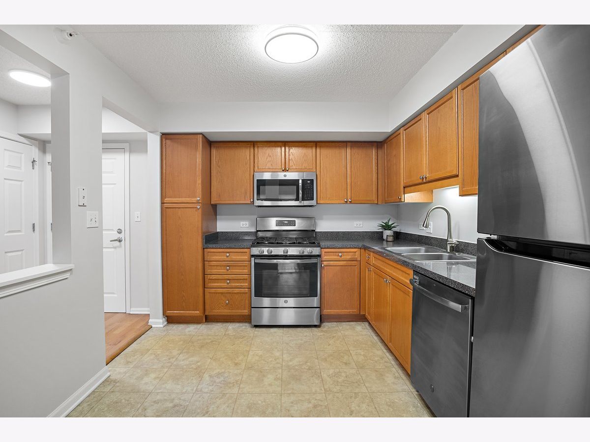 Rarely available spacious one-bedroom condo with den in the highly sought-after Stonegate subdivision. Move-in ready! This desirable "Crystal" model offers a bright and open layout with a combined living and dining room. Recently painted and featuring engineered wood flooring, updated lightning, updated window treatments. The sliding glass door leads to a private balcony, perfect for relaxing. The large bedroom includes a walk-in closet. The unit also features in-unit washer and dryer and new stainless steel appliances in the kitchen. Enjoy the convenience of an indoor heated garage space, plenty of visitor parking, and a private secured storage room. The secure building includes an elevator and well-maintained common areas. Residents also enjoy a beautifully landscaped complex with a gazebo park. Located in the heart of downtown Des Plaines, just blocks from the Metra station, library, theatre, city hall, grocery stores, parks, restaurants, and more. Easy access to O'Hare Airport, Rosemont Fashion Outlets, and major highways. Monthly assessments include heat, cooking gas, water, cable TV, and internet, offering comfortable and low-maintenance living in a prime location.