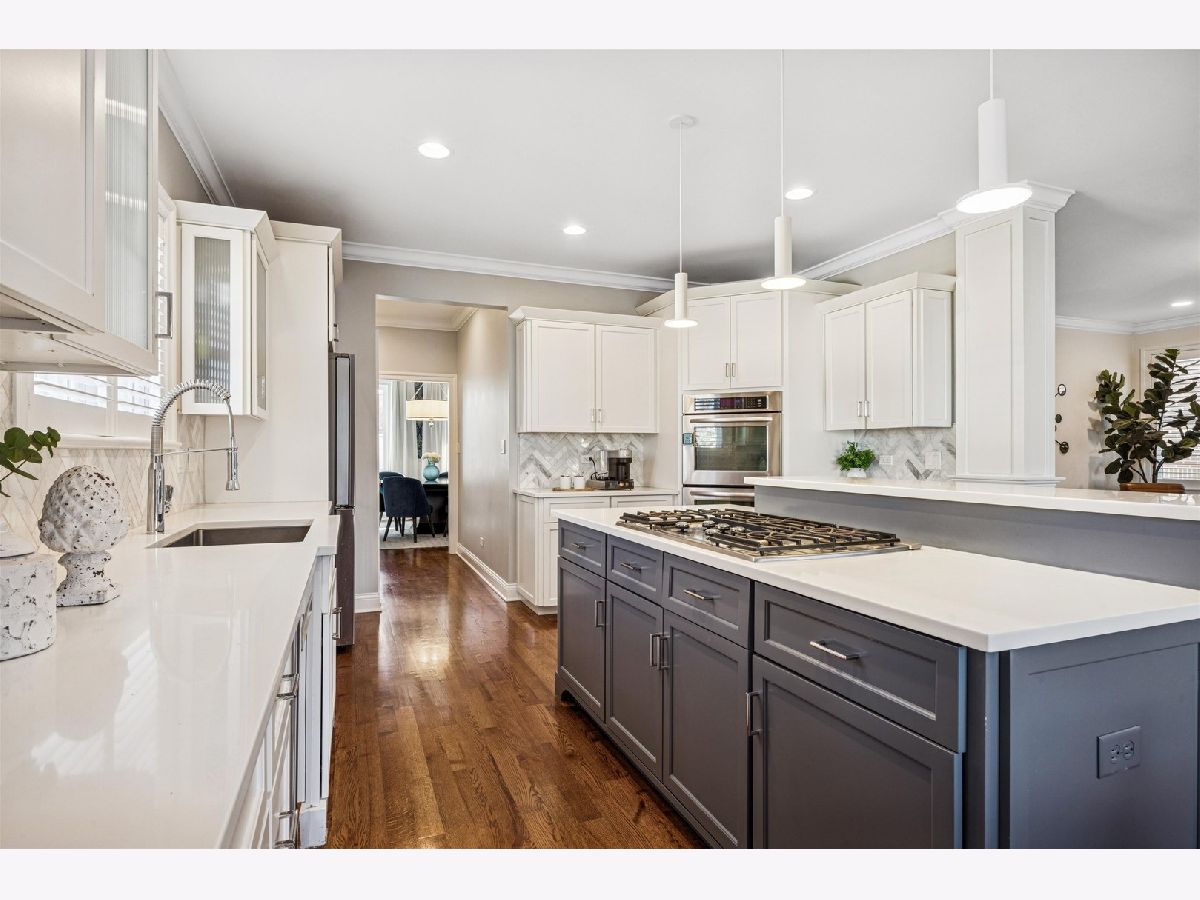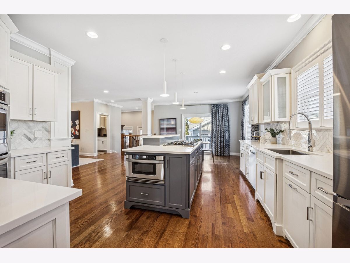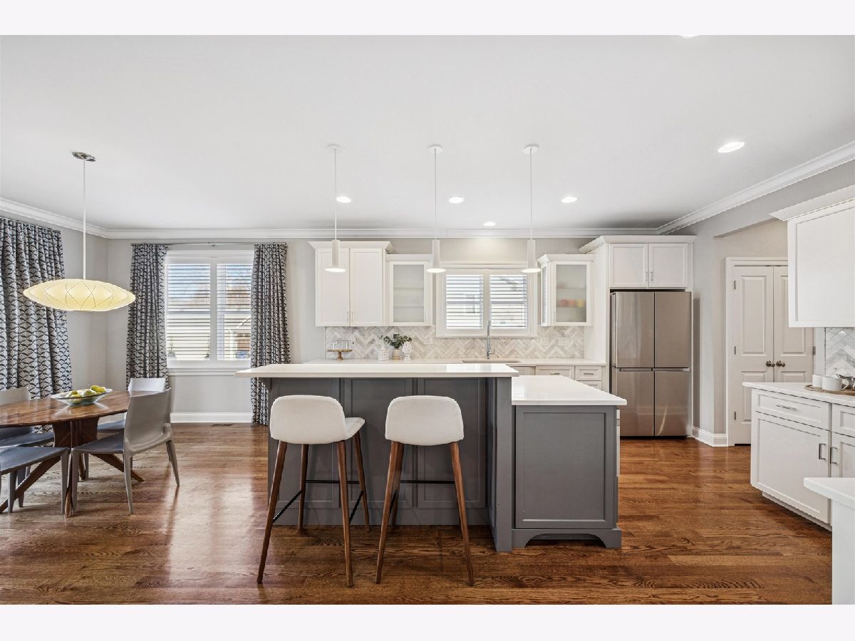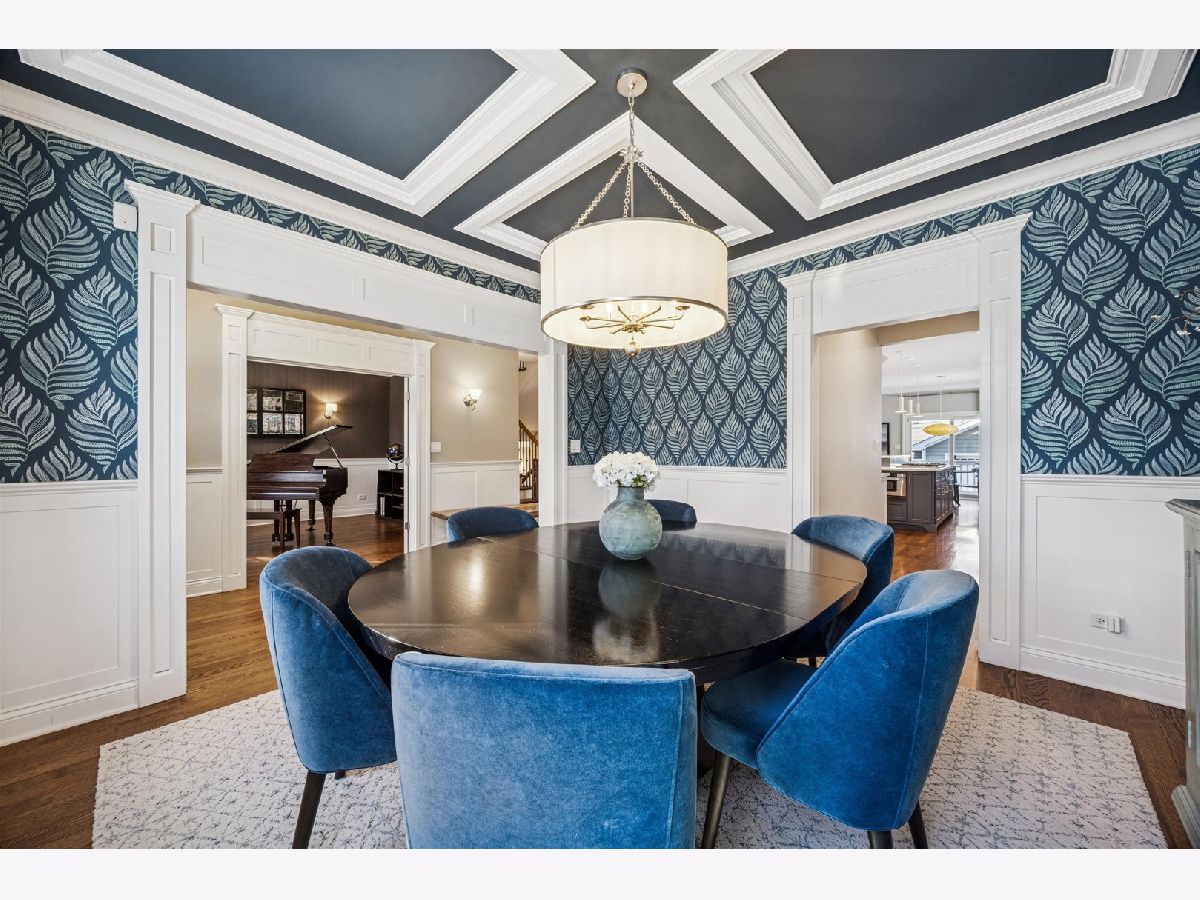 Welcome to this beautifully crafted modern farmhouse in coveted Old Town Western Springs. Custom built in 2012 this home showcases timeless design and high-end craftsmanship throughout, including 3" hardwood floors, striking millwork, coffered ceilings, and designer finishes. The chef's kitchen anchors the main level with a large center island, stainless steel appliances, butler's pantry with beverage center, and newly updated countertops and backsplash. Nearly every room has been thoughtfully enhanced by a private Chicago interior designer in recent years with custom lighting, wallpaper, paint selections, and window treatments. The open-concept first floor offers exceptional flow and functionality, featuring an oversized office/living room, formal dining room, and a family room with fireplace open to the kitchen and breakfast area. Four finished levels provide flexibility for today's living. The second floor includes four spacious bedrooms. The primary suite offers a refreshed spa-like bath and oversized walk-in closet. Two bedrooms share a Jack-and-Jill bath with private vanities, while the fourth enjoys its own en suite. The third floor provides a fifth bedroom or ideal home office. The lower level is seamlessly integrated via two open staircases and features a recreation room with built-ins, wet bar, full bath, exercise room with Murphy bed (perfect as a sixth guest space), and a temperature-controlled wine cellar. Additional highlights include dual-zoned HVAC, first-floor laundry and mudroom, and a professionally landscaped, fenced yard with built-in firepit. Ideally located near Laidlaw Elementary, Sereda Park, downtown Western Springs, expressways, pool, theater, and rec center. A rare, turnkey luxury opportunity.
