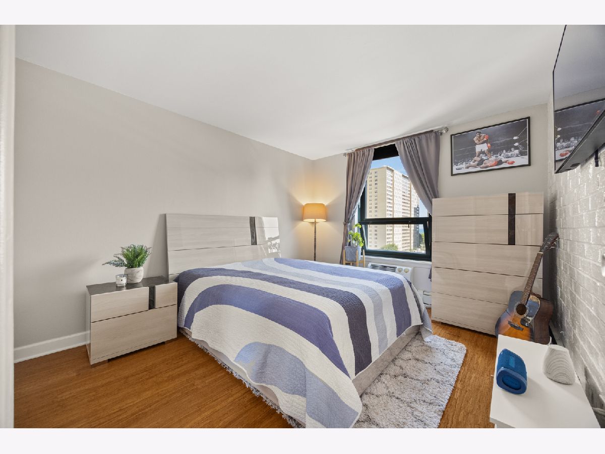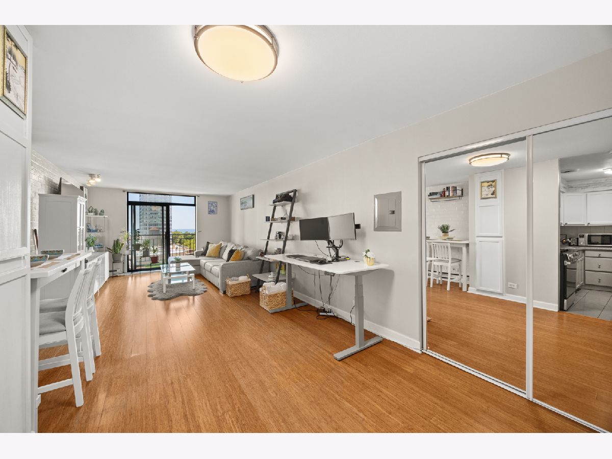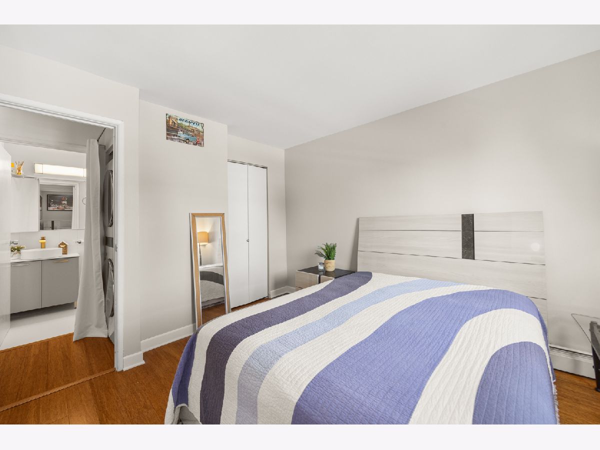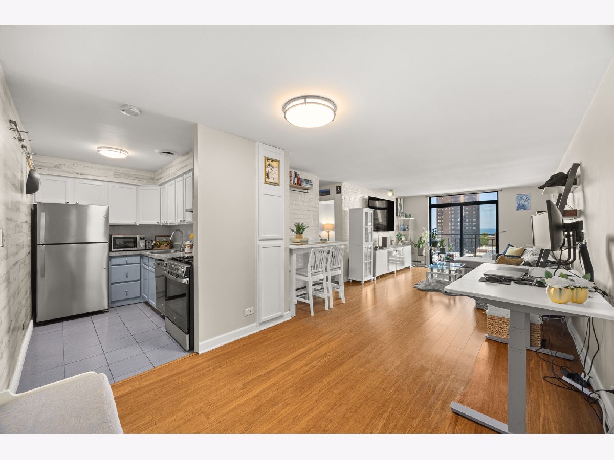 THE MILLION-DOLLAR VIEW! Perched on the 9th floor, this stunning 1 bed / 1 bath condo offers unobstructed, full east exposure with breathtaking views of the city and Lake Michigan from both the living room and bedroom. Step into a bright, open space featuring bamboo hardwood floors, a kitchen with brand new stainless steel appliances, counter space, and room for a breakfast table or island. The living area flows seamlessly to a private balcony with gas grill-perfect for entertaining against a skyline backdrop. Enjoy a newly remodeled bathroom with all-white ceramic tile, soaking tub/shower combo, modern vanity, and new fixtures. Convenience meets style with a brand-new stackable washer/dryer in-unit and excellent bedroom closet space. Indoor pool, sauna, roof deck, gym, small fitness room available for every day activities. Unbeatable location-steps from the lakefront, shopping, restaurants, and transit. Heated garage parking included. Building has newly updated electrical, tuckpointing and facade. Don't miss it.