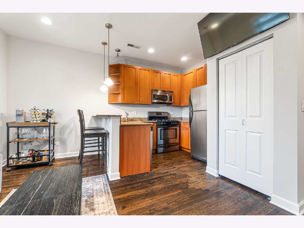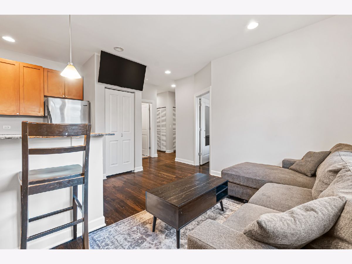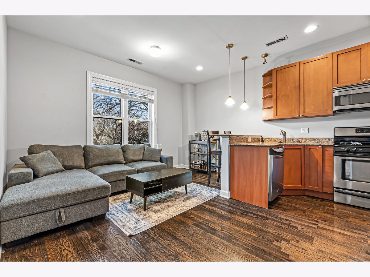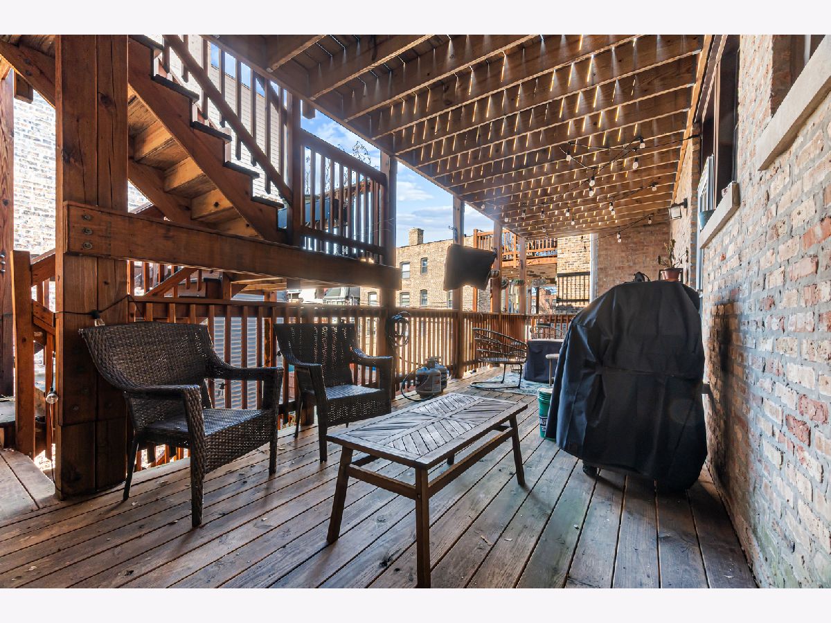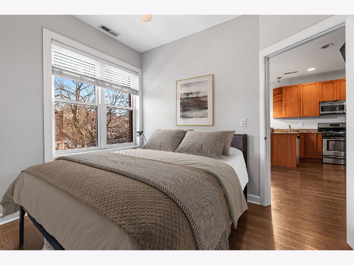 Check out this fantastic opportunity in the heart of North Center! This bright 1 bedroom + den offers a thoughtfully designed layout with an open kitchen featuring granite countertops, stainless steel appliances, and a breakfast bar that opens into a sunny living space. The spacious bedroom connects to a charming enclosed sunroom, perfect for a home office, home gym, or reading nook. While the separate den provides flexible space for work, guests, or relaxation. Step outside to a huge private deck overlooking a secured, landscaped courtyard, ideal for entertaining outdoors. Additional highlights include hardwood floors, in-unit laundry, and ample storage. All of this is located on a quiet, tree-lined street just a short walk to the Brown Line, Metra, parks, Timber Lanes, breweries, and some of North Center's favorite restaurants and shops. An unbeatable location and incredible value!