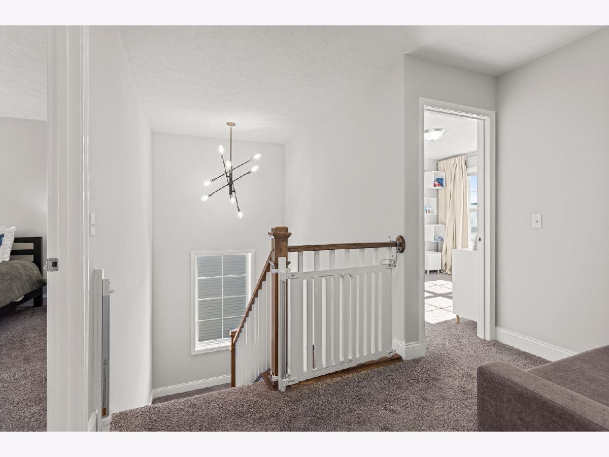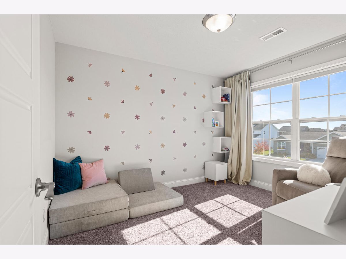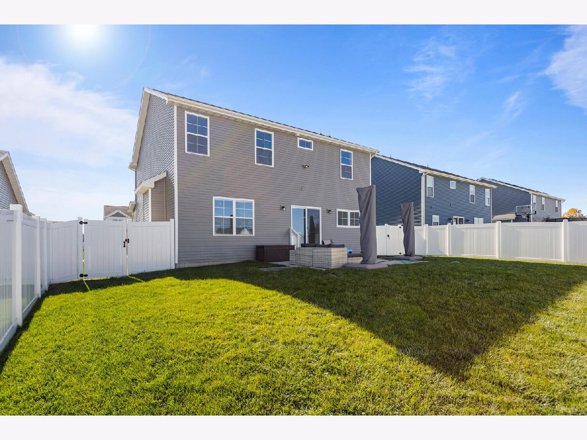 Welcome to this stunning 2021 built home that still feels brand new! Immaculate condition! Step inside to find a bright, open floor plan filled with natural light. The spacious kitchen features sleek quartz countertops, stainless steel appliances, and two large windows above the sink overlooking the fenced backyard. Plus a walk in pantry! A cozy gas fireplace anchors the living area, creating the perfect space for relaxing or entertaining. Rounding out the first floor is a flex room that could be used as an office, playroom or second living room. Upstairs, you'll find a convenient laundry room complete with a sink and linen closet, along with generously sized bedrooms. The primary suite offers a beautiful retreat with a custom walk-in closet and a spa like bathroom feature dual sinks and double shower heads. The unfinished basement provides endless possibilities for future expansion, space for a family room, bedroom and bathroom. Outside, enjoy a fenced yard and an unbeatable location less than a block from the neighborhood park with tennis courts, basketball court, walking path and playground!
