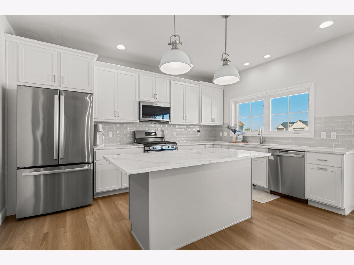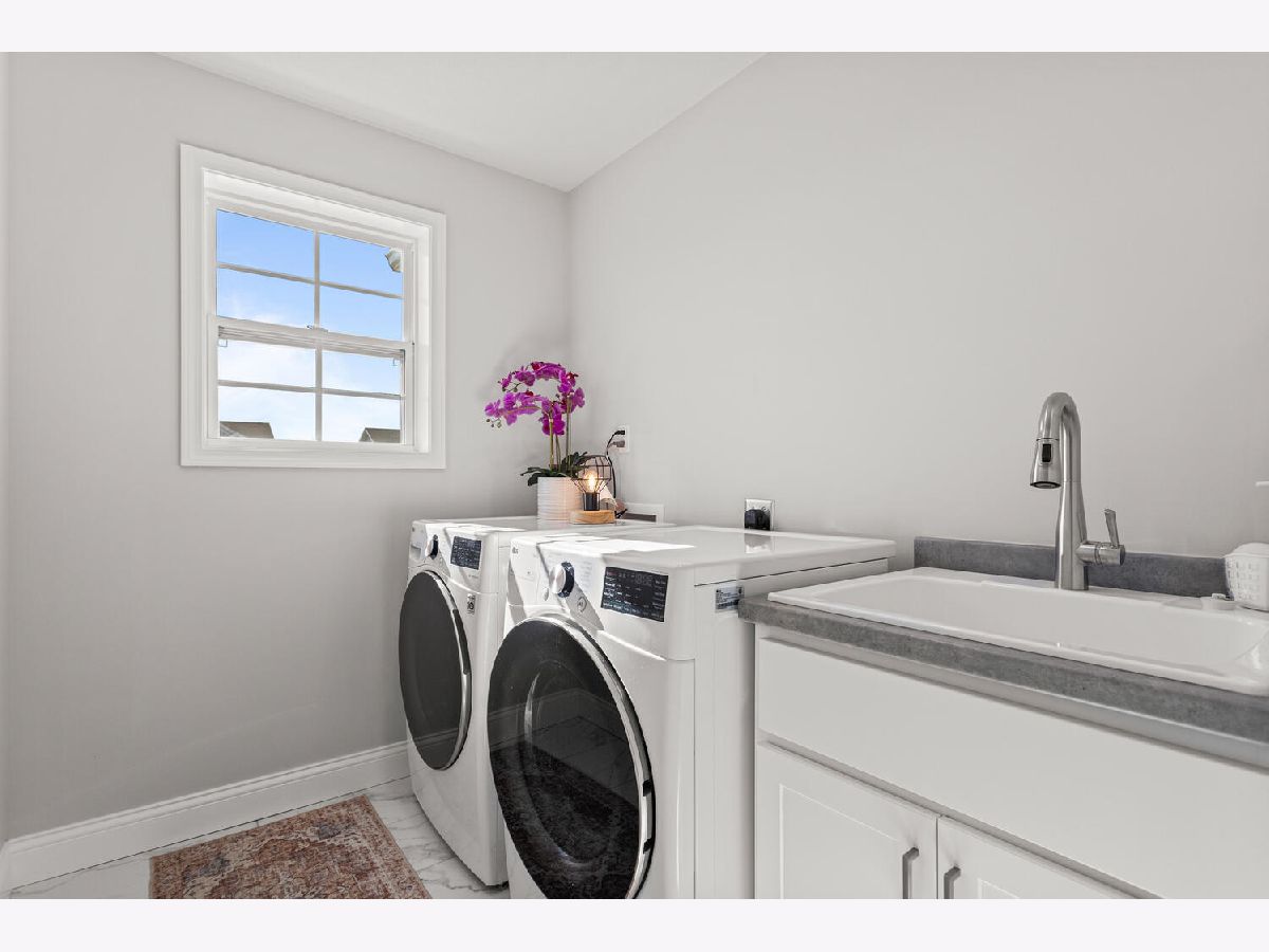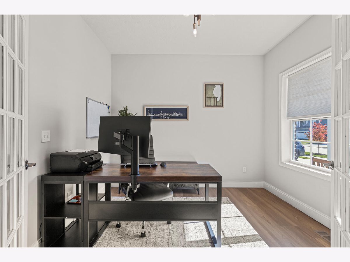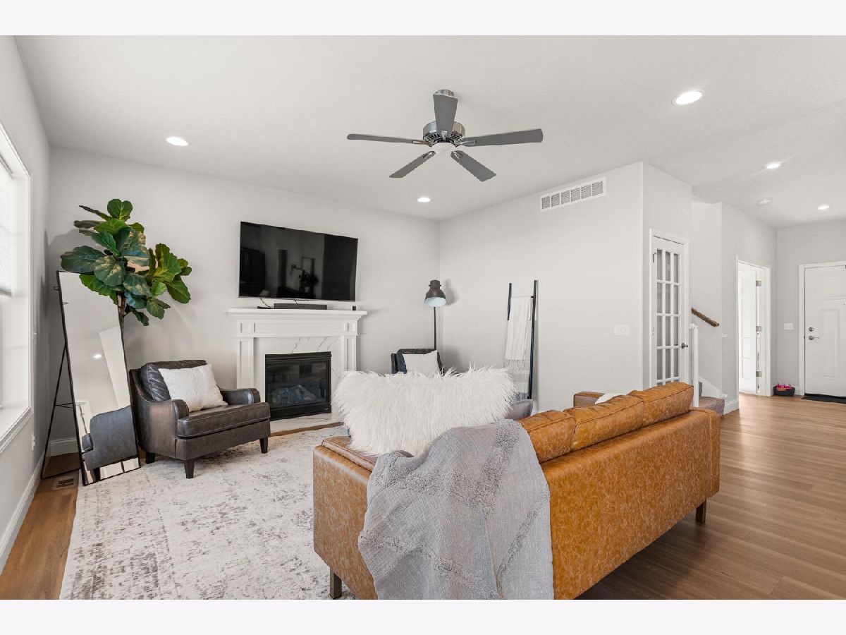 Welcome to this stunning 2021 built home that still feels brand new! Immaculate condition! Step inside to find a bright, open floor plan filled with natural light. The spacious kitchen features sleek quartz countertops, stainless steel appliances, and two large windows above the sink overlooking the fenced backyard. Plus a walk in pantry! A cozy gas fireplace anchors the living area, creating the perfect space for relaxing or entertaining. Rounding out the first floor is a flex room that could be used as an office, playroom or second living room. Upstairs, you'll find a convenient laundry room complete with a sink and linen closet, along with generously sized bedrooms. The primary suite offers a beautiful retreat with a custom walk-in closet and a spa like bathroom feature dual sinks and double shower heads. The unfinished basement provides endless possibilities for future expansion, space for a family room, bedroom and bathroom. Outside, enjoy a fenced yard and an unbeatable location less than a block from the neighborhood park with tennis courts, basketball court, walking path and playground!