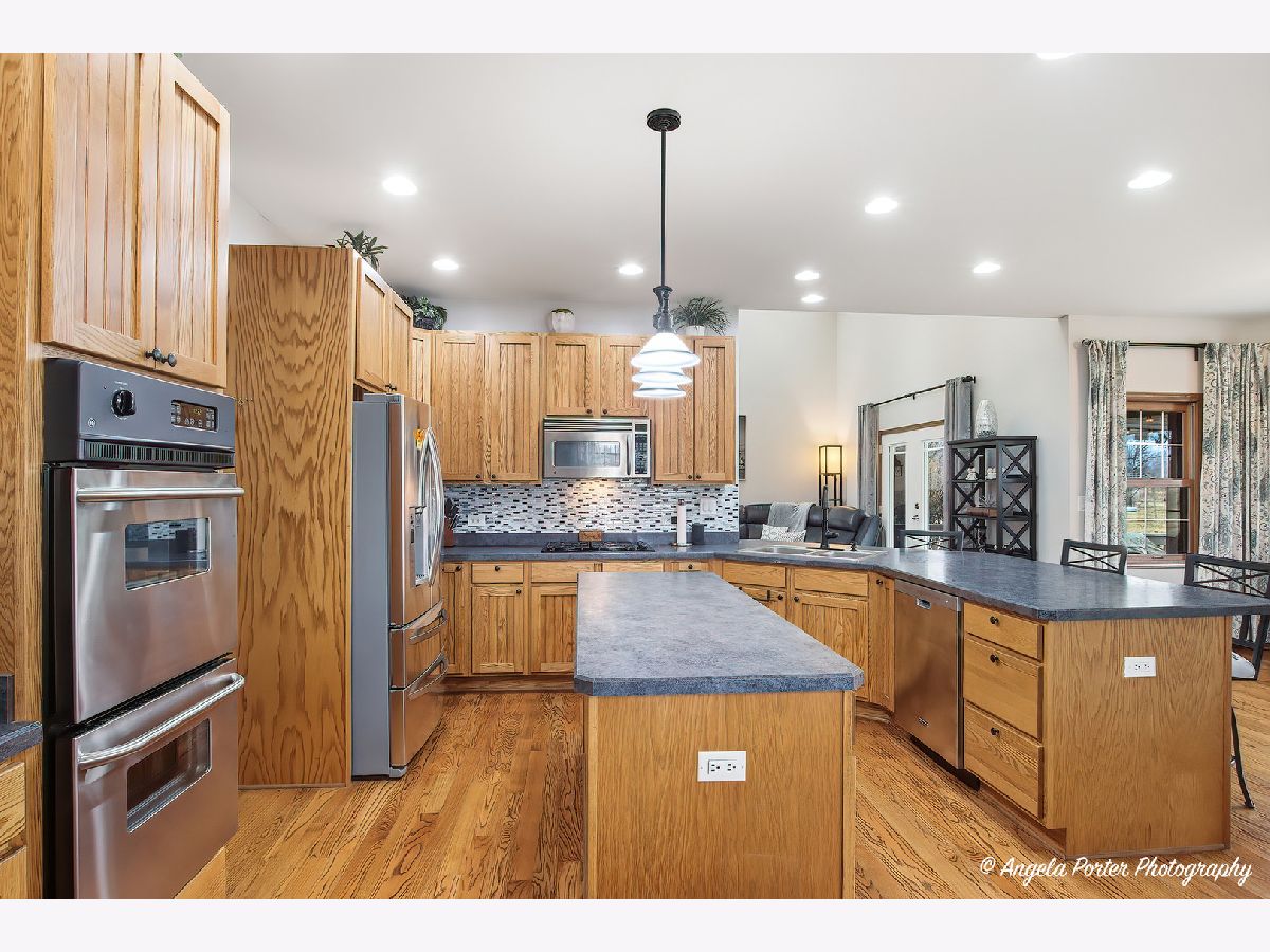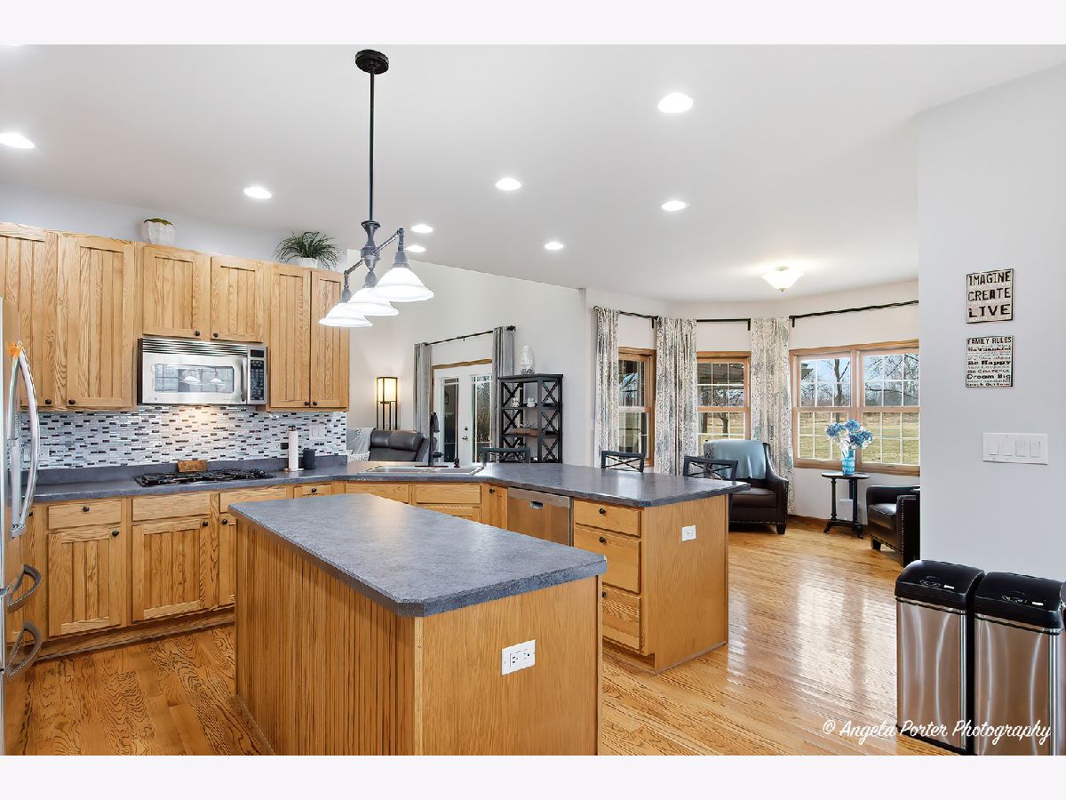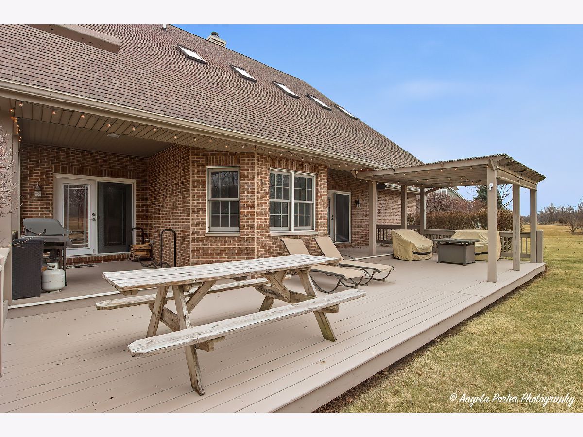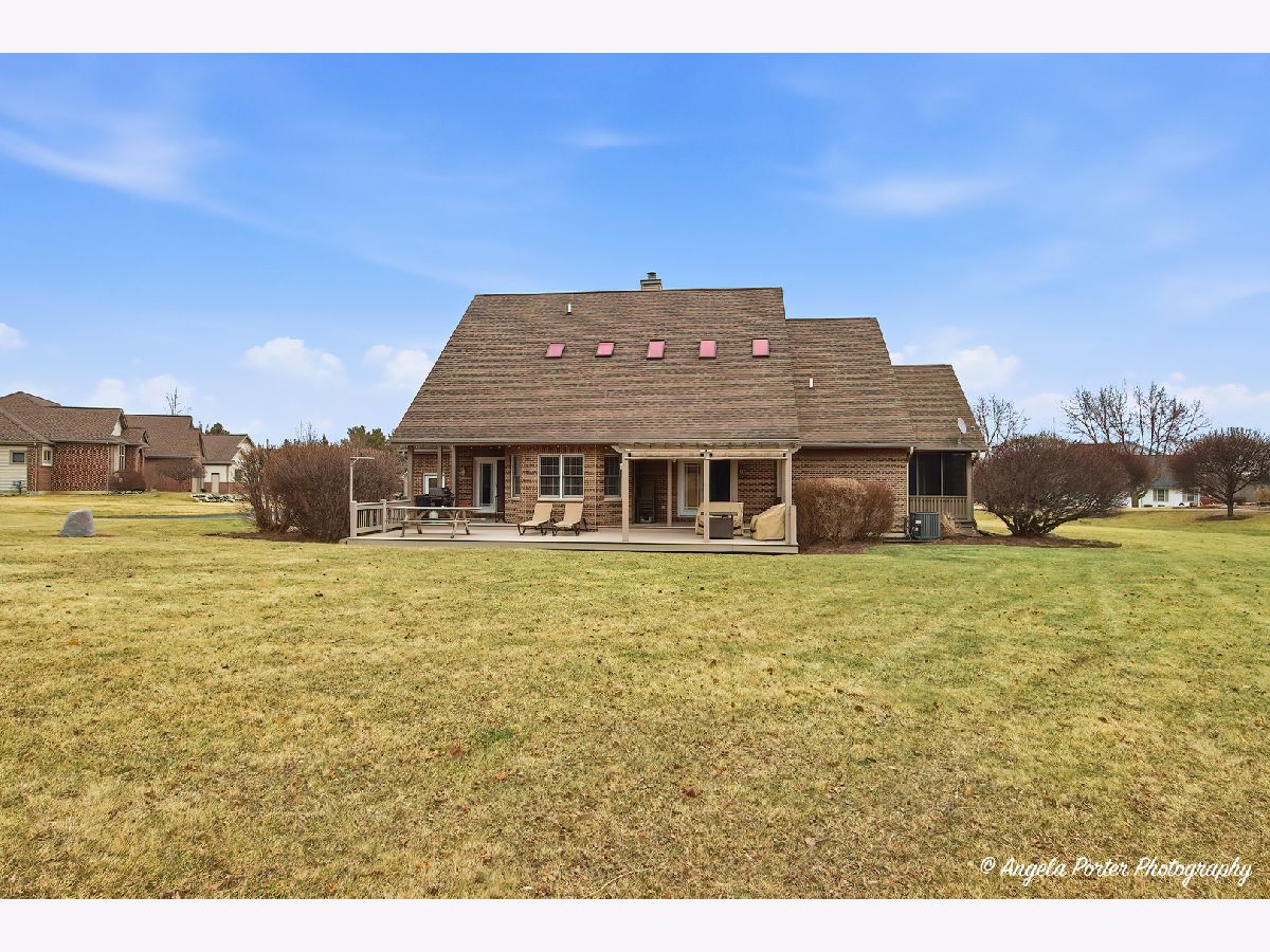 This custom-built Crystal Lake home sits on just over an acre at the end of a quiet cul-de-sac, with the fairways of Prairie Isle Golf Course stretching across the back of the property-a view that makes every morning feel a little more spacious. The home has three bedrooms and three and a half bathrooms across a thoughtfully designed layout. Hardwood floors run some of the first floor, and the open-concept kitchen is the natural center of the home. The cabinetry is handmade in central Wisconsin-a level of craftsmanship simply not found in production builds-and a large island provides generous counter space for cooking and gathering. The kitchen flows directly into the main living areas, keeping the space connected and social. Out front, a wraparound porch sets the character of this property. Out back, a large deck with pergola overlooks the golf course, creating a seamless transition between indoor and outdoor living. The primary suite is genuinely its own world. It includes a sitting area, a large walk-in closet, and an en suite bathroom with dual sinks, a separate shower, and a soaker tub. What makes it truly distinctive is the private screened-in area accessible only from the suite-a quiet outdoor retreat for morning coffee or evening downtime without leaving your personal space. Upstairs, two additional bedrooms share a full bath, and a bonus area offers the flexibility to serve as a home office, reading room, or hobby space. The nine-foot poured basement is unfinished and includes a full bath and generous storage areas-solid bones ready for future expansion or exceptional utility as-is. The three-car side-load garage keeps the curb appeal clean and connects directly to the interior. From the lot position backing the golf course to the handcrafted cabinet work, every detail here reflects a home built with real intention. Dream today!