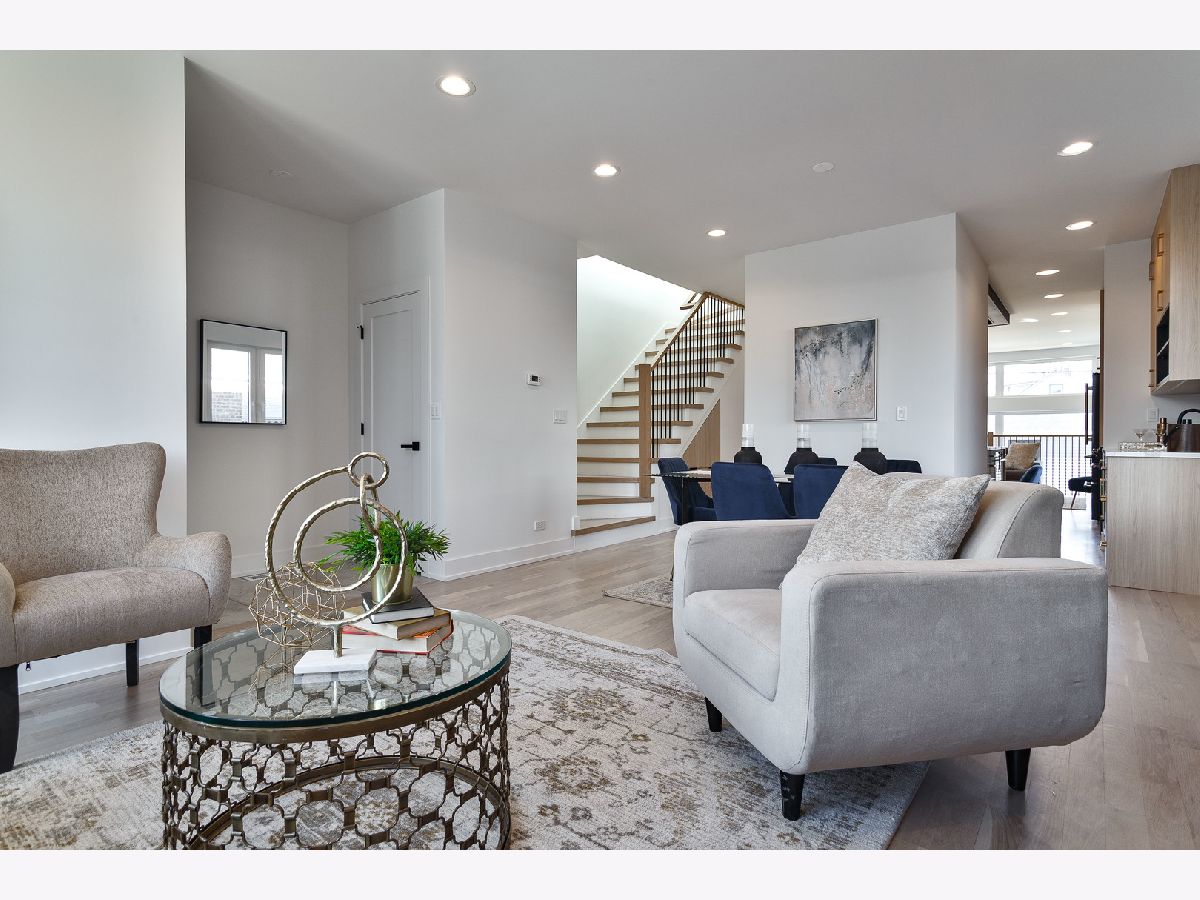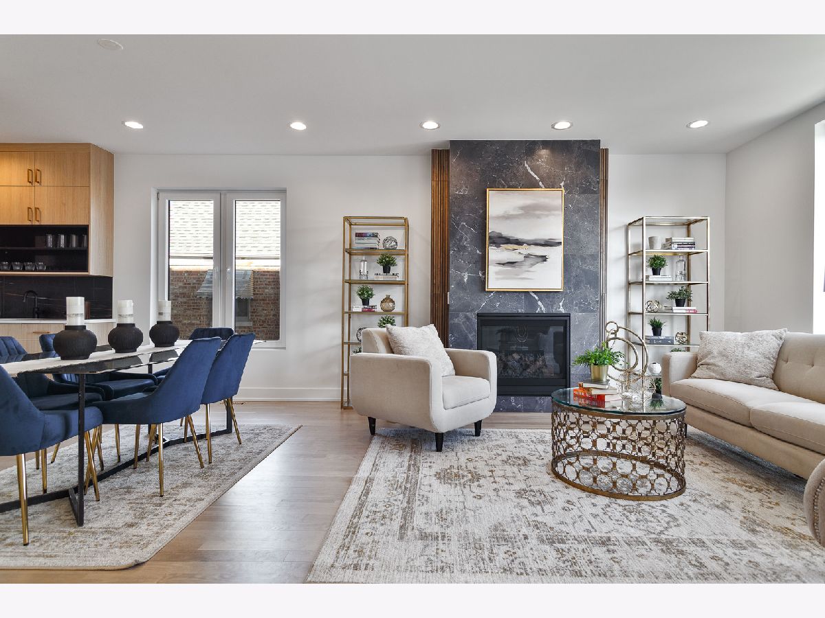 Contemporary 4 bedroom, 3.1 bath new construction single-family home on an extra wide lot. Spacious floor plan featuring design forward interiors. Open concept living/dining room with gas fireplace, floor to ceiling windows, and beautiful oak hardwood flooring. Entertainer's kitchen with modern flat panel cabinetry, quartz countertops, peninsula with bar seating, butler pantry and walk-in and pantry. Adjoining family room with exit to backyard patio. Primary suite featuring 2 WIC's, and private bath with frameless glass shower and large vanity with dual sinks. Two additional bedrooms, guest bath with dual sinks, tub and separate shower, and laundry with washer/dryer, cabinetry and sink complete the upper level. Finished lower level with nice ceiling heights and good natural light includes a spacious recreation room with wet bar, 4th bedroom, full bath with shower, second laundry hook-up, storage, and utilities. Enclosed yard with back patio plus detached two-car garage. Close to restaurants, entertainment, shopping, parks, nature preserves, golf courses, and other conveniences.