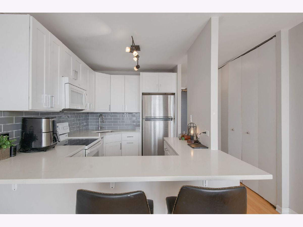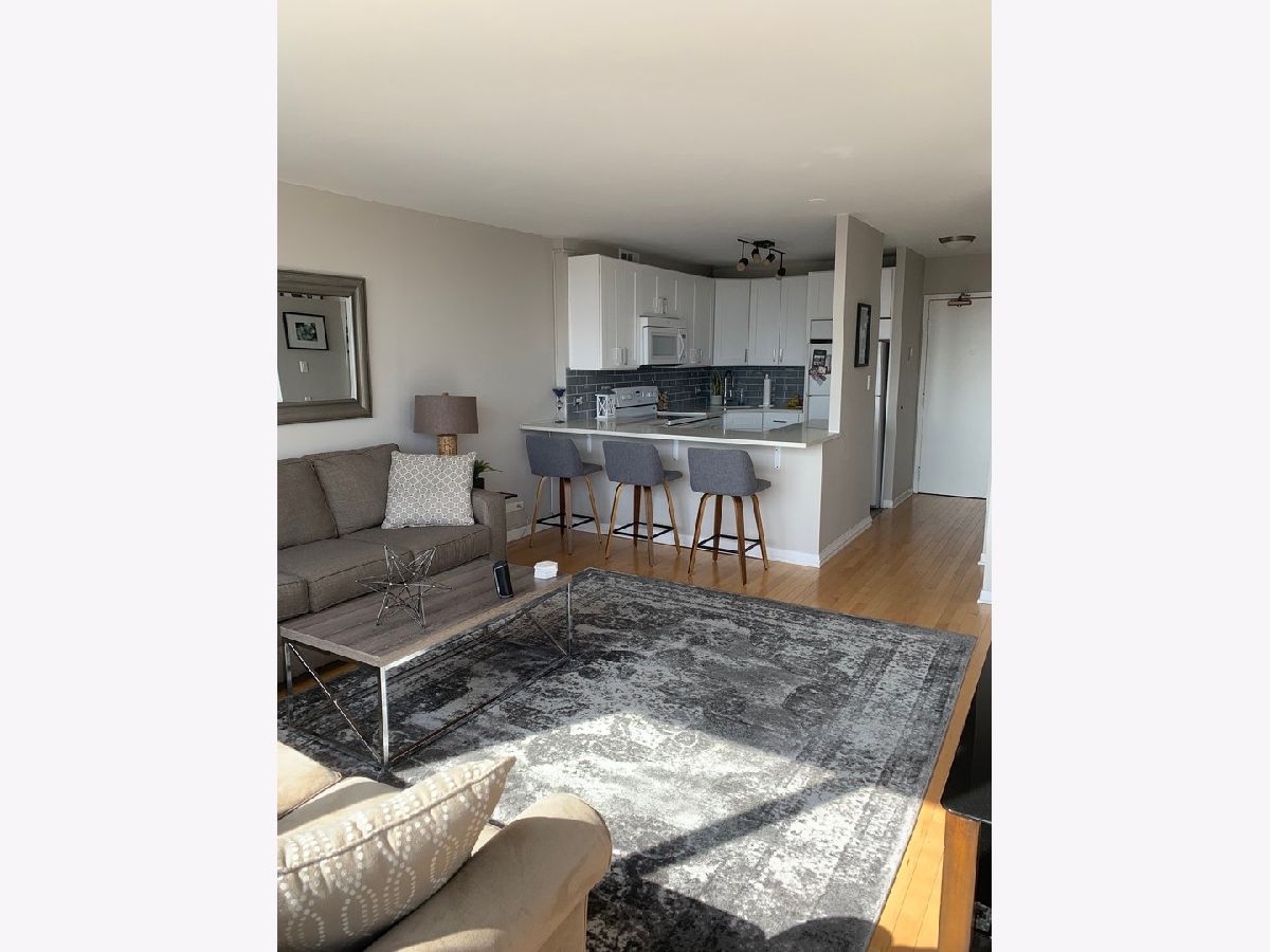 Enjoy full amenity living in this bright and spacious Junior one bedroom unit. Fully updated kitchen offers quartz countertops with eat-in breakfast bar, sleek white cabinetry and stylish backsplash. The open layout offers hardwood floors throughout, stunning south facing views of the skyline and Wrigley field and has just been freshly painted throughout. Updated bathroom also features quartz countertops and a glass enclosed shower. Large closets throughout, the epitome of move-in ready. Valet rental parking available through the building. Building features include outdoor pool with cabanas, grills and herb garden, tennis court, basketball court, dog run, gym, 24hr door staff, package receiving and more.
