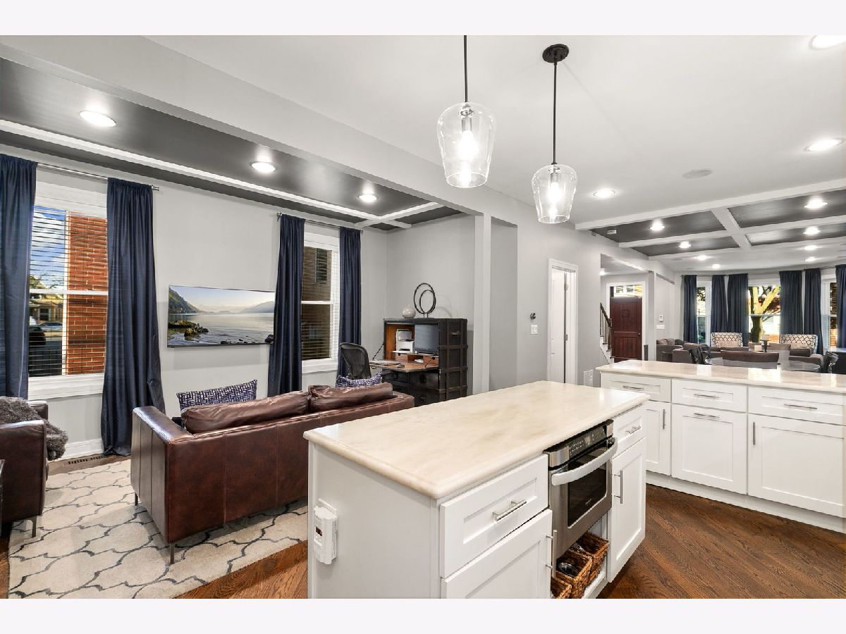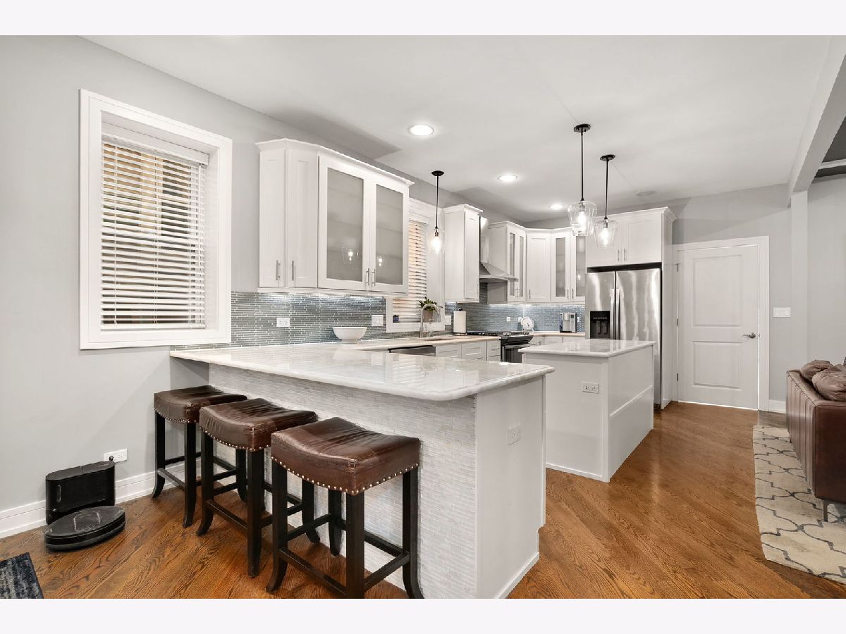 Step into this stunning all-brick, fully rehabbed home on a picturesque tree-lined street in the heart of Irving Park. The open floor plan features a chef's kitchen with a large island, 42" white cabinetry, marble countertops, stainless steel appliances, and a stylish backsplash that flows seamlessly into the living and dining areas with elegant coffered ceilings. Upstairs, the spacious primary suite boasts a custom walk-in closet and a spa-like bath with a walk-in shower, freestanding soaking tub, dual vanities, and heated floors. Two additional bedrooms and a full bathroom complete this level. The lower level offers a large recreation/family room, a full bathroom, and a fourth bedroom-perfect for guests, a home office or a gym. Enjoy the outdoors in your private urban oasis with a custom paver patio and beautifully landscaped yard. Additional highlights include a rare 3-car garage with side entrance and tall ceilings, deep casement window sills, a mudroom, dual-zone heating and cooling, second floor laundry plus hookups lower level and whole-home sound wiring. Unbeatable location with easy access to public transportation, highways, restaurants, shops, parks, and more!