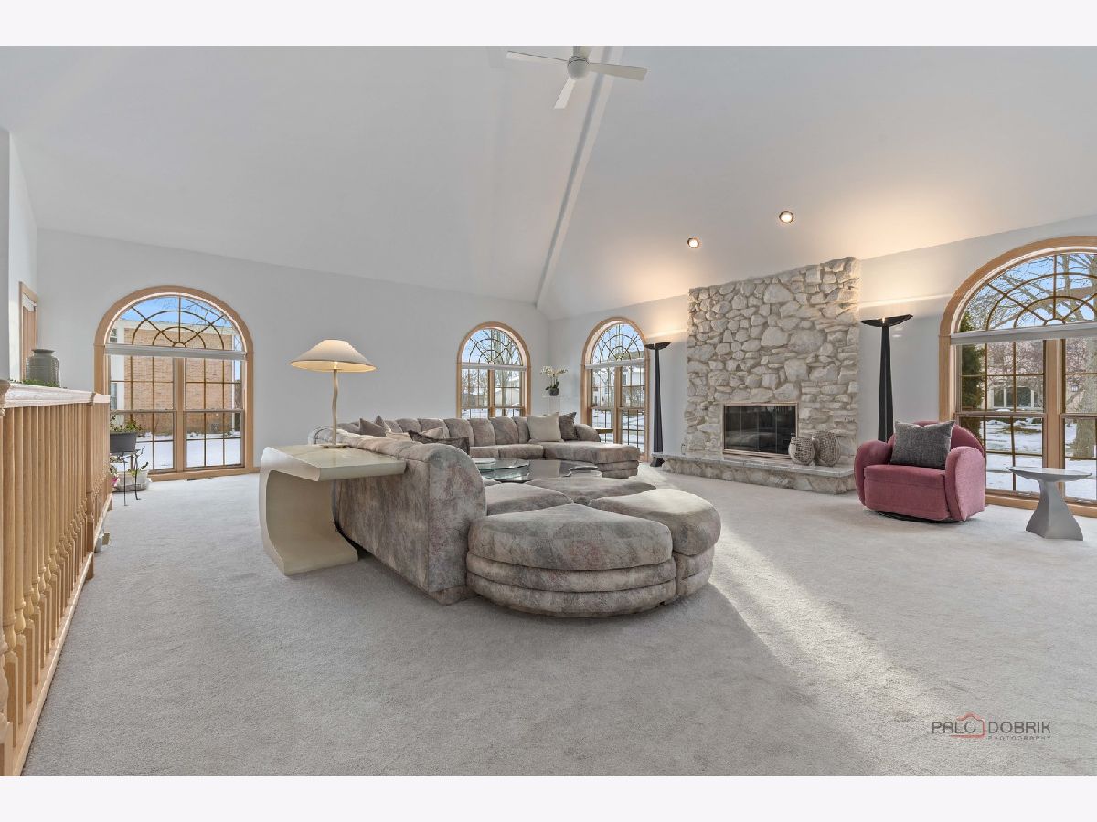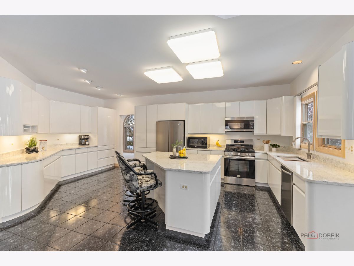 Nestled within the highly sought-after and award-winning Stevenson High School district, this beautifully appointed 5-bedroom, 3.1-bath home offers an exceptional blend of comfort, style, and functionality. From the moment you step inside, the impressive two-story foyer welcomes you with abundant natural light and a sense of spaciousness that flows throughout the home. To the left of the foyer, a spacious living room invites you to unwind beside a cozy fireplace, creating a warm and inviting atmosphere. This room seamlessly transitions into the expansive formal dining room, an ideal setting for hosting dinner parties, holiday celebrations, or intimate gatherings. The heart of the home lies in the well-equipped kitchen, designed to meet the needs of everyday living and culinary creativity. It features an island with a breakfast bar for casual dining, brand-new stainless-steel appliances, brand-new quartz countertops, and an abundance of cabinetry offering ample storage. The bright eating area, surrounded by windows, fills the space with warm natural light and grants direct access to the patio, making outdoor dining and entertaining simple and convenient. Adjacent to the kitchen, the cozy yet spacious family room serves as a comfortable retreat for relaxing evenings. Highlighted by a beautiful fireplace, this room is perfect for gathering with loved ones or enjoying a quiet night at home. The main level is completed by a private office ideal for remote work, study, or creative pursuits. A well-appointed laundry room with direct garage access adds everyday convenience, while a stylish half bath rounds out the main floor. Upstairs, the serene primary suite offers a luxurious escape, featuring a generous sitting area perfect for lounging or unwinding with a book. The walk-in closet provides ample space for wardrobe organization, and the ensuite bathroom enhances the retreat with two separate vanities, a soothing soaking tub, a real bidet, and a separate shower for maximum comfort and convenience. Three additional spacious bedrooms, each with its own walk-in closet, provide versatility for family, guests, or hobbies. A full hallway bath serves these bedrooms with ease and functionality. The fully finished lower level expands your living space even further, offering endless possibilities for entertainment and recreation. Highlights include a second full kitchen, a dedicated game area, a large recreation room complete with a wet bar, a full bathroom, and an additional fifth bedroom or an office, exercise area, or hobby space. The brick paver patio includes a long walkway connecting to the garage side door and driveway! Additional standout features include R38 insulation throughout the home and attic for enhanced energy efficiency, as well as UL-listed lightning protection for added peace of mind. Ideally located just minutes from parks, shopping, and restaurants, this home combines comfort, convenience, and exceptional value.