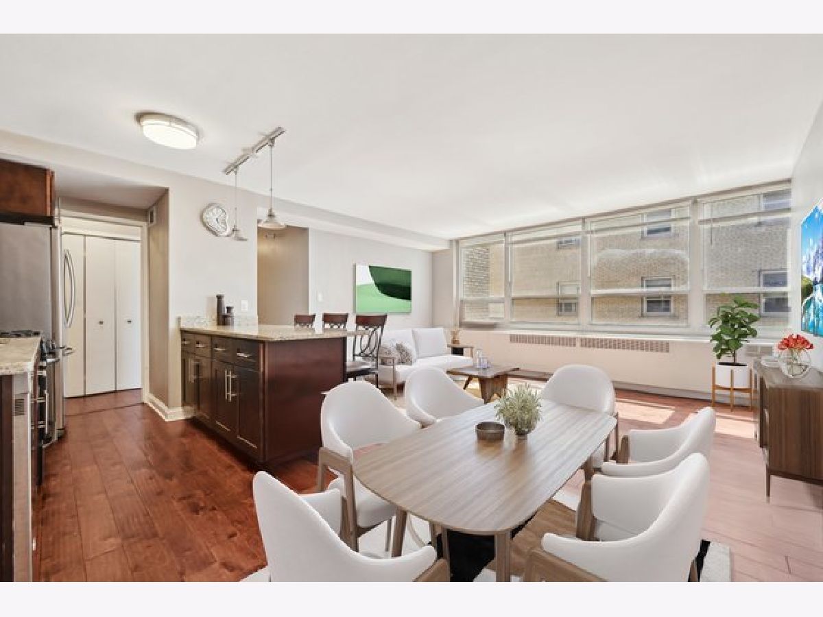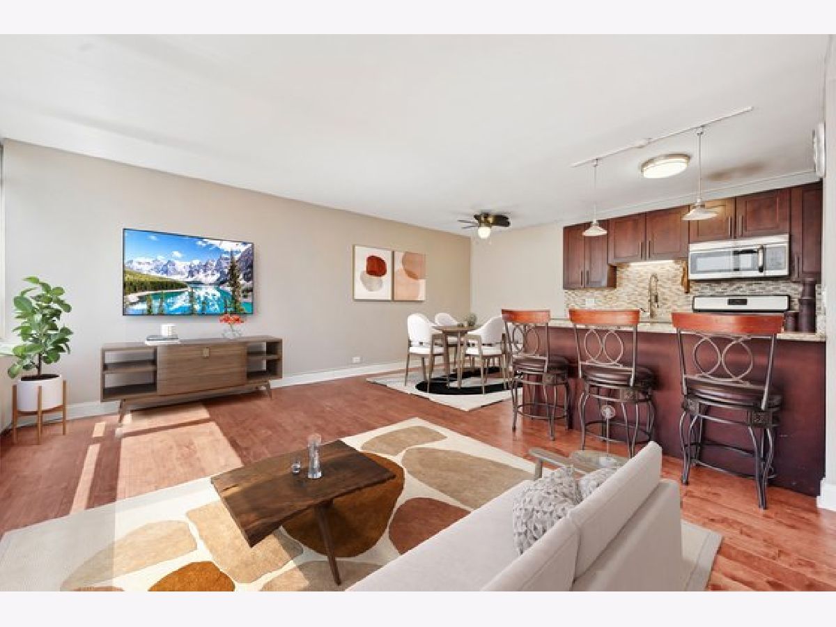 Complete Renovation in 2015 - Still Looks Brand New! Freshly painted in a neutral palette, this 2-bedroom, 1-bath home is move-in ready so you can immediately enjoy all that Lakeview has to offer. The updated kitchen, bathroom, and hardwood floors keep the space modern and fresh.Located just one floor below the 23rd-floor rooftop deck, you'll have easy access to incredible city and lake views, an outdoor patio with grills, fire pits, stylish furniture, and a weather-activated pergola-all right in your building (no need to transfer between towers).This full amenity building has recently added a brand-new fitness center and is completing further rooftop enhancements. The HOA covers it all-electric, heat, air, gas, water, trash, cable, and internet-making this a truly stress-free lifestyle. Enjoy unbeatable convenience with the Express Bus right out your door, or walk to Wrigley Field, the Lake, top restaurants, shopping, and more.