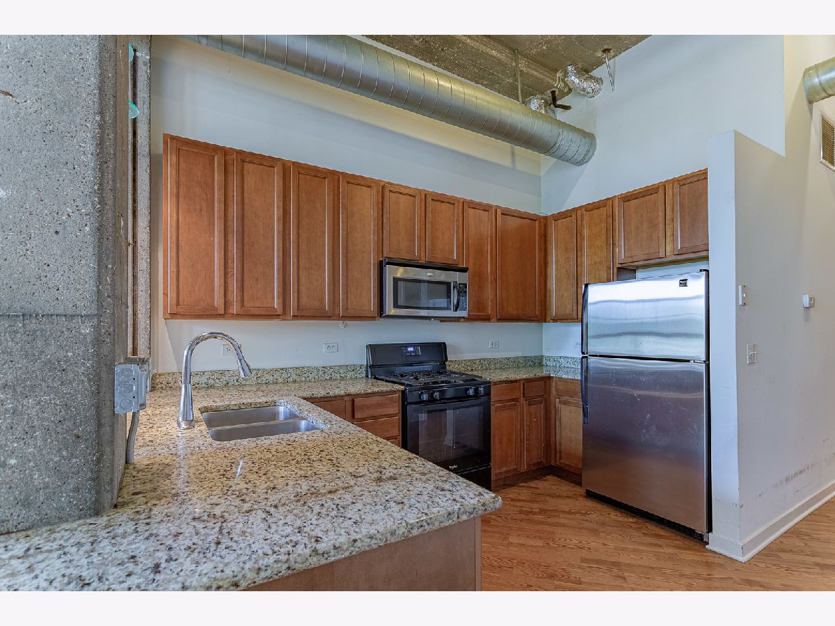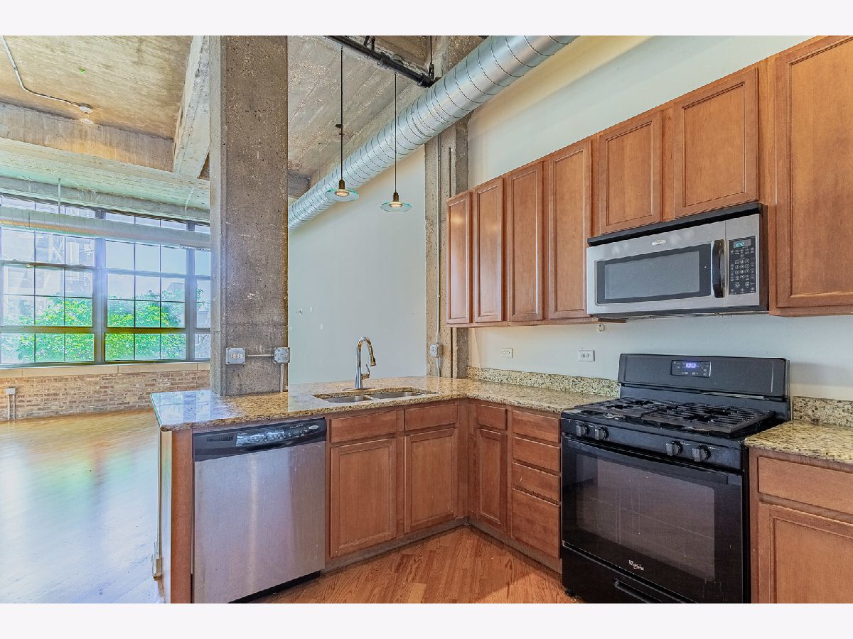 Stunning condo in the historic Shoemaker Lofts building in Avondale! Kitchen features: stainless steel appliances, 42" cherry stained cabinetry, granite counter tops & island. Spacious bathroom features a dual vanity sink, storage and a soaking tub. Hardwood floors throughout, exposed brick walls, 14 foot concrete ceilings and in-unit washer & dryer. Indoor heated garage parking space included! Building amenities include doorman, fitness center, secure package delivery, elevator, Community party room! Short walk or bus to Belmont Blue Line, Logan Square, Old Irving Park and more! Hurry, this one won't last. *ATTENTION INVESTORS: THIS IS A GREAT OPPORTUNITY FOR IMMEDIATE CASH FLOW!