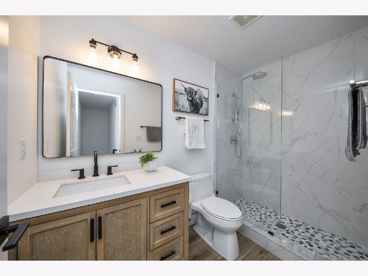 Thoughtfully renovated with a remarkable level of detail and quality, this Mill Creek Village home stands apart with a long list of high-end improvements that elevate both style and everyday function. A bright, airy entrance sets the tone, flanked by a formal living room and a beautifully appointed dining room that offer flexibility for both everyday living and gathering. The kitchen has been completely redesigned with a spacious island, new cabinetry with a clean and tailored finish, quartz surfaces that carry seamlessly from countertop to backsplash, and a premium appliance suite including a Viking range and hood. Designed as a natural gathering place, the kitchen opens easily to the adjacent family room and screened porch - an inviting space for morning coffee, relaxed dinners, or evening cocktails. The family room is anchored by a striking vintage Chicago brick accent wall that adds warmth and architectural character to the main living space. Updated flooring runs across the home, complemented by freshly painted walls, ceilings and trim, new baseboards, window coverings, and updated lighting from room to room. Upstairs, the primary suite offers a true retreat with a spa-like bathroom featuring a frameless glass shower, soaking tub, double sink vanity, high-end plumbing fixtures (including a Toto toilet), and tilework that carries from floor to wall. The additional bathrooms have been fully remodeled, and custom closet organizers in each bedroom add everyday ease. The laundry room has been thoughtfully redesigned with cabinetry, quartz counters, and a newer washer and dryer. Additional improvements include Monte Carlo ceiling fans, a smart thermostat, Ring doorbell, and updated exterior lighting. Outside, the improvements continue. The front yard has been professionally landscaped and enhanced with custom herringbone pavers leading from the front steps to the sidewalk, while the covered front porch enjoys views of the golf course. The home also features new siding, rain gutters with stainless steel guards, a recently replaced garage door and opener, and a private fenced backyard that offers just the right amount of outdoor space. Mill Creek's Village homes offer maintenance-free living, with snow removal and lawn care included. Residents enjoy access to golf, tennis, walking trails, forest preserve space, and a community pool with optional membership.