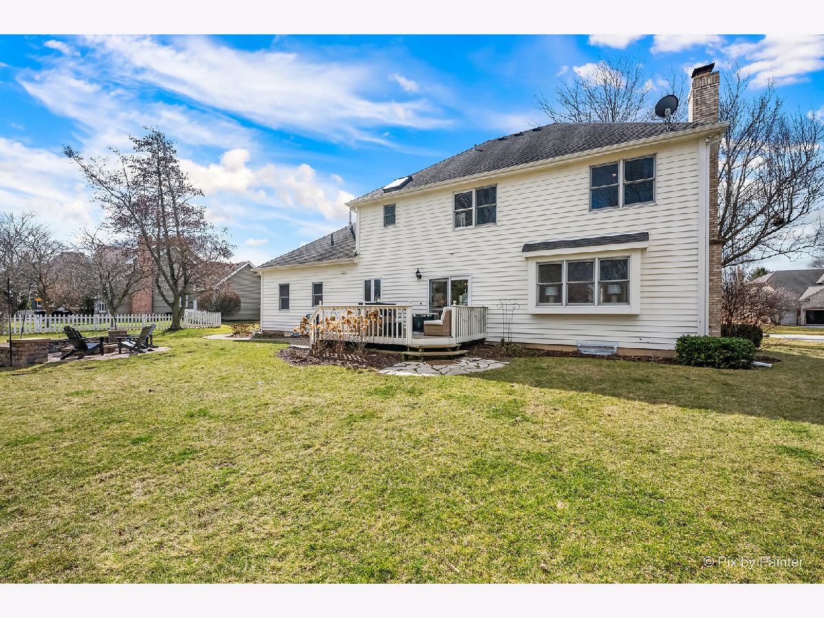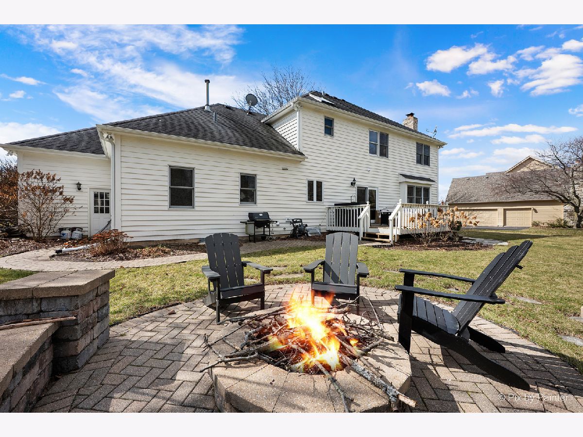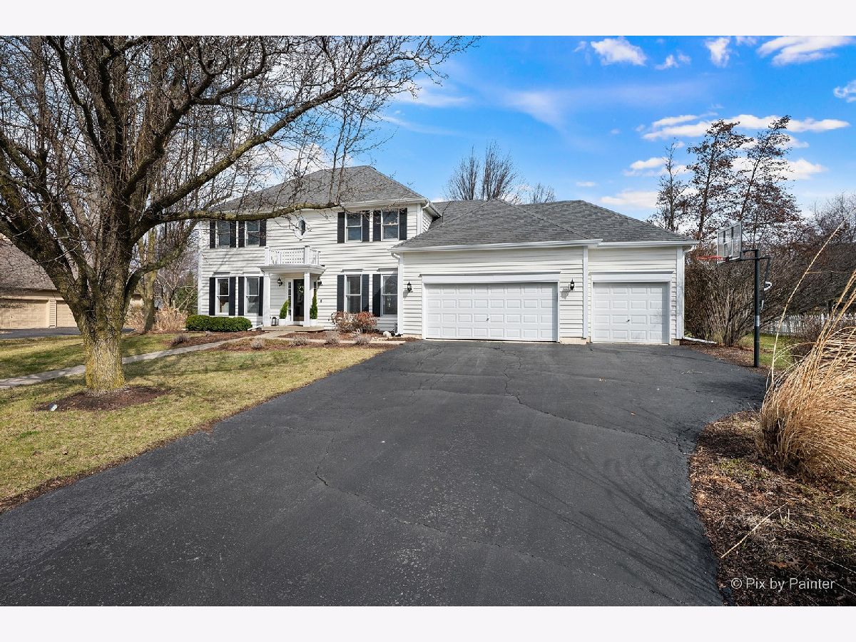 Beautifully updated 4-BEDROOM, 2.1-BATH home with 3-CAR ATTACHED GARAGE in FOX MILL - A wonderful St. Charles neighborhood with top rated schools. This home sits on an extra-large lot within walking distance to Bell Graham Elementary. Walk up to the covered front porch into the FOYER where the HARDWOOD FLOORS begin and continue throughout most of the main level. The Foyer is flanked by the Sunny LIVING ROOM and Formal DINING ROOM. You enjoy the hours spent in the cozy FAMILY ROOM with Brick FIREPLACE, and a Bump Out Window overlooking the Back Yard. The Family Room is connected to the EAT-IN KITCHEN that features Corian Counters, Stainless Appliances, ample cabinetry, Closet Pantry, Center Island w/seating and a Breakfast Table area with Slider to Back Deck and Yard. Step down the hall and you'll find a spacious FIRST FLOOR LAUNDRY with Newer Washer & Dryer. The First Floor also includes a SPACIOUS OFFICE/5th BEDROOM with Closet and Views of Back Yard. Step Upstairs and you'll find the perfect PRIMARY SUITE featuring a HUGE WALK-IN CLOSET, a REMODELED BATH with Double Vanity, Whirlpool Tub, Separate Glass-Enclosed Walk-in Shower, and Skylight. The HALL BATH has also been beautifully updated with newer lighting, Granite Double Sink Vanity, Ceramic Tile Floor and Tiled Tub Surround. SPACIOUS BEDROOMS 2-3-4 All have Ceiling Fans and Ample Closet Space. The FINISHED BASEMENT adds exceptional living space with a L-Shaped Built-in WET BAR, 2nd FAMILY ROOM, EXERCISE ROOM, GAME ROOM and Several Storage Areas. Enjoy mature landscaping and a prime location within walking distance to the elementary school and neighborhood clubhouse with pool. FOX MILL Subdivision features neighborhood parks and trails and is also convenient to the OTTER COVE AQUATIC PARK, Shopping, and Dining. Recent Updates include: FURNACE & AC (2025), Ducts Cleaned (2025), Dishwasher (2025) Washer & Dryer (2025), Exterior Power Washed & Trim Painted (2026).