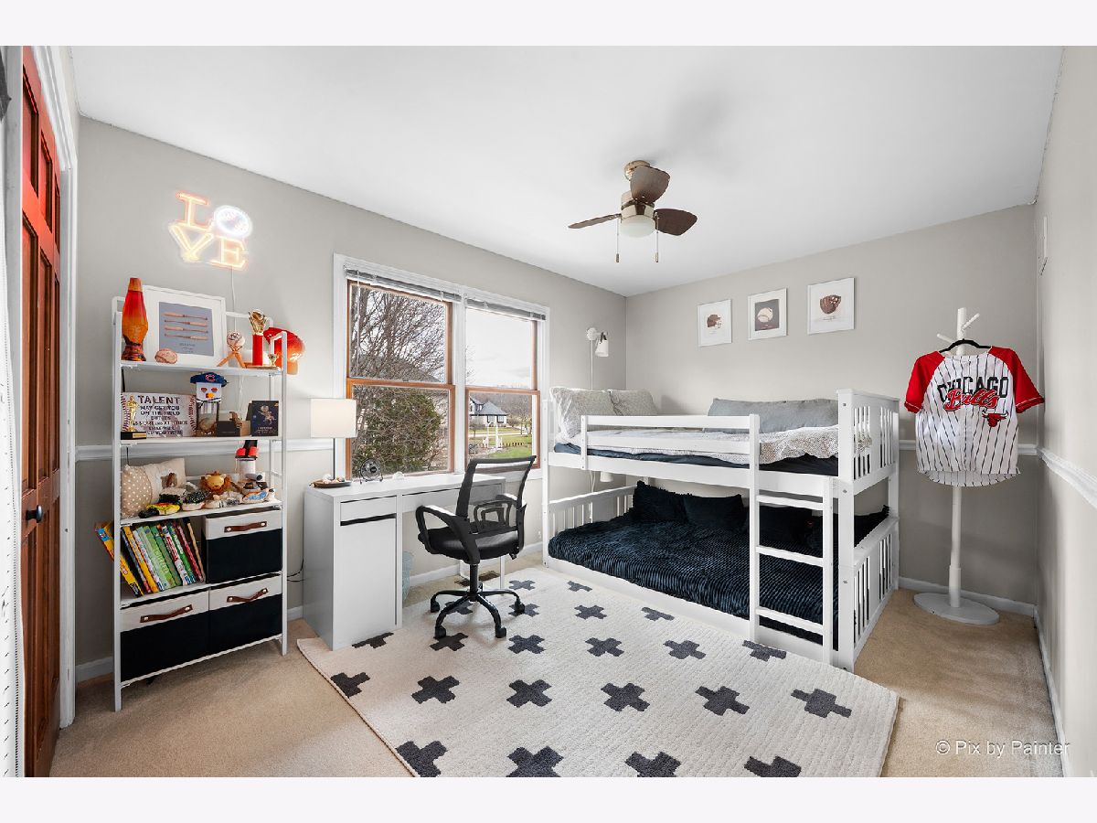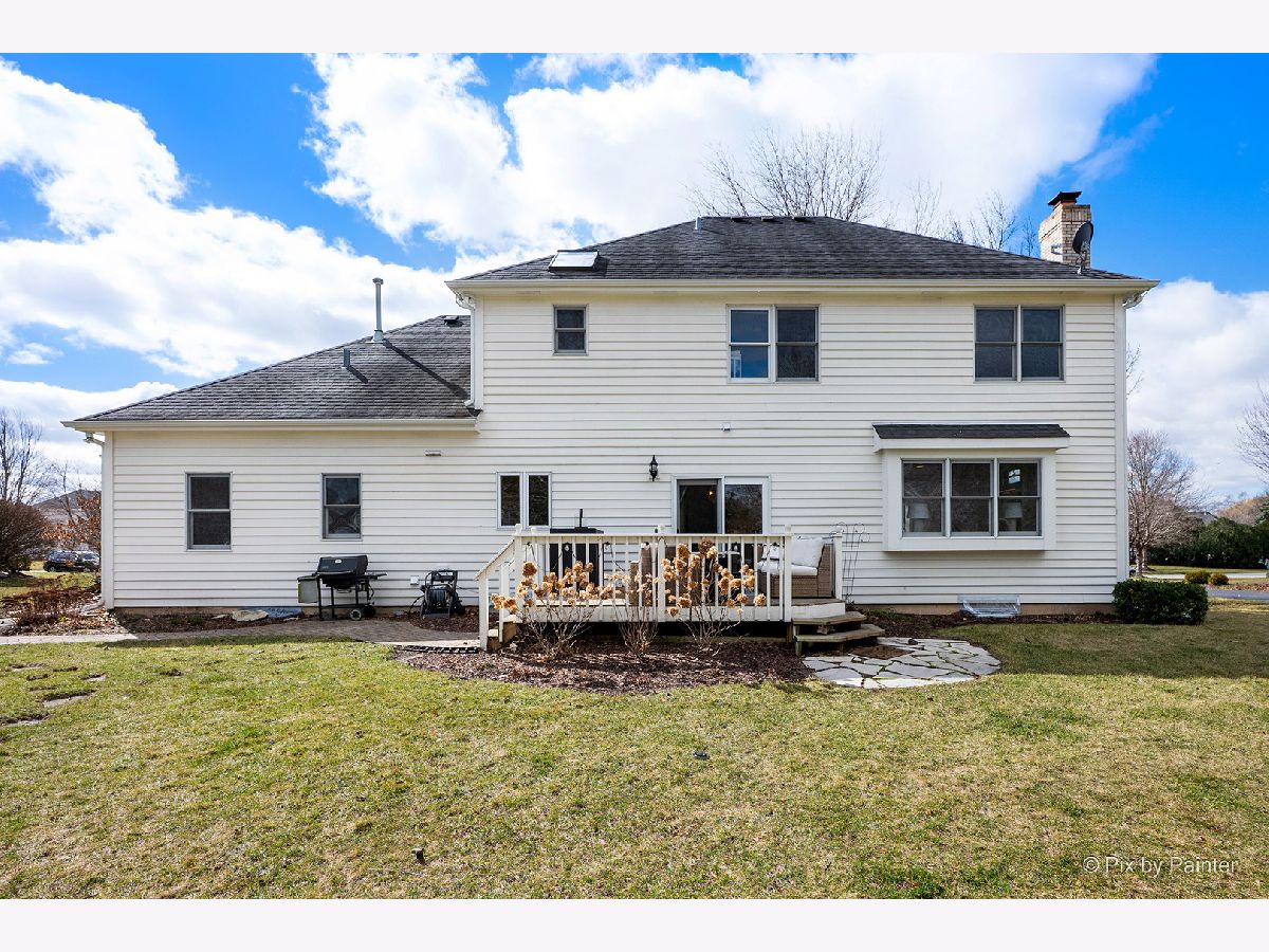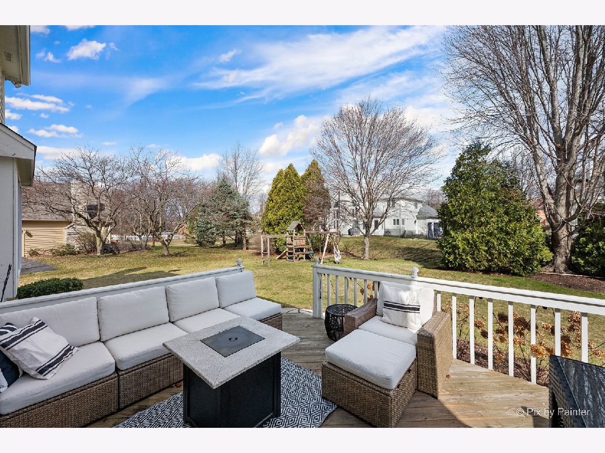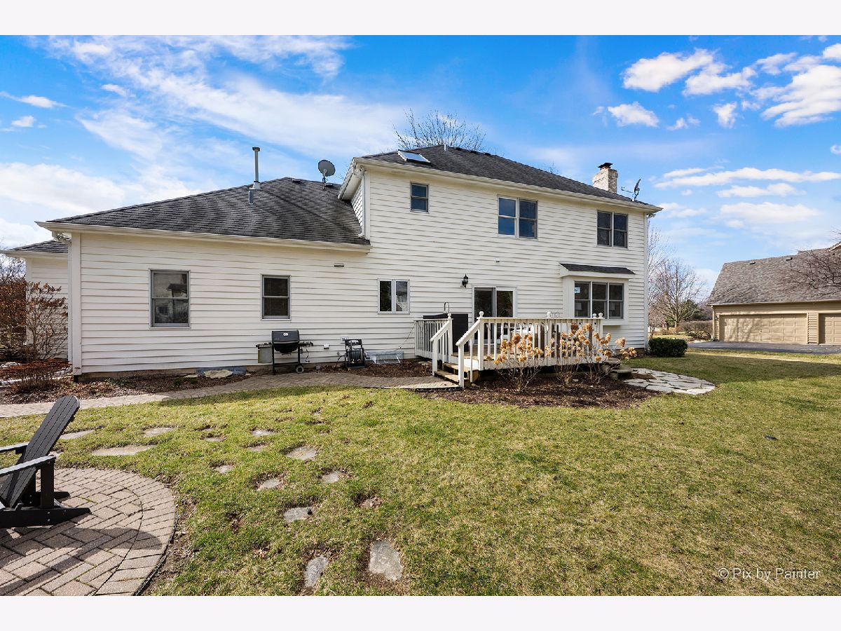Beautifully updated 4-BEDROOM, 2.1-BATH home with 3-CAR ATTACHED GARAGE in FOX MILL - A wonderful St. Charles neighborhood with top rated schools. This home sits on an extra-large lot within walking distance to Bell Graham Elementary. Walk up to the covered front porch into the FOYER where the HARDWOOD FLOORS begin and continue throughout most of the main level. The Foyer is flanked by the Sunny LIVING ROOM and Formal DINING ROOM. You enjoy the hours spent in the cozy FAMILY ROOM with Brick FIREPLACE, and a Bump Out Window overlooking the Back Yard. The Family Room is connected to the EAT-IN KITCHEN that features Corian Counters, Stainless Appliances, ample cabinetry, Closet Pantry, Center Island w/seating and a Breakfast Table area with Slider to Back Deck and Yard. Step down the hall and you'll find a spacious FIRST FLOOR LAUNDRY with Newer Washer & Dryer. The First Floor also includes a SPACIOUS OFFICE/5th BEDROOM with Closet and Views of Back Yard. Step Upstairs and you'll find the perfect PRIMARY SUITE featuring a HUGE WALK-IN CLOSET, a REMODELED BATH with Double Vanity, Whirlpool Tub, Separate Glass-Enclosed Walk-in Shower, and Skylight. The HALL BATH has also been beautifully updated with newer lighting, Granite Double Sink Vanity, Ceramic Tile Floor and Tiled Tub Surround. SPACIOUS BEDROOMS 2-3-4 All have Ceiling Fans and Ample Closet Space. The FINISHED BASEMENT adds exceptional living space with a L-Shaped Built-in WET BAR, 2nd FAMILY ROOM, EXERCISE ROOM, GAME ROOM and Several Storage Areas. Enjoy mature landscaping and a prime location within walking distance to the elementary school and neighborhood clubhouse with pool. FOX MILL Subdivision features neighborhood parks and trails and is also convenient to the OTTER COVE AQUATIC PARK, Shopping, and Dining. Recent Updates include: FURNACE & AC (2025), Ducts Cleaned (2025), Dishwasher (2025) Washer & Dryer (2025), Exterior Power Washed & Trim Painted (2026).