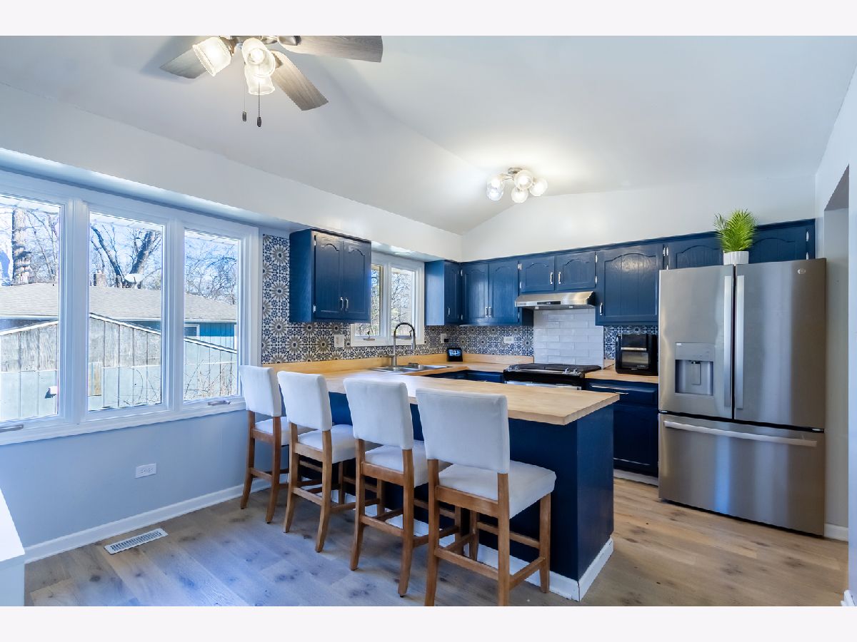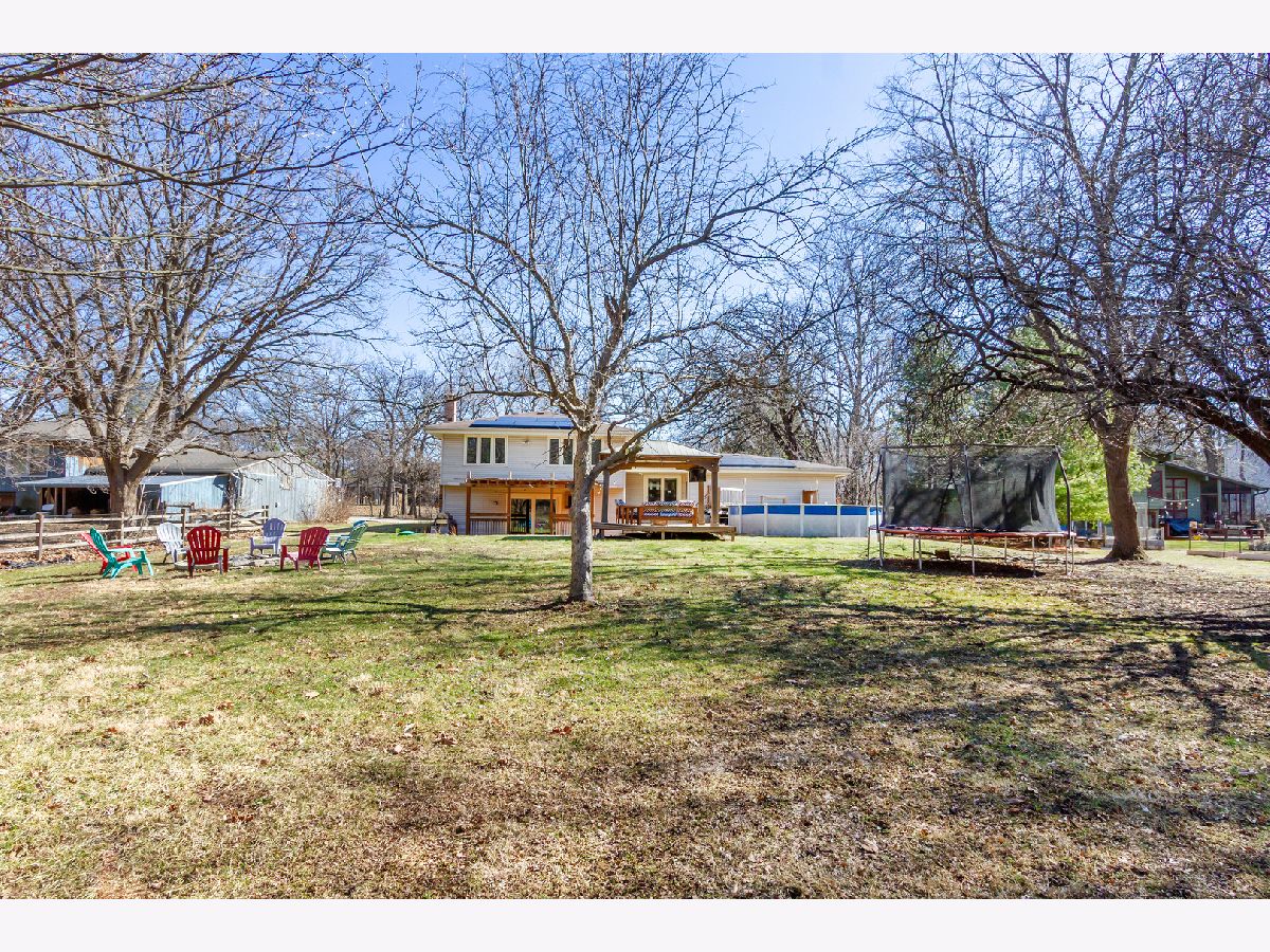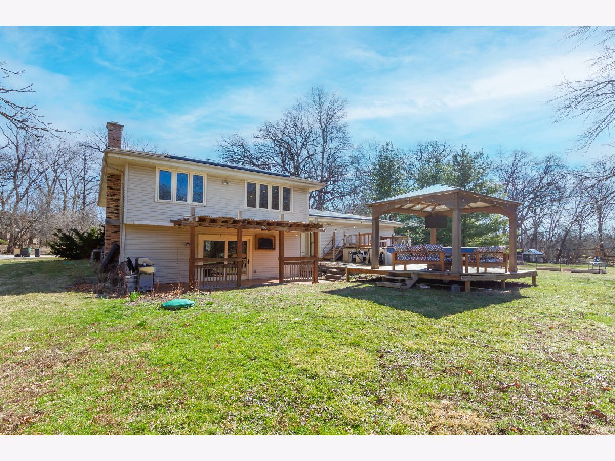 Well maintained 4-bedroom raised ranch situated on over a half-acre cul-de-sac lot in desirable Wayne Oaks in West Chicago. The inviting foyer with cathedral ceilings leads up to a large living room featuring newer hardwood flooring, recessed lighting, and a large picture window that fills the space with natural light, opening to a formal dining area with a pass-through to the kitchen-perfect for entertaining. The kitchen boasts new stainless steel appliances, a tile backsplash, and a peninsula/breakfast bar. The primary bedroom includes a walk-in closet and an en-suite bath with a custom shower, while two additional bedrooms and a full hall bath complete the main level. The finished walk-out basement adds even more living space with a spacious family room featuring a brick fireplace and slider to the outdoor area, a fourth bedroom for guests, a full bath, bonus/flex space ideal for a home office, and an exercise/laundry area. The picturesque, private wooded yard backing to a stream offers a true outdoor retreat with a deck and pergola, a second covered deck, an above-ground pool with surrounding deck, fire pit area, and a storage shed. Dual-zoned heating and cooling with newer furnaces and one newer A/C add comfort and efficiency. A prime location near shopping, restaurants, parks, and easy interstate access-plus an incredible backyard setup that's perfect for relaxing, entertaining, and enjoying the outdoors year-round.
