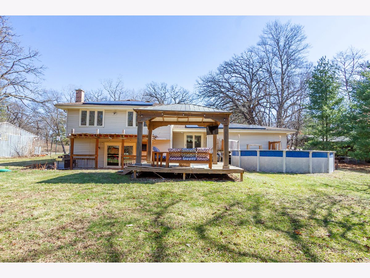 Well maintained 4-bedroom raised ranch situated on over a half-acre cul-de-sac lot in desirable Wayne Oaks in West Chicago. The inviting foyer with cathedral ceilings leads up to a large living room featuring newer hardwood flooring, recessed lighting, and a large picture window that fills the space with natural light, opening to a formal dining area with a pass-through to the kitchen-perfect for entertaining. The kitchen boasts new stainless steel appliances, a tile backsplash, and a peninsula/breakfast bar. The primary bedroom includes a walk-in closet and an en-suite bath with a custom shower, while two additional bedrooms and a full hall bath complete the main level. The finished walk-out basement adds even more living space with a spacious family room featuring a brick fireplace and slider to the outdoor area, a fourth bedroom for guests, a full bath, bonus/flex space ideal for a home office, and an exercise/laundry area. The picturesque, private wooded yard backing to a stream offers a true outdoor retreat with a deck and pergola, a second covered deck, an above-ground pool with surrounding deck, fire pit area, and a storage shed. Dual-zoned heating and cooling with newer furnaces and one newer A/C add comfort and efficiency. A prime location near shopping, restaurants, parks, and easy interstate access-plus an incredible backyard setup that's perfect for relaxing, entertaining, and enjoying the outdoors year-round.