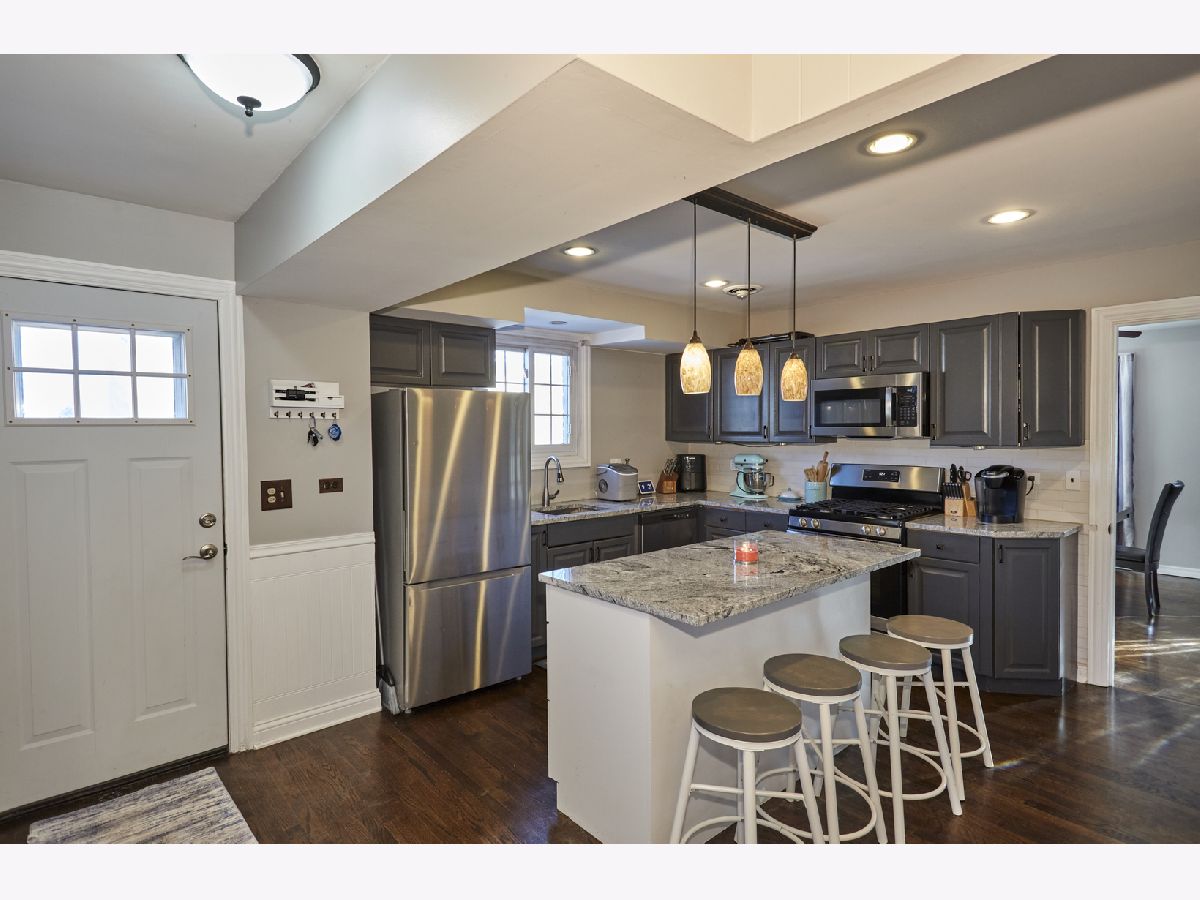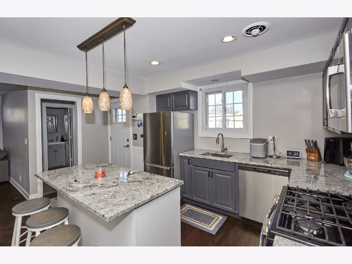 Looking for a 4-bedroom ranch in Elmhurst with a finished basement, Elmhurst schools, and modern updates under $500K? Yes-3N264 N Howard offers space, style, and walkability near elementary and middle schools. This beautifully updated ranch features an open layout with rich brown hardwood floors across the main level. The formal living and dining rooms lead into a fully renovated kitchen (2023) with granite countertops, ceramic tile backsplash, wood cabinetry, and a large island that seats four. The kitchen and adjacent family room feature brand new hardwood floors, while the mudroom and half bath have been updated with new ceramic tile. Recessed and pendant lighting add style, and the kitchen flows seamlessly into a spacious family room with a stone fireplace and sliding doors to the back patio. Three bedrooms on the main floor include hardwood flooring and nice closet space, along with an updated full bath. Downstairs, the finished basement adds valuable living space with a large rec room, bar seating, and mini kitchen with refrigerator, microwave, and sink. A fourth bedroom or private office includes two windows and a closet. There's also a second full bath and a spacious laundry room with folding table make it practical for everyday living. The oversized garage and shed for extra storage, and the long, wide driveway .All underground plumbing and the main cleanout were fully replaced in 2023. Located in Elmhurst School District and just blocks from elementary and middle schools, with parks, shopping, and expressways all nearby. This Elmhurst ranch is a rare find at $476,000.