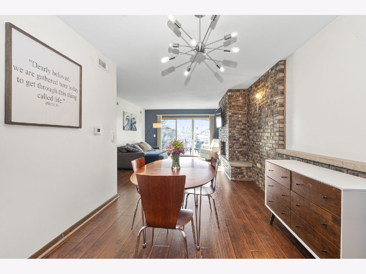 Adorable and well-maintained 2 bedroom, 1 bath condo in a desirable Elmhurst location. This second floor unit offers a functional layout with spacious living and dining areas filled with natural light, newer paint, and a beautiful brick wood-burning fireplace. The large kitchen features newer appliances, granite countertops, tile backsplash, and pocket doors. The two generously sized bedrooms provide ample closet space with large sliding doors in the primary. Additional highlights includes assigned parking space and a large south-facing balcony. Conveniently located near downtown Elmhurst, shopping, dining, parks, major highways, and highly rated District 205 schools.