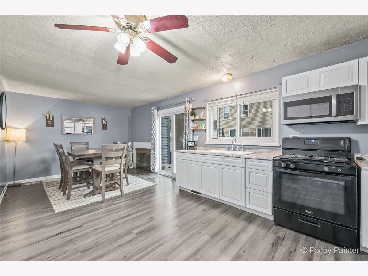 Step inside and discover a thoughtfully designed layout featuring a welcoming, tastefully decorated living room, a main-floor bedroom with a remodeled full bath (2023) - perfect for guests or single-level living. The recently remodeled kitchen (2023) shines with white shaker cabinets, built-in wine rack, stainless steel microwave and complimenting oven. Stainless refrigerator new in (2022). Gather around the cozy wood-burning fireplace that warms both the dining and living areas, ideal for entertaining or relaxing evenings in. Upstairs, enjoy brand-new luxury vinyl plank flooring (2025) in the bedrooms and fresh carpet in the loft, while the main floor offers durable luxury vinyl plank (2020) throughout; main floor bedroom is carpeted. The upper level loft is perfect for an at home office, study space or gaming set-up. Outside, the updates continue - new siding (2024), a fully fenced yard, and a cement driveway leading to your attached one-car garage for added convenience. With low taxes and association dues, this home offers both value and charm. Washer and dryer (2025 Samsung) are negotiable - making your move-in effortless! Property to be sold "As-Is."