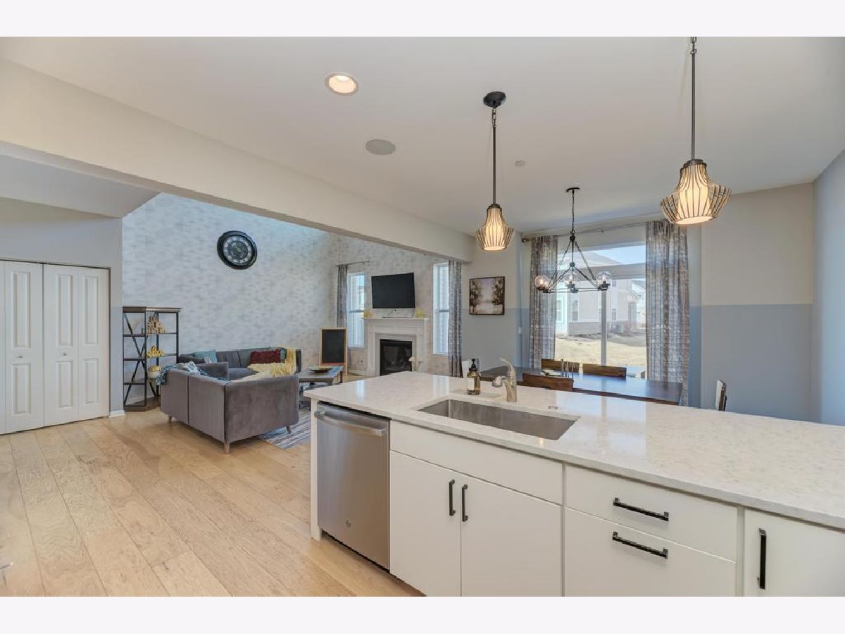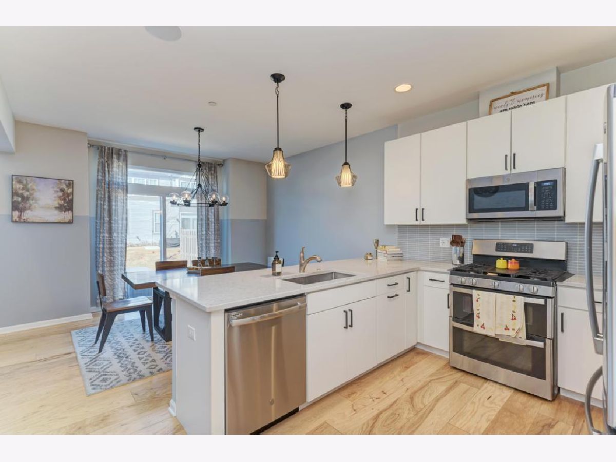 Better than new East facing.Builder's model(Sought after Berkley) with all bells and whistles! Upgraded hardwood flooring invite you in with beautiful oak railings that open into the grand main floor open plan boasting soaring 30 ft ceilings in living room with an inviting fireplace, that flow seamlessly into dining and upgraded kitchen with all SS appliances and beautiful details including backsplash, quartz counters, upgraded lighting package. A half bath on this floor with upgraded tile details. Access to private patio that opens into the wild space creating a quiet oasis. Move upstairs to an open loft office space that is lit up with natural light. Grand primary suite with vaulted ceilings where upgrades continue with faux beam details. Huge WIC and ensuite that spares no expense in making a true sanctuary bath. Upstairs laundry and hall bath with same upgraded finishes that create a spa. Second bedroom also has vaulted ceilings and a great closet. Finished lower level boasts upgraded floors, huge cabinet counter area that lends to storage and entertainment well. Another full bath gives this homes a more single family feel. Make this a gym, guest suite, additional family room! Two car garage and additional parking space on driveway make room for family to grow. All this with easy access to highway, Entertainment with top golf near by, Warrenville entertainment dist, Danada shopping a hop away. Close to Metra. Low HOA covers snow and yard. Community has walkways and wilderness. Blackwell forest preserveand Herric lake close by.