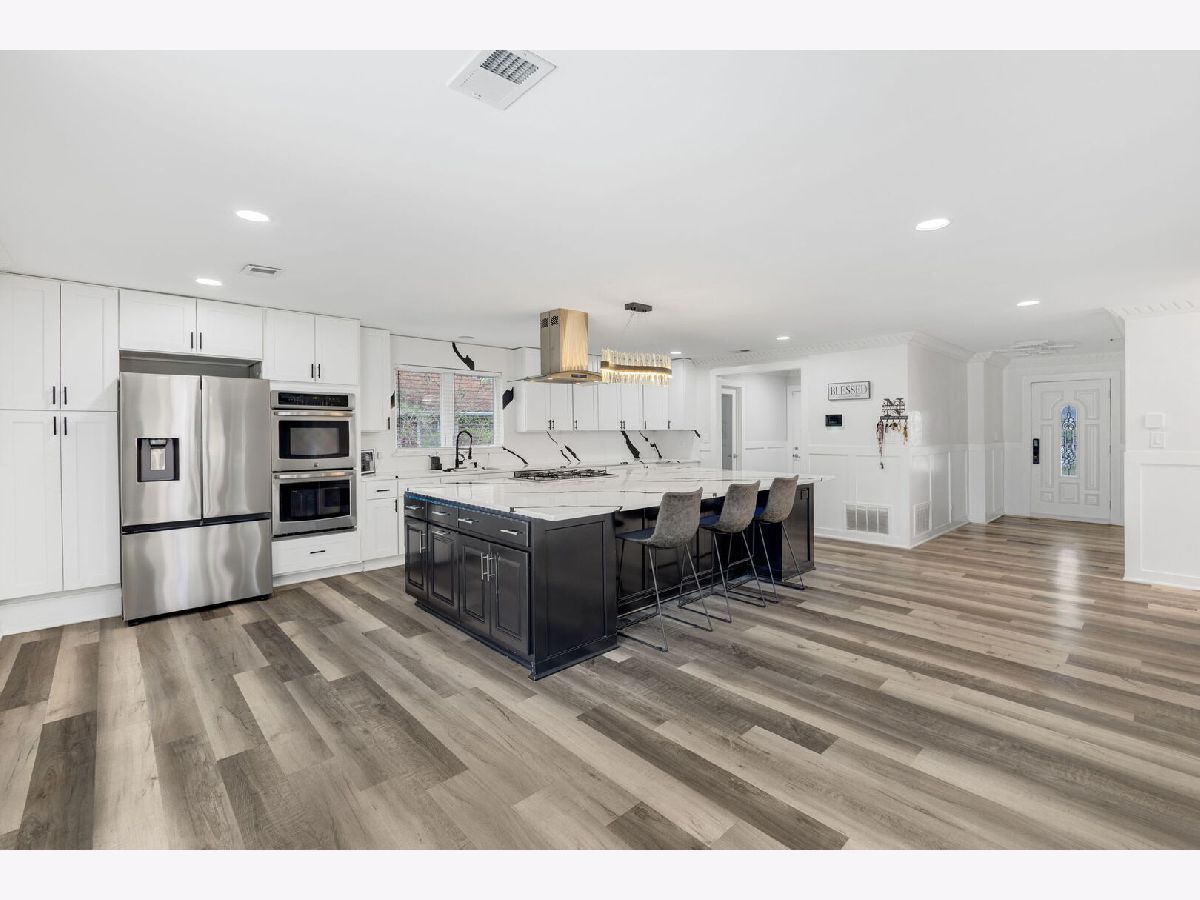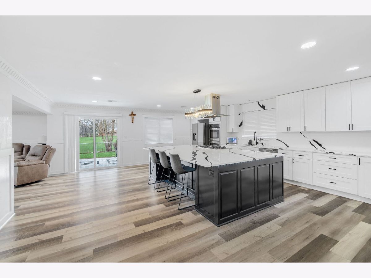 Step into this beautifully updated brick ranch, where timeless charm meets modern comfort. This move-in-ready home offers 3 generously sized bedrooms and a thoughtfully designed open-concept floor plan ideal for both everyday living and entertaining. From the moment you enter, you'll notice the attention to detail-featuring updated flooring, contemporary finishes, and energy-efficient LED lighting that enhance the home's bright and welcoming ambiance. The kitchen serves as a true centerpiece, showcasing a spacious quartz island, coordinating backsplash, custom cabinetry, and stainless steel appliances-perfectly suited for hosting or casual dining. Both full bathrooms have been tastefully renovated with stylish tilework and modern fixtures, creating a clean, sophisticated, spa-inspired feel. Additional features include a cozy fireplace, a dedicated laundry area, and an attached garage for added functionality. Major mechanical updates-including the roof, furnace, and central air conditioning-have already been completed, offering added peace of mind for the next homeowner. Conveniently situated near major highways, Metra access, schools, shopping, and dining, this home offers an ideal blend of location, comfort, and style. Schedule your private tour today and experience all this home has to offer.