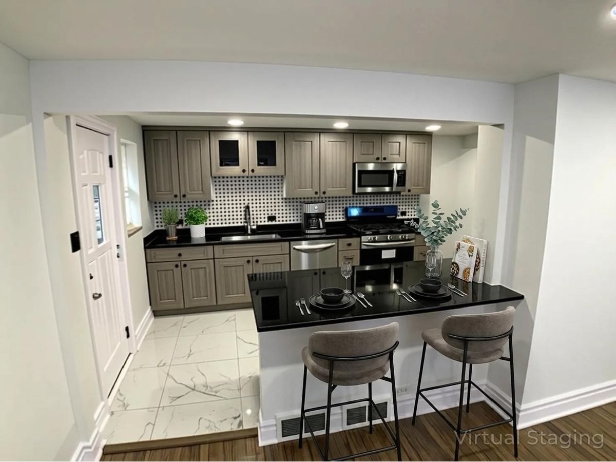Exquisitely renovated 3/4-bedroom, 3 full-bath tri-level residence blending sophisticated design with modern functionality. This turnkey home has been thoughtfully upgraded with a , New furnace, New AC, new roof, new gutters and downspouts, refreshed exterior and interior finishes, exterior solar security lighting, and a newly constructed 2-car garage. The main level welcomes you with a sun-filled open-concept living and dining space, highlighted by beautifully refinished hardwood floors and seamless flow for elevated everyday living and entertaining. At the heart of the home is a gourmet kitchen featuring custom gray shaker cabinetry, sleek quartz countertops, an oversized island, and a full suite of stainless steel appliances. A deep farmhouse sink and refined finishes complete this chef-inspired space. The upper level offers three spacious bedrooms, including a well-appointed primary suite with a spa-quality bath featuring a walk-in shower, soaking tub, and generous closet space. The fully finished lower level delivers exceptional versatility with porcelain flooring, an exposed brick fireplace, a large flexible living areas ideal for a for private office, fitness studio, or entertainment lounge. full bath, and Additional features include a dedicated laundry and utility area, abundant storage, and a thoughtfully designed multi-level layout that balances privacy and openness. Step outside to a beautifully enclosed backyard, perfect for outdoor living and entertaining. Ideally located near Beverly's acclaimed dining, parks, schools, and convenient access to the Metra and major transportation routes, this home offers the perfect blend of luxury, comfort, and accessibility. A great opportunity to own a fully move-in ready home with high-end finishes throughout. Schedule your private showing today. TAX Prorations 100 PERCENT- Alarm System not included.