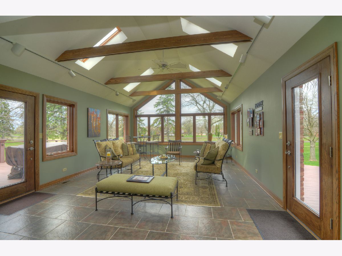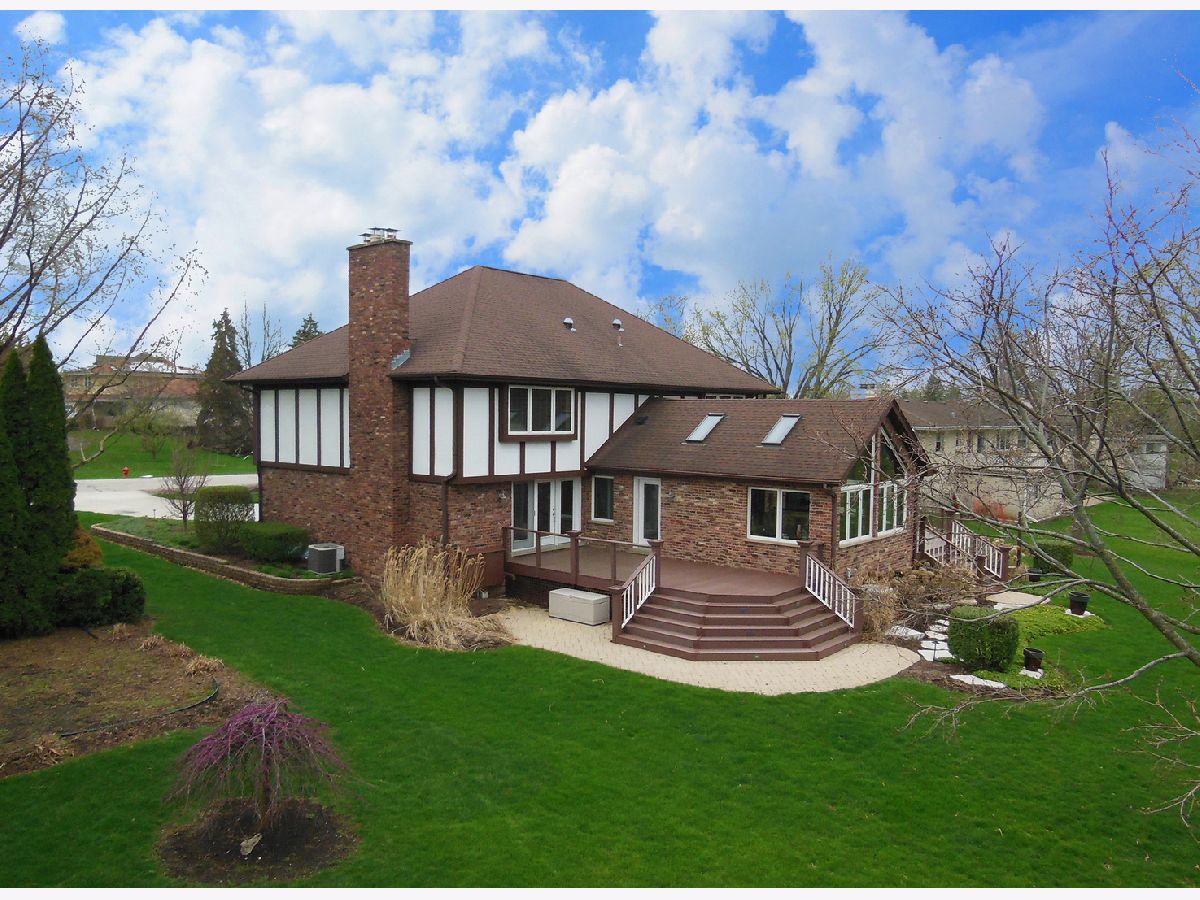 Stunning Tudor home offering panoramic views of open green area, perfectly enjoyed from the bright four-season sunroom and expansive Trex deck. This immaculate home welcomes you with a grand two-story foyer and elegant French glass doors leading into the living room, which seamlessly opens to a spacious family room featuring a classic brick fireplace. The updated kitchen is a chef's dream with a large island and seating, stainless steel appliances, and abundant cabinetry. A separate dining room, private office, and convenient first-floor laundry room complete the main level. Upstairs, the expansive primary suite is a true retreat with a cozy sitting room, private balcony, and a luxurious ensuite bath boasting double sinks, a clawfoot soaking tub, separate shower, and heated floors. Two additional generously sized bedrooms and a full bath complete the second level. The finished basement is ideal for entertaining with a wet bar, rec room, billard/game room, 4th bedroom and ample storage space. This exceptional home combines timeless character with modern updates and incredible views. Truly a must-see!