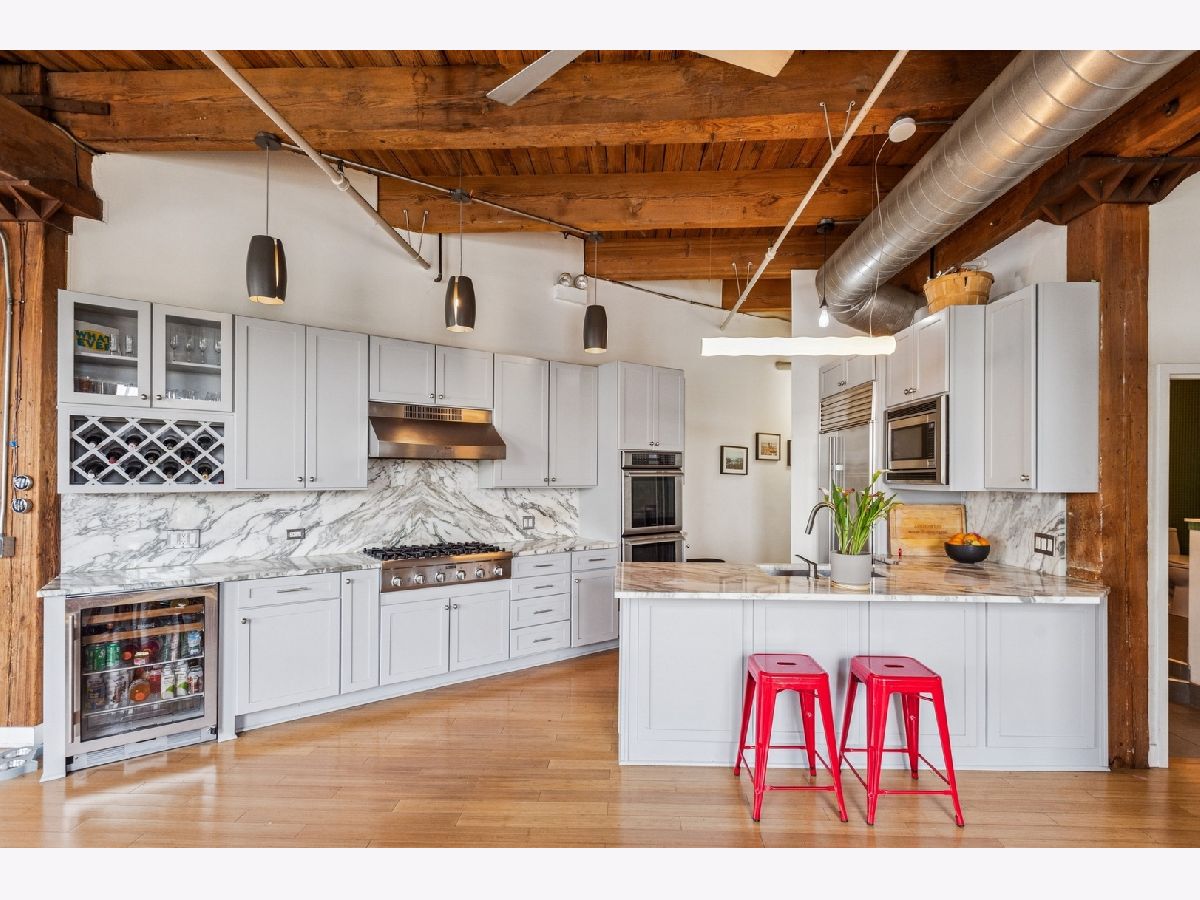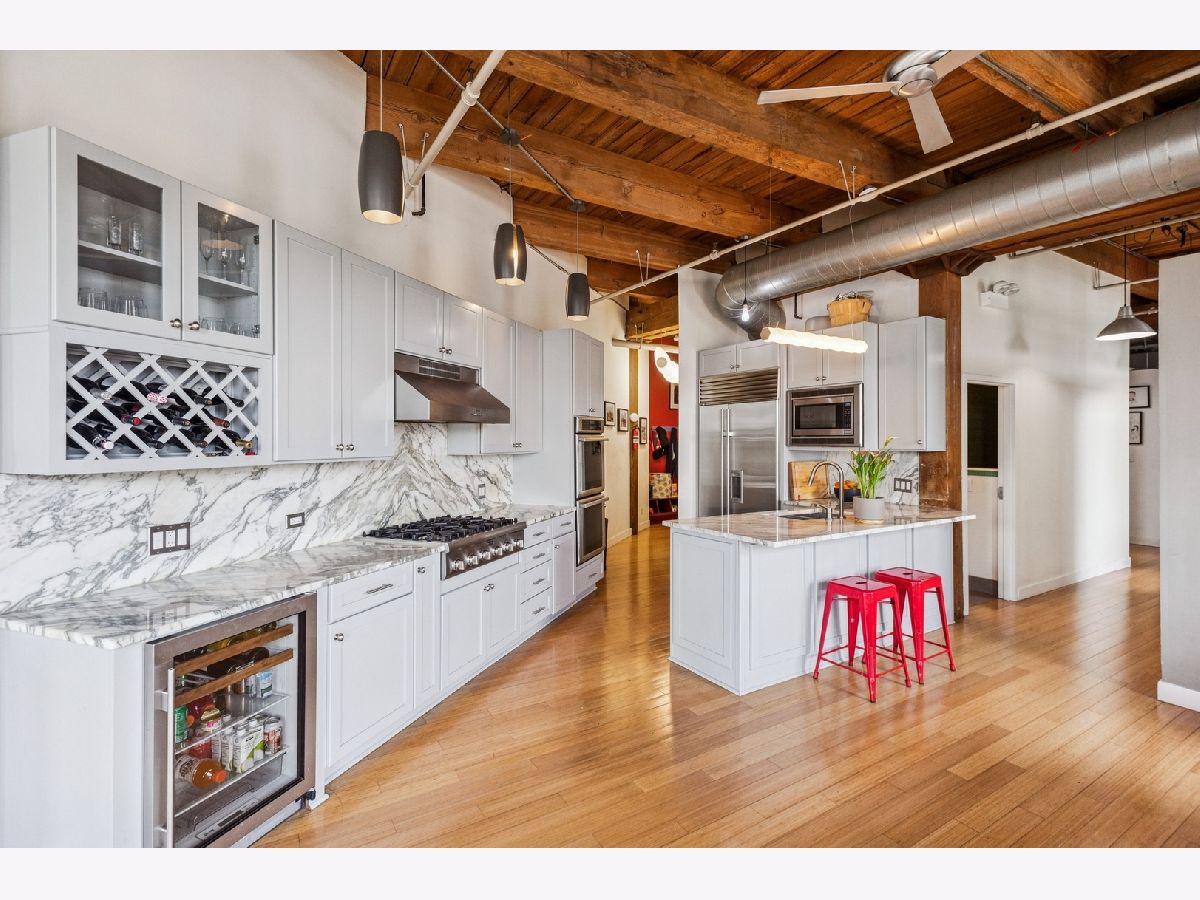 Fabulous opportunity in Skinner School District! 4BR + Office West Loop Loft | Move-In Ready | Scavolini Baths | Chef's Kitchen. Discover an exceptionally rare and spacious 4-bedroom + office, 3.1-bath loft in the heart of the West Loop, offering 2,781 sq. ft. of beautifully finished, move-in ready space. Tailor-made for today's live/work lifestyle, blending character and comfort with soaring timber ceilings, exposed brick, bamboo flooring, and an entire wall of oversized windows flooding the home with natural light. The open-concept chef's kitchen features top-tier Thermador and Sub-Zero appliances, a wine fridge, and generous storage-perfect for everyday living and entertaining. Custom Scavolini bathrooms showcase sleek, modern design. Recent upgrades include a new zoned HVAC systems and dual water heaters for enhanced efficiency. Located just steps from the UIC Blue Line, this home offers unmatched convenience with direct access to the Loop and O'Hare. Enjoy walking distance to Greektown, Mary Bartelme Park, UIC, acclaimed restaurants, shops, and more. Two indoor deeded parking spaces available for purchase. An extraordinary opportunity to own one of the West Loop's largest and most versatile condos.