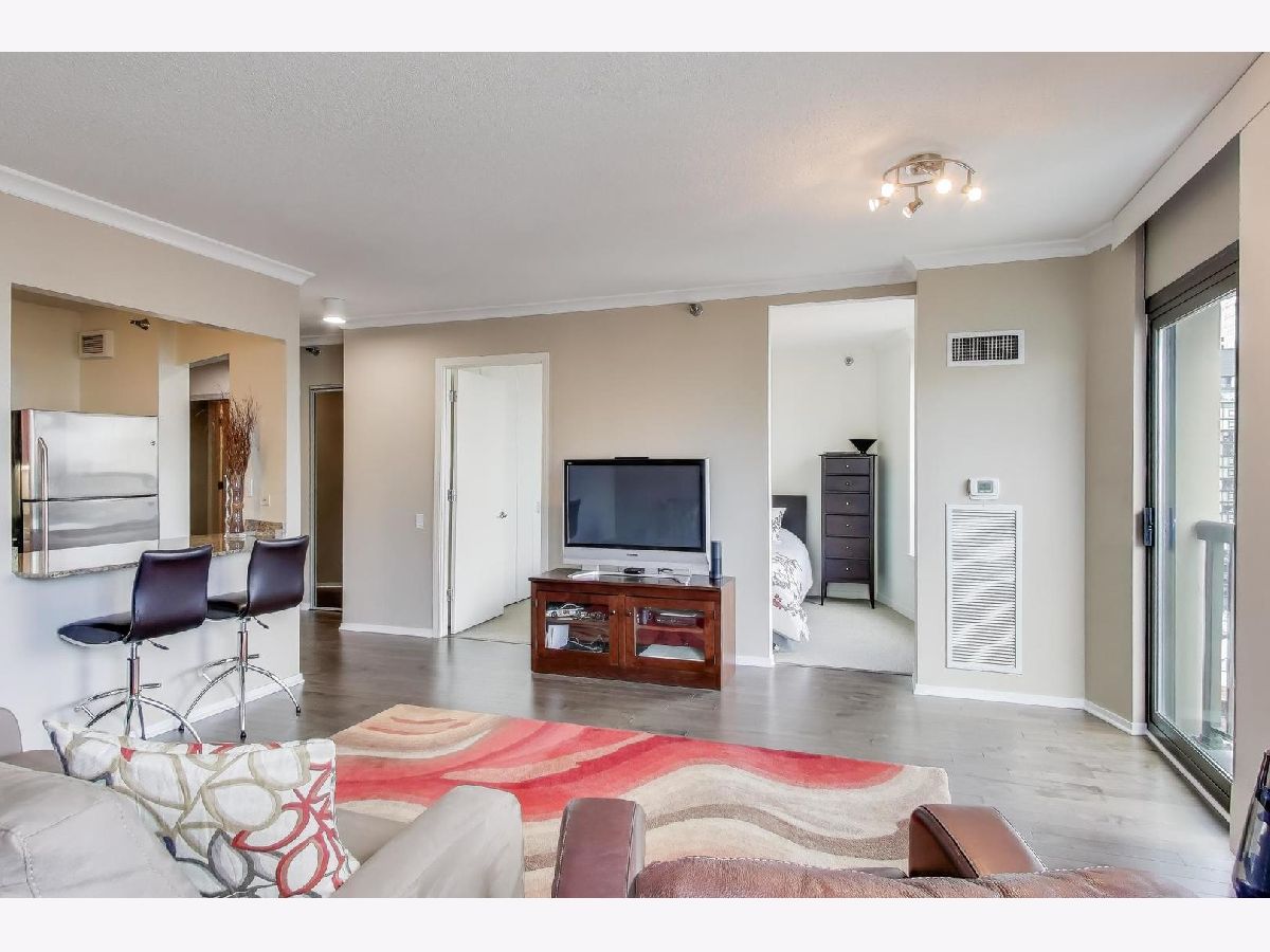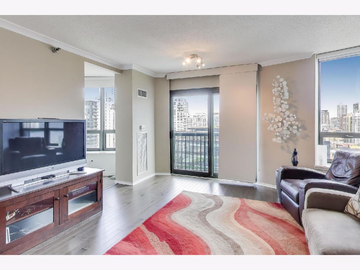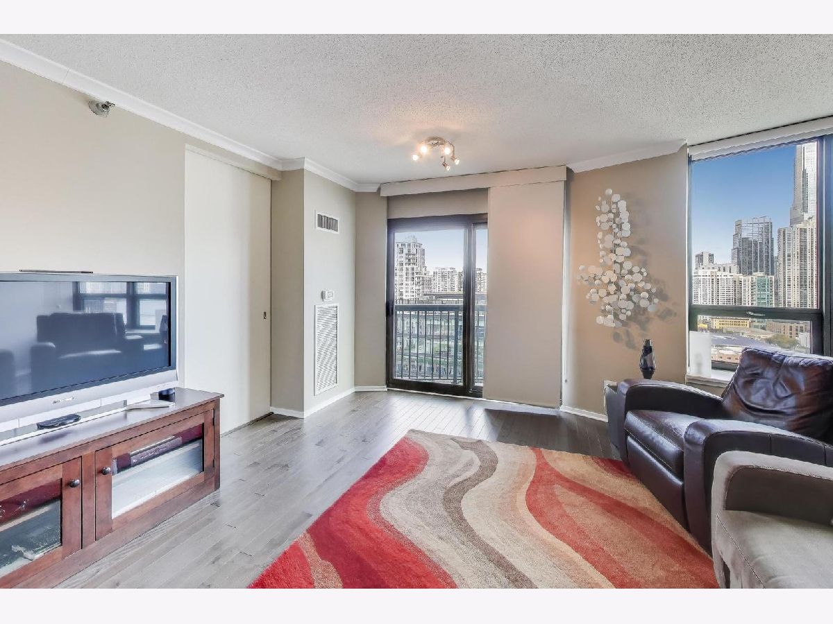 This sun-filled 1-bedroom, 1-bath condo in the heart of River North offers both comfort and style with a thoughtful blend of modern updates and urban amenities. Facing north with city views, the home features newer engineered hardwood flooring throughout (2017), a renovated bath (2017), and updated window treatments. The kitchen opens to a bright living area with North facing windows and sliding glass door for enjoying fresh air and skyline views. In-unit laundry and a newer washer/dryer (2017) add convenience. 400 N LaSalle is a full-amenity building offering a seasonal outdoor pool and hot tub, expansive sundeck with grilling and picnic areas, exercise room, party/lounge room, 24-hour door staff, on-site management, receiving room, pet relief area, and on-site dry cleaning. Rental parking options are available. Ideally located just steps from the best of River North's dining, nightlife, and transit, this condo delivers an effortless downtown lifestyle. This condo has been used as an in-town for the past 20 years so you'll struggle to find any wear-and-tear!