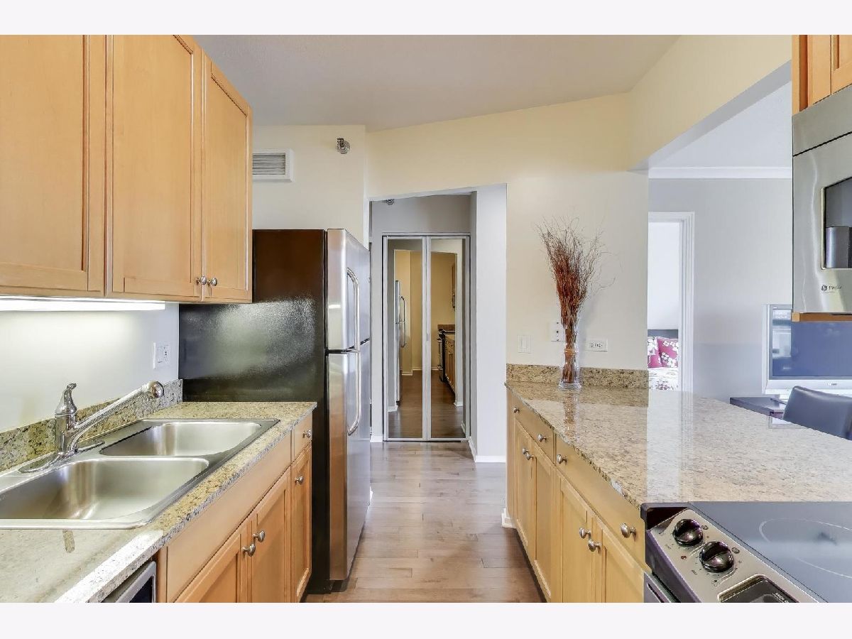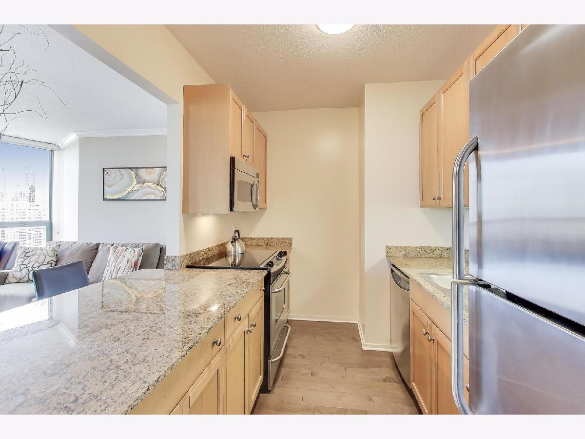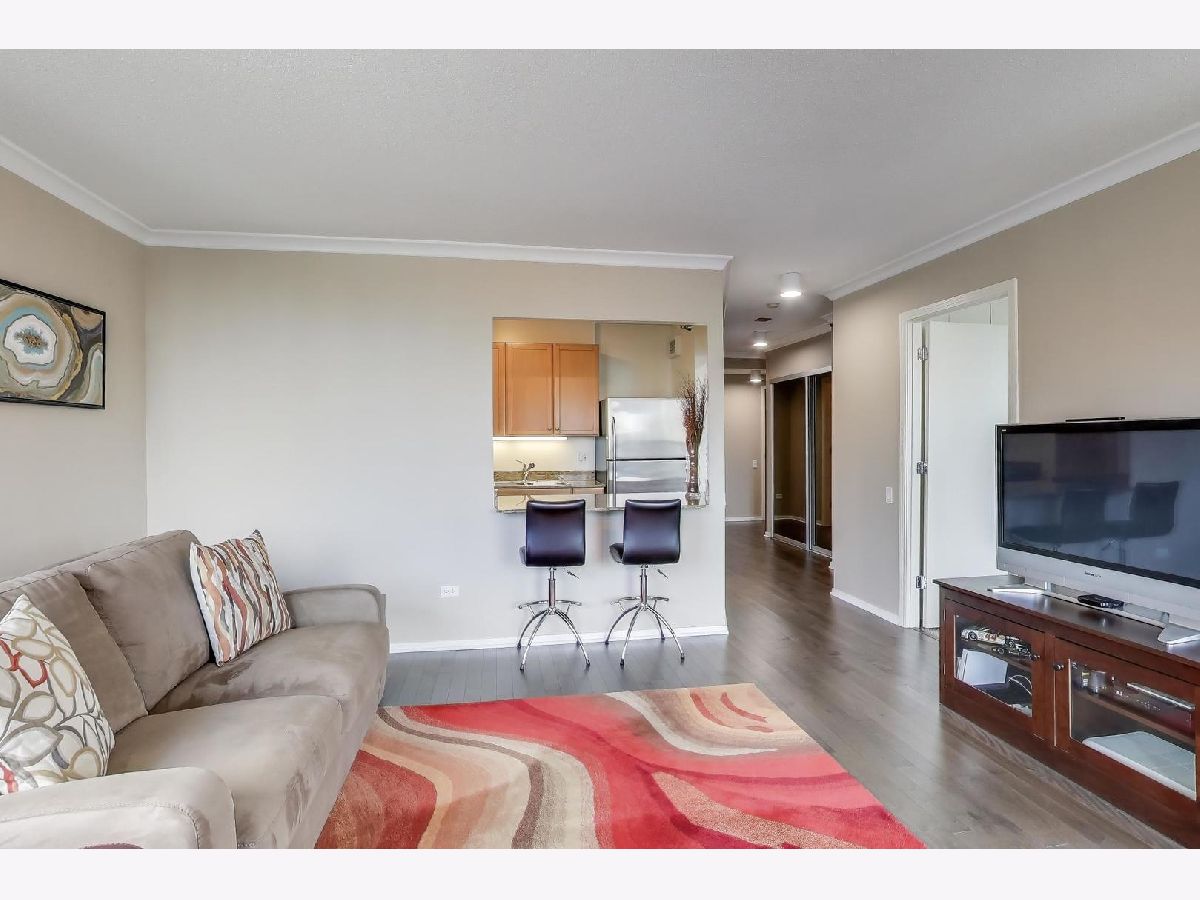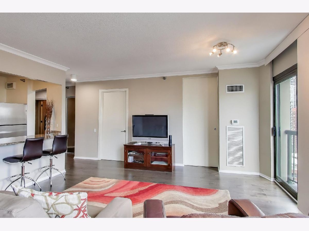 This sun-filled 1-bedroom, 1-bath condo in the heart of River North offers both comfort and style with a thoughtful blend of modern updates and urban amenities. Facing north with city views, the home features newer engineered hardwood flooring throughout (2017), a renovated bath (2017), and updated window treatments. The kitchen opens to a bright living area with North facing windows and sliding glass door for enjoying fresh air and skyline views. In-unit laundry and a newer washer/dryer (2017) add convenience. 400 N LaSalle is a full-amenity building offering a seasonal outdoor pool and hot tub, expansive sundeck with grilling and picnic areas, exercise room, party/lounge room, 24-hour door staff, on-site management, receiving room, pet relief area, and on-site dry cleaning. Rental parking options are available. Ideally located just steps from the best of River North's dining, nightlife, and transit, this condo delivers an effortless downtown lifestyle. This condo has been used as an in-town for the past 20 years so you'll struggle to find any wear-and-tear!