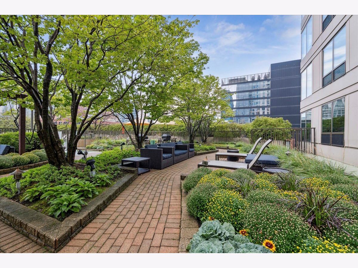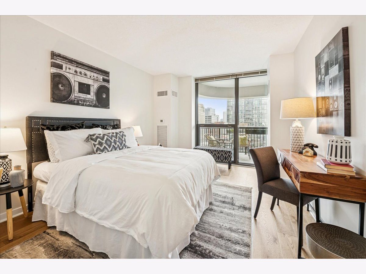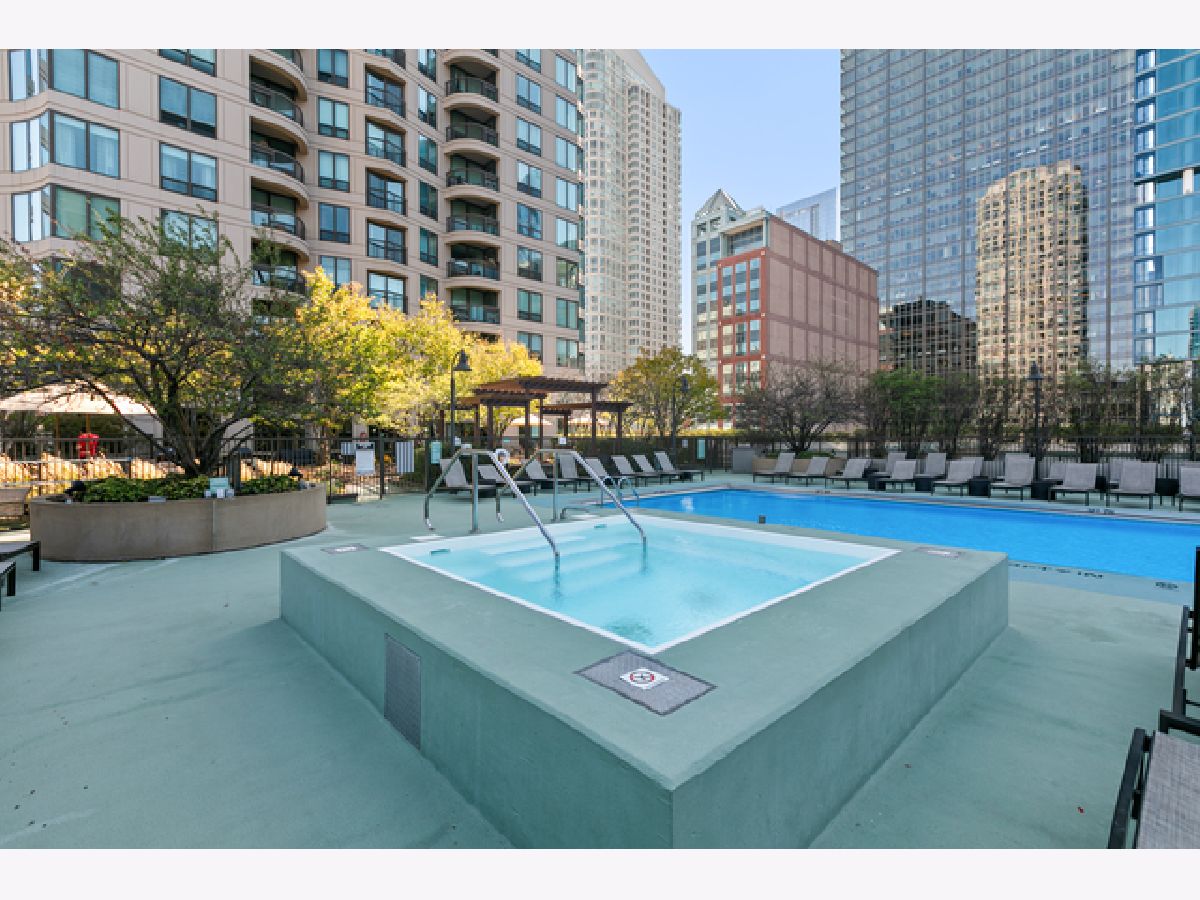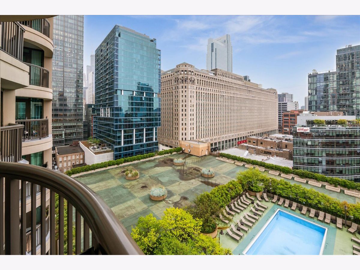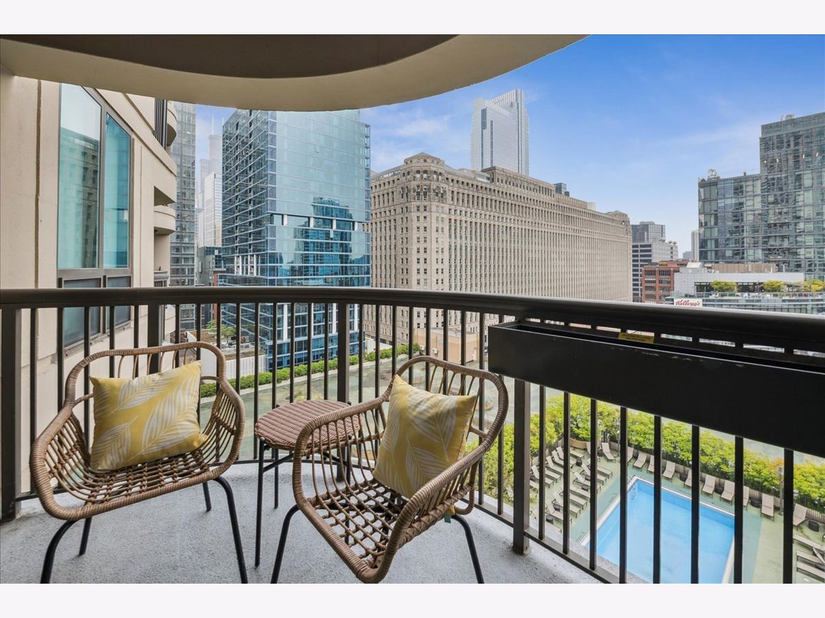 This beautifully remodeled 1-bedroom, 1-bathroom corner condo offers the perfect blend of style, comfort, and convenience in one of Chicago's most desirable neighborhoods: River North. Step into the formal foyer with a tucked-away walk-in closet. Continue down the hallway to the show-stopping, fully renovated kitchen (2024) with new cabinetry, white quartz countertops, a sleek tile backsplash, under-cabinet lighting, deep undermount sink, and high-end appliances including a Bosch induction range/oven, Bosch dishwasher, Samsung refrigerator, and GE microwave. The kitchen island seats 2-3 and opens seamlessly to a spacious dining area that accommodates 6-8 guests, with direct access to your private balcony overlooking the pool deck. The expansive corner living room is framed by oversized windows offering breathtaking city views and dramatic sunsets. The generous primary bedroom easily accommodates a king-size bed and includes a large walk-in closet. The fully renovated bathroom showcases a walk-in shower with Kohler fixtures, a modern Kohler vanity, and a built-in medicine cabinet with front lighting. The laundry features an LG washer/dryer (less than 3 years old). Additional updates include new hardwood floors, fresh paint, modern light fixtures, and new baseboards throughout-truly move-in ready. Building Amenities: Newly renovated 8th-floor fitness center (2023), Resort-style pool deck with pergolas, fire pit, lush landscaping, and four new commercial-grade Weber grills (2025), expansive social/party room with TV, foosball, and ping pong, 24-hour door staff, on-site maintenance, and receiving/dry-cleaning services, secure bike storage, private storage lockers, and dedicated pet relief area, and an active social club hosting regular resident events. Parking is available for lease in the attached garage (approx. $300/month). Perfectly situated just steps from the Riverwalk, East Bank Club, top-rated restaurants, and the Brown & Purple Lines at Merchandise Mart, this home places the very best of Chicago at your doorstep.