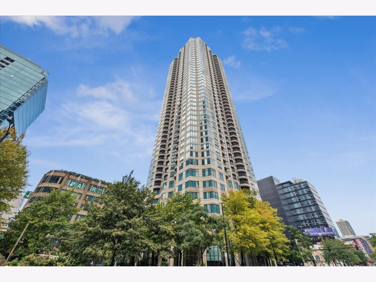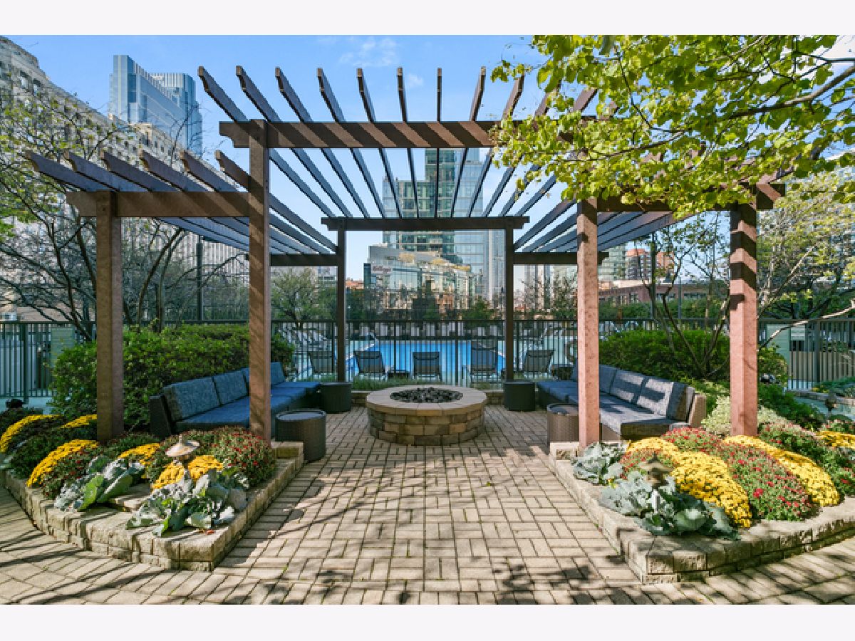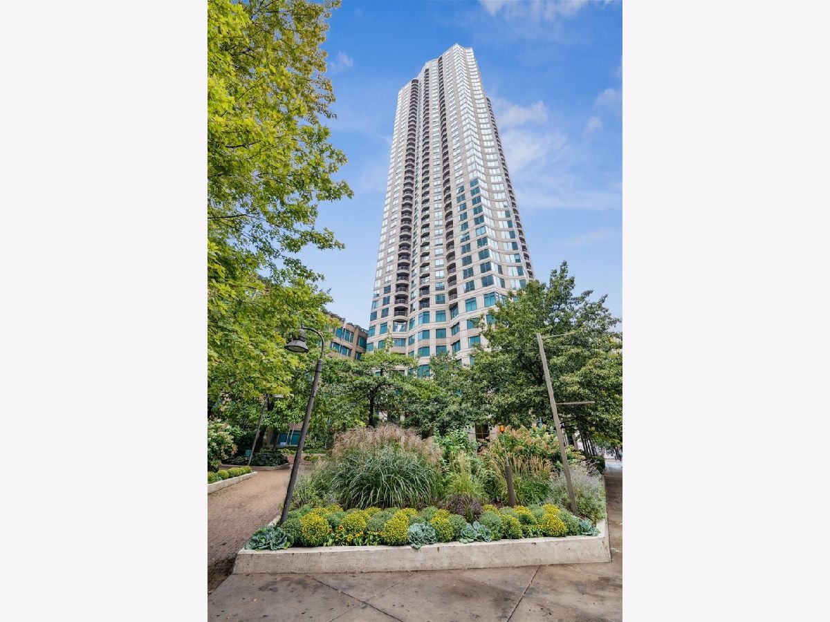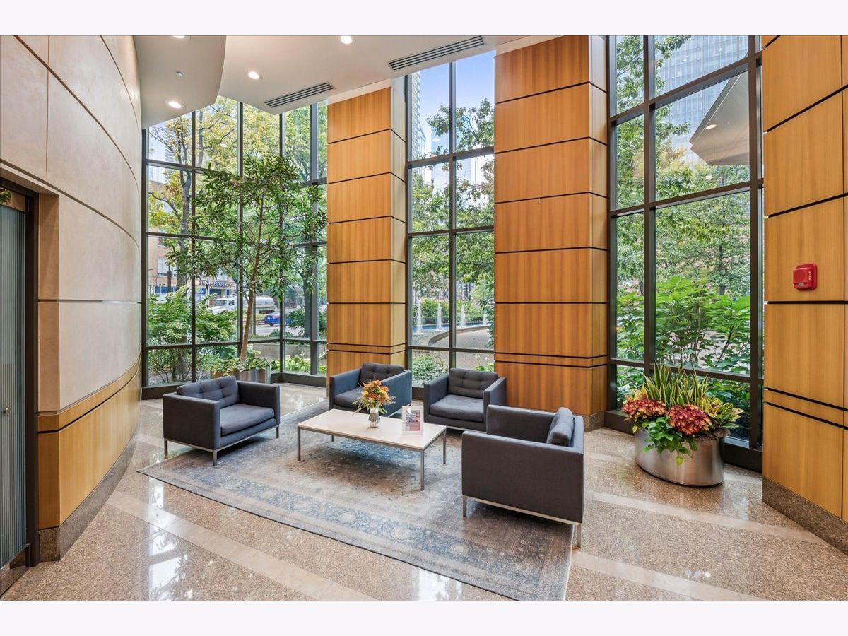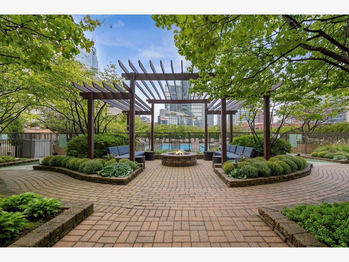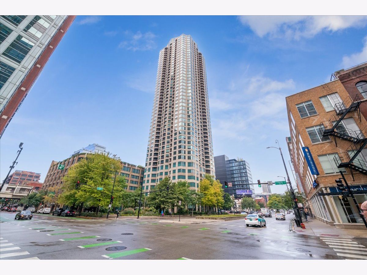 This beautifully remodeled 1-bedroom, 1-bathroom corner condo offers the perfect blend of style, comfort, and convenience in one of Chicago's most desirable neighborhoods: River North. Step into the formal foyer with a tucked-away walk-in closet. Continue down the hallway to the show-stopping, fully renovated kitchen (2024) with new cabinetry, white quartz countertops, a sleek tile backsplash, under-cabinet lighting, deep undermount sink, and high-end appliances including a Bosch induction range/oven, Bosch dishwasher, Samsung refrigerator, and GE microwave. The kitchen island seats 2-3 and opens seamlessly to a spacious dining area that accommodates 6-8 guests, with direct access to your private balcony overlooking the pool deck. The expansive corner living room is framed by oversized windows offering breathtaking city views and dramatic sunsets. The generous primary bedroom easily accommodates a king-size bed and includes a large walk-in closet. The fully renovated bathroom showcases a walk-in shower with Kohler fixtures, a modern Kohler vanity, and a built-in medicine cabinet with front lighting. The laundry features an LG washer/dryer (less than 3 years old). Additional updates include new hardwood floors, fresh paint, modern light fixtures, and new baseboards throughout-truly move-in ready. Building Amenities: Newly renovated 8th-floor fitness center (2023), Resort-style pool deck with pergolas, fire pit, lush landscaping, and four new commercial-grade Weber grills (2025), expansive social/party room with TV, foosball, and ping pong, 24-hour door staff, on-site maintenance, and receiving/dry-cleaning services, secure bike storage, private storage lockers, and dedicated pet relief area, and an active social club hosting regular resident events. Parking is available for lease in the attached garage (approx. $300/month). Perfectly situated just steps from the Riverwalk, East Bank Club, top-rated restaurants, and the Brown & Purple Lines at Merchandise Mart, this home places the very best of Chicago at your doorstep.