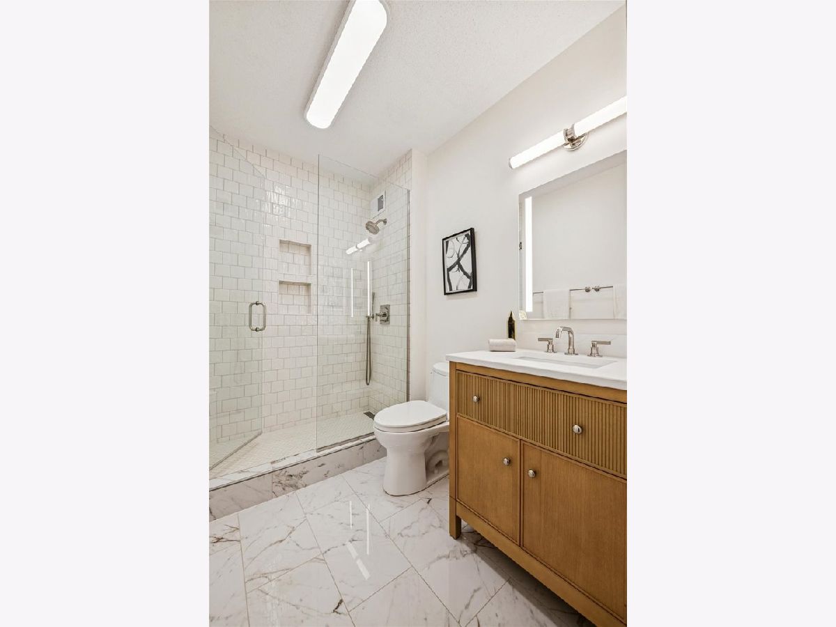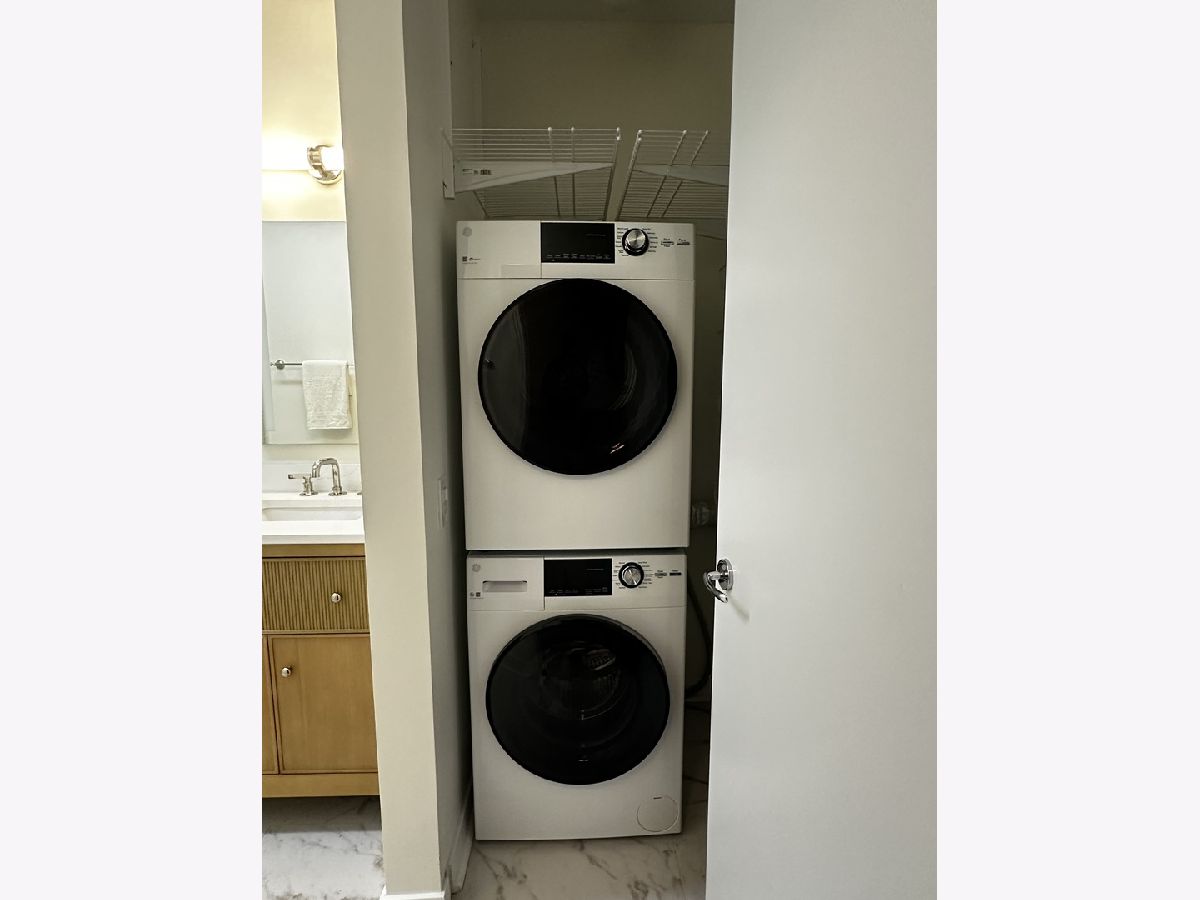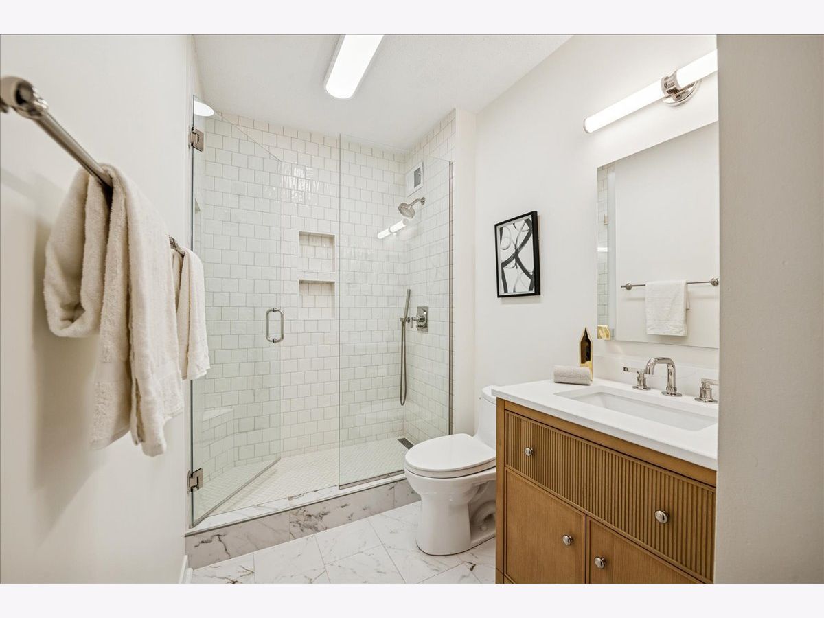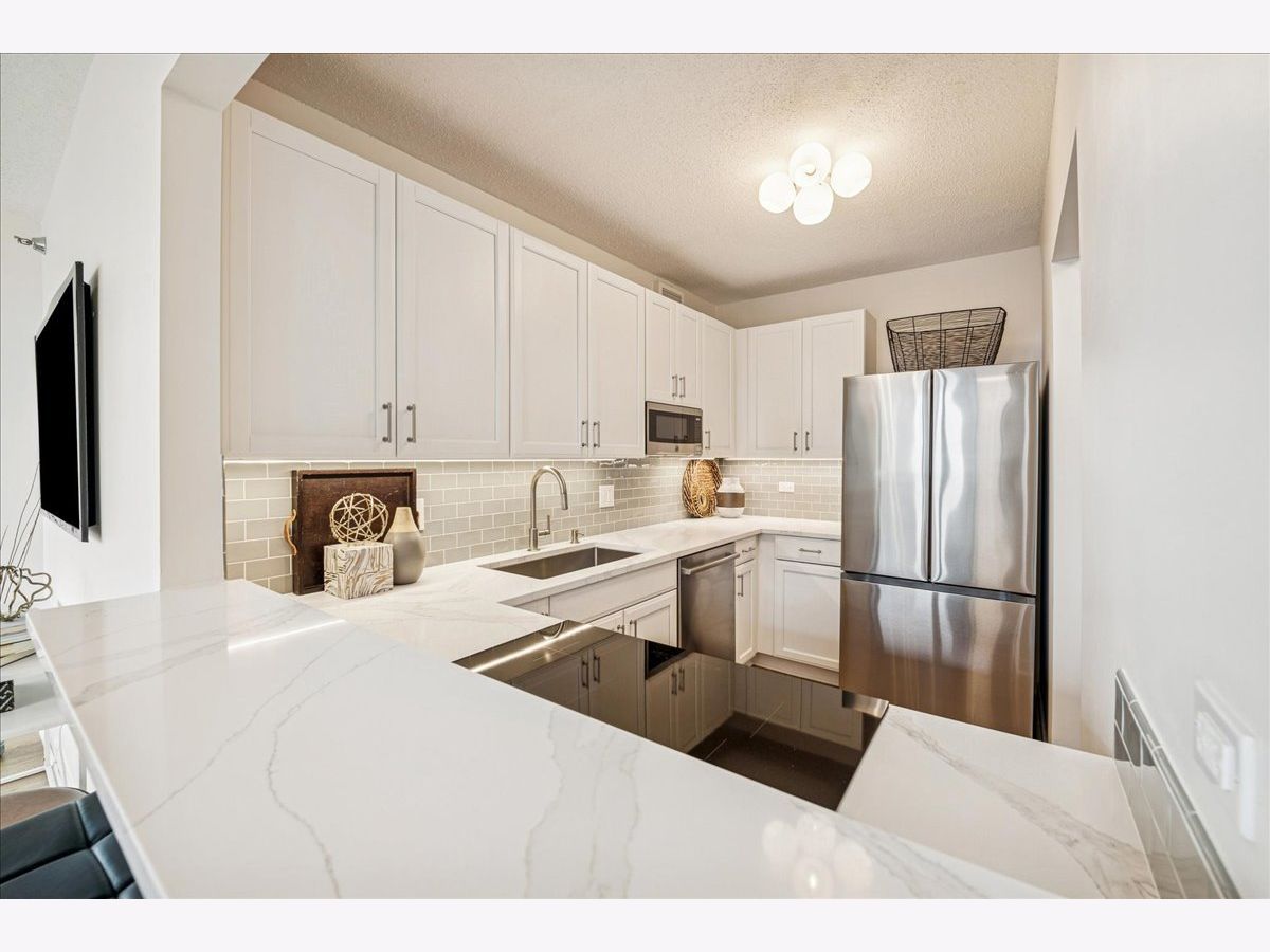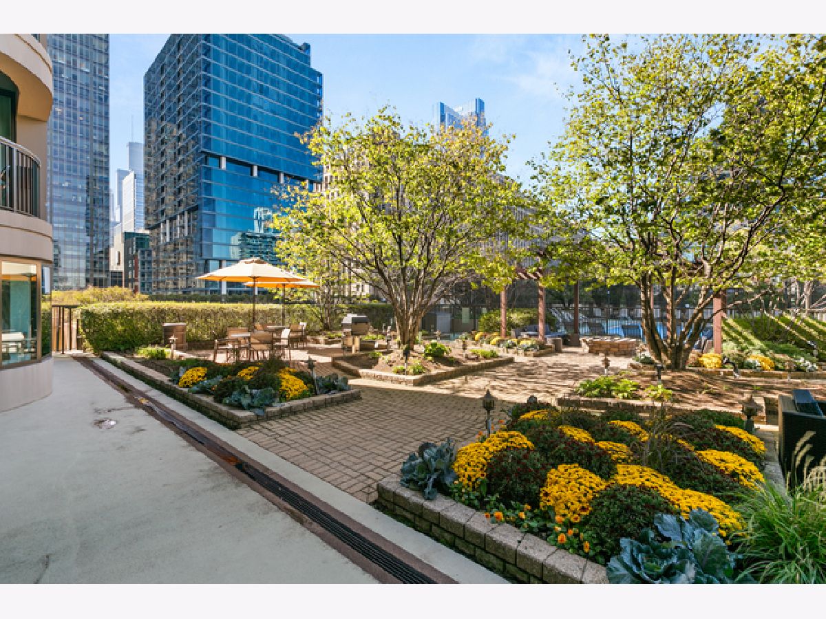 This beautifully remodeled 1-bedroom, 1-bathroom corner condo offers the perfect blend of style, comfort, and convenience in one of Chicago's most desirable neighborhoods: River North. Step into the formal foyer with a tucked-away walk-in closet. Continue down the hallway to the show-stopping, fully renovated kitchen (2024) with new cabinetry, white quartz countertops, a sleek tile backsplash, under-cabinet lighting, deep undermount sink, and high-end appliances including a Bosch induction range/oven, Bosch dishwasher, Samsung refrigerator, and GE microwave. The kitchen island seats 2-3 and opens seamlessly to a spacious dining area that accommodates 6-8 guests, with direct access to your private balcony overlooking the pool deck. The expansive corner living room is framed by oversized windows offering breathtaking city views and dramatic sunsets. The generous primary bedroom easily accommodates a king-size bed and includes a large walk-in closet. The fully renovated bathroom showcases a walk-in shower with Kohler fixtures, a modern Kohler vanity, and a built-in medicine cabinet with front lighting. The laundry features an LG washer/dryer (less than 3 years old). Additional updates include new hardwood floors, fresh paint, modern light fixtures, and new baseboards throughout-truly move-in ready. Building Amenities: Newly renovated 8th-floor fitness center (2023), Resort-style pool deck with pergolas, fire pit, lush landscaping, and four new commercial-grade Weber grills (2025), expansive social/party room with TV, foosball, and ping pong, 24-hour door staff, on-site maintenance, and receiving/dry-cleaning services, secure bike storage, private storage lockers, and dedicated pet relief area, and an active social club hosting regular resident events. Parking is available for lease in the attached garage (approx. $300/month). Perfectly situated just steps from the Riverwalk, East Bank Club, top-rated restaurants, and the Brown & Purple Lines at Merchandise Mart, this home places the very best of Chicago at your doorstep.