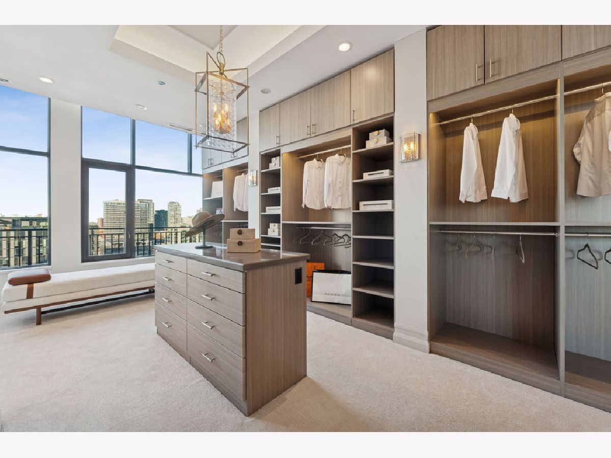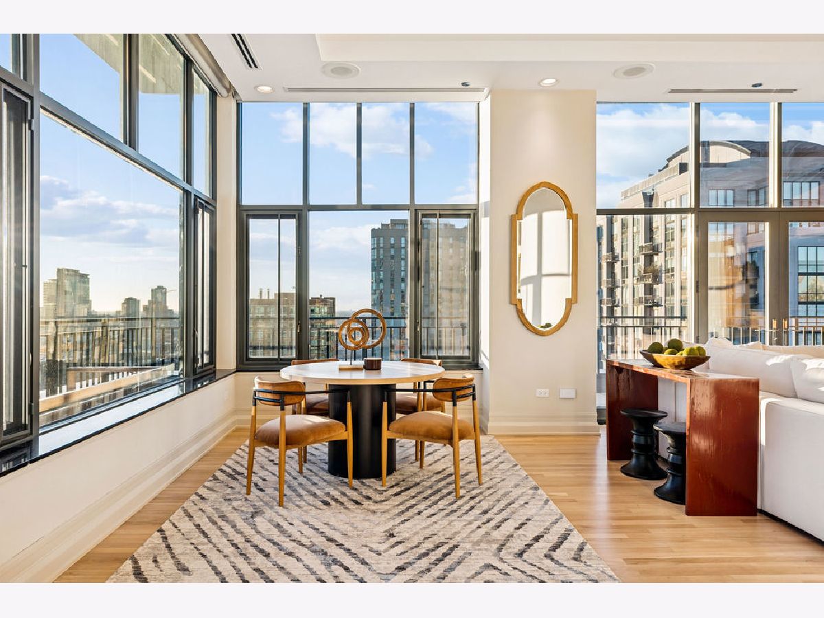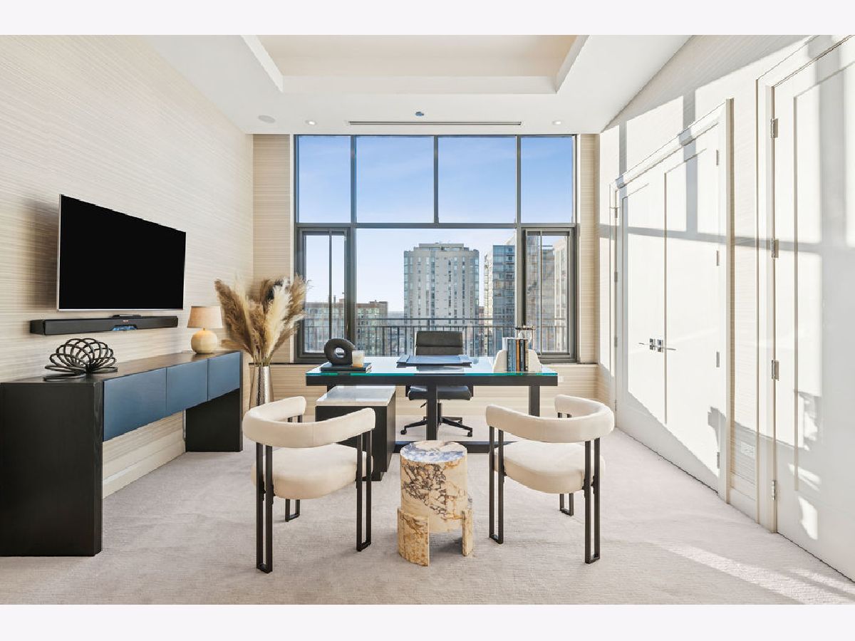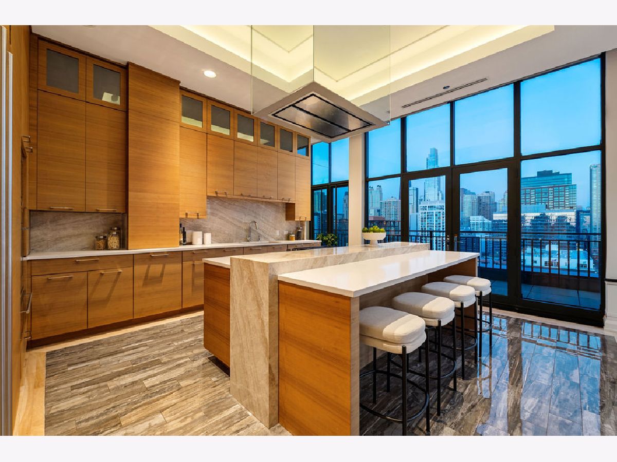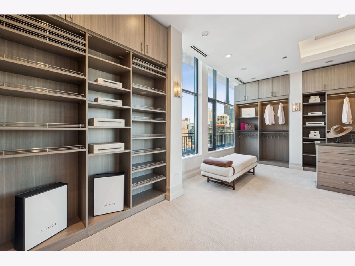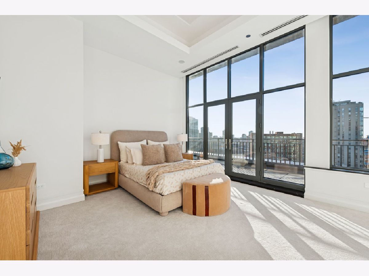 Fully furnished, turn-key full-floor penthouse in the heart of River North. Occupying the entire 18th floor of Gallery 400, this 6,800 SF, 4BD/4BA+1HB residence offers private elevator entry, sweeping open living spaces, and 2,400 SF of wraparound terrace with 360 skyline views. A gallery-style reception hall with herringbone hardwood floors leads to an expansive great room with coffered ceilings, design-forward lighting, and a living area anchored by a low-profile gas fireplace. The chef's kitchen features an oversized island with dine-up seating, seamless backsplash, custom cabinetry, and top-tier appliances. A chic wet bar with counter seating, glass display shelves, and wine fridge enhances the home's exceptional entertaining flow. World-class fixtures and finishes are showcased throughout. The light-filled primary suite includes framed designer wallcoverings, a drop chandelier, two custom walk-in closets (one with styling/accessories island, one with an owner's suite wet bar), and a five-star-caliber bath with dual vanities, soaking tub, walk-in shower, and steam closet. A sizable in-unit laundry room adds convenience. Nearly every room opens directly to the private terrace for rare single-level indoor/outdoor living. Building amenities include 24-hour door staff, fitness center, on-site management, bike storage, pet-friendly living, and two heated garage spaces. Steps to River North dining, galleries, shopping, East Bank Club, BIAN, parks, transit, and the riverfront.
